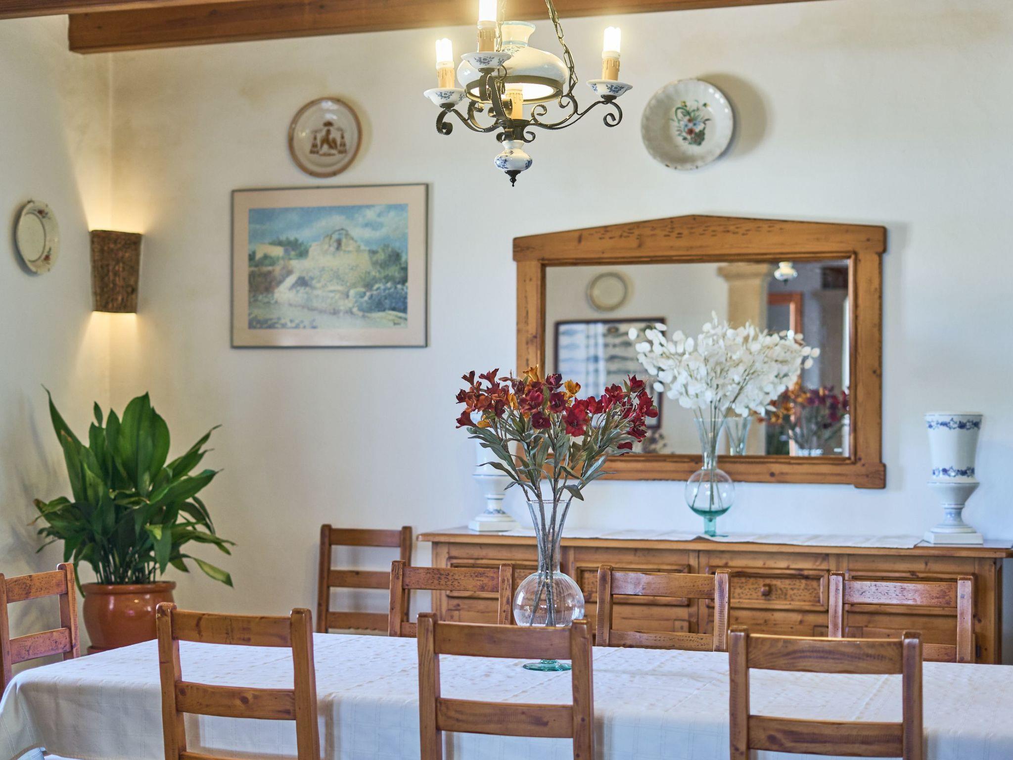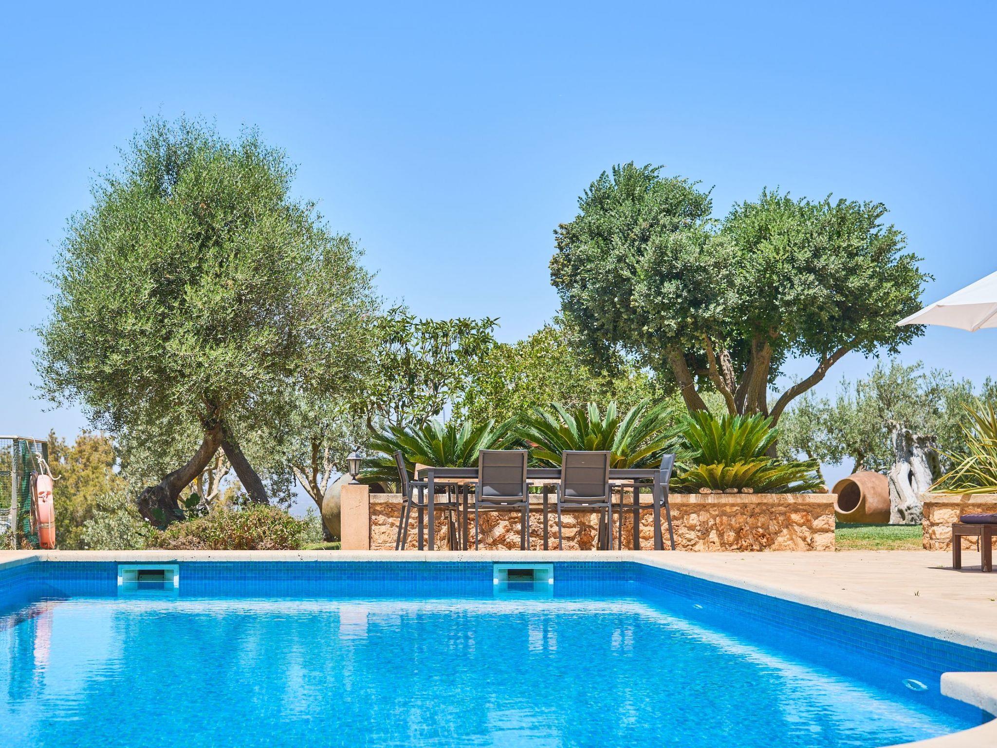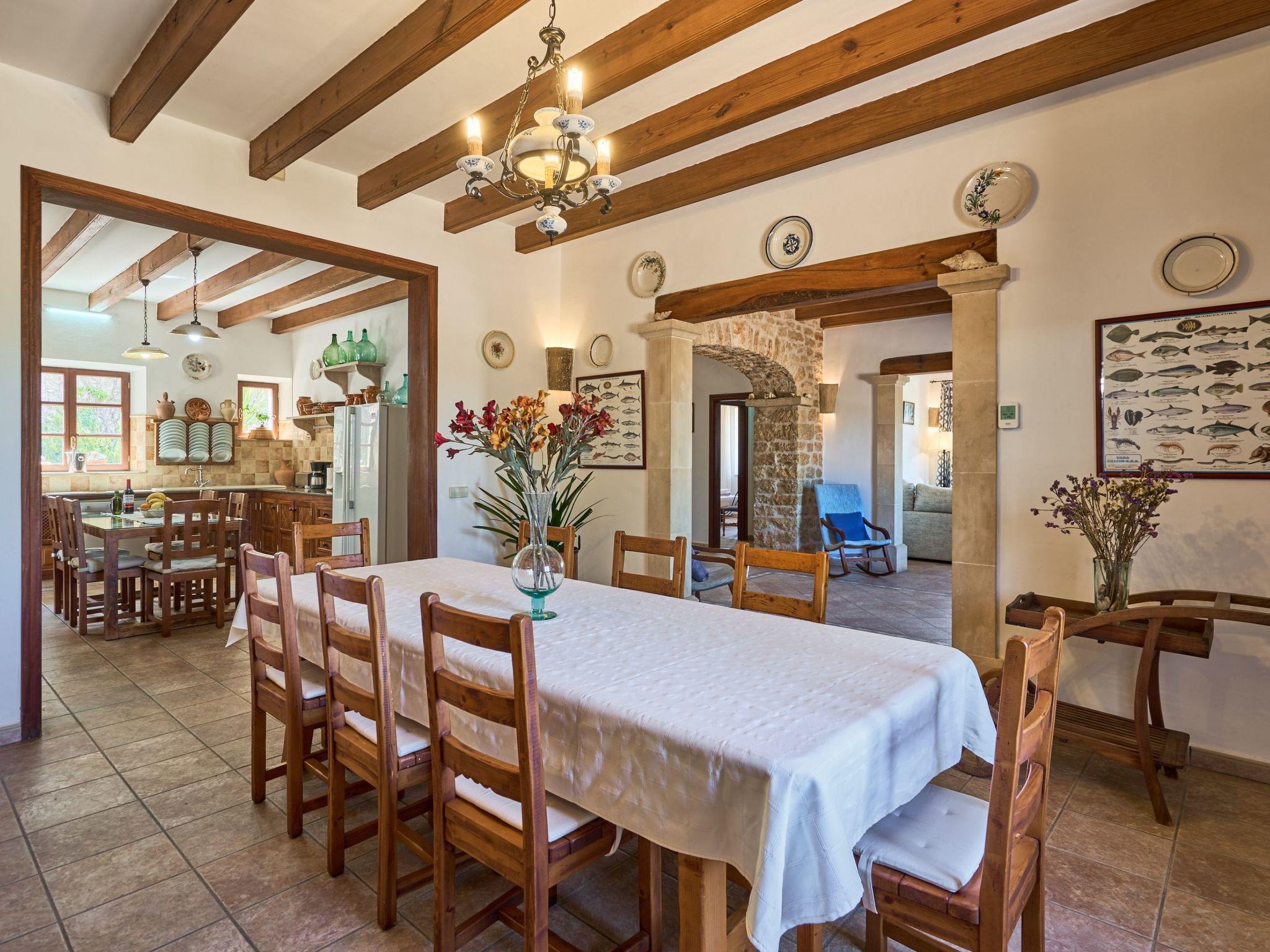 Spacious Mallorcan rustic-style house for rent for 8 people, in a beautiful, quiet location with spectacular panoramic views. Enjoy a well-kept outdoor area with views. A privileged location at the foot of a hill, just 5 km from Felanitx and 13.8 km from the beaches of Porto Colom and Cala Dor.
