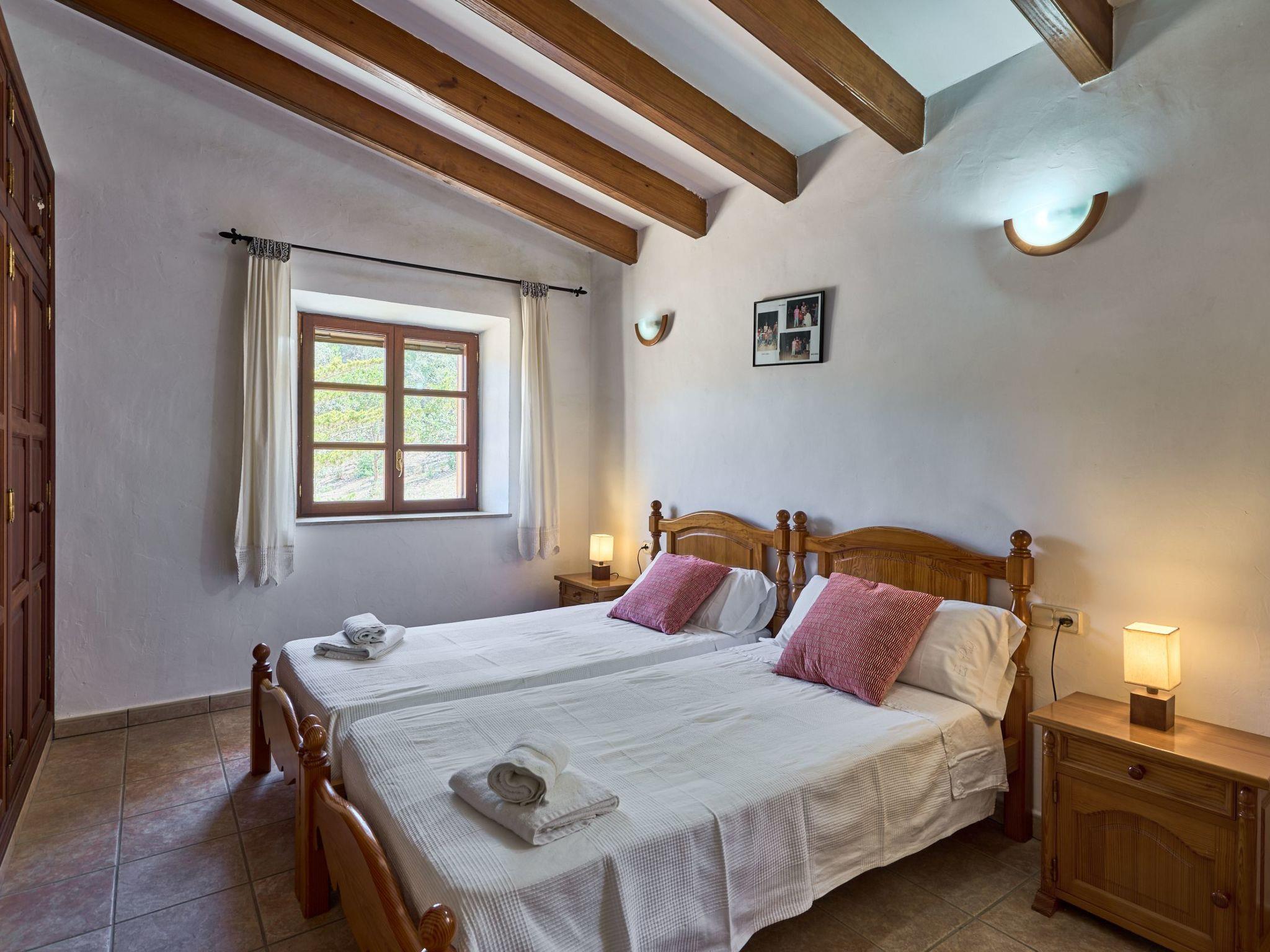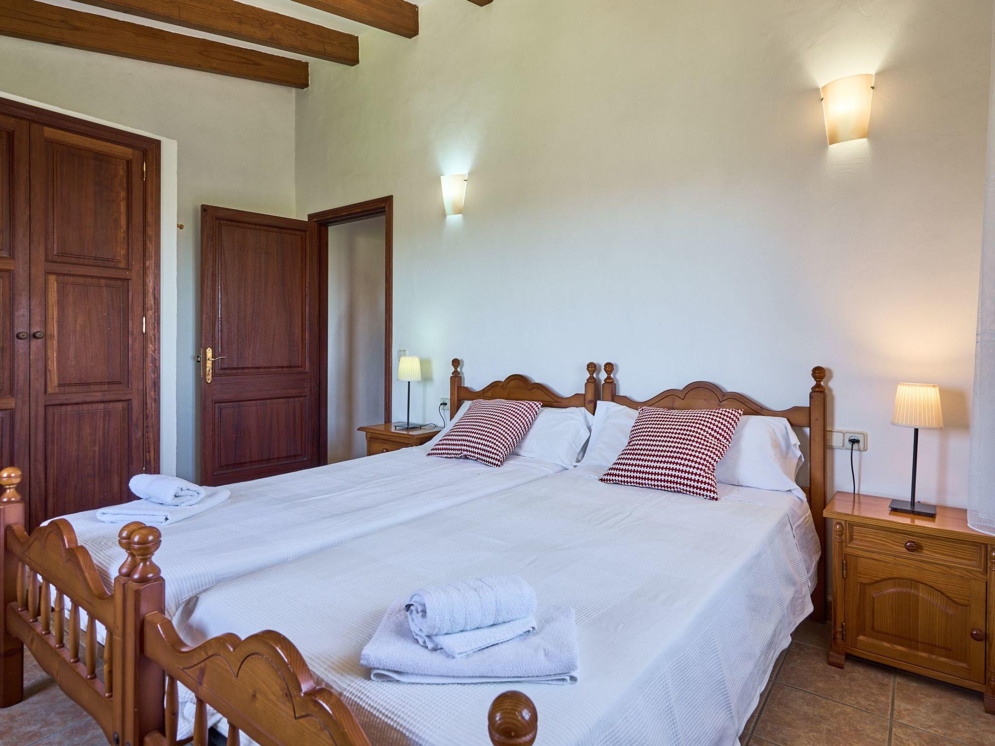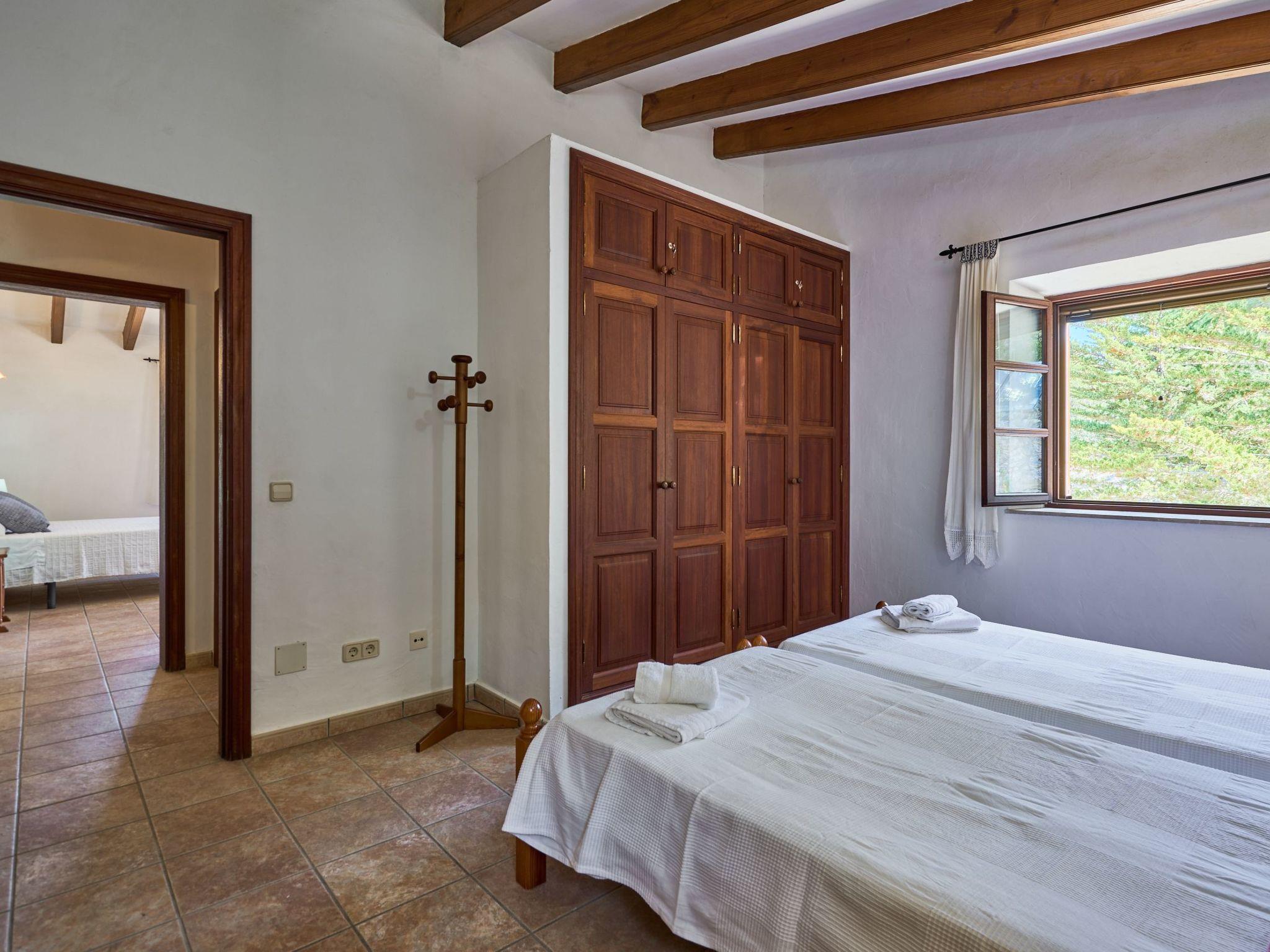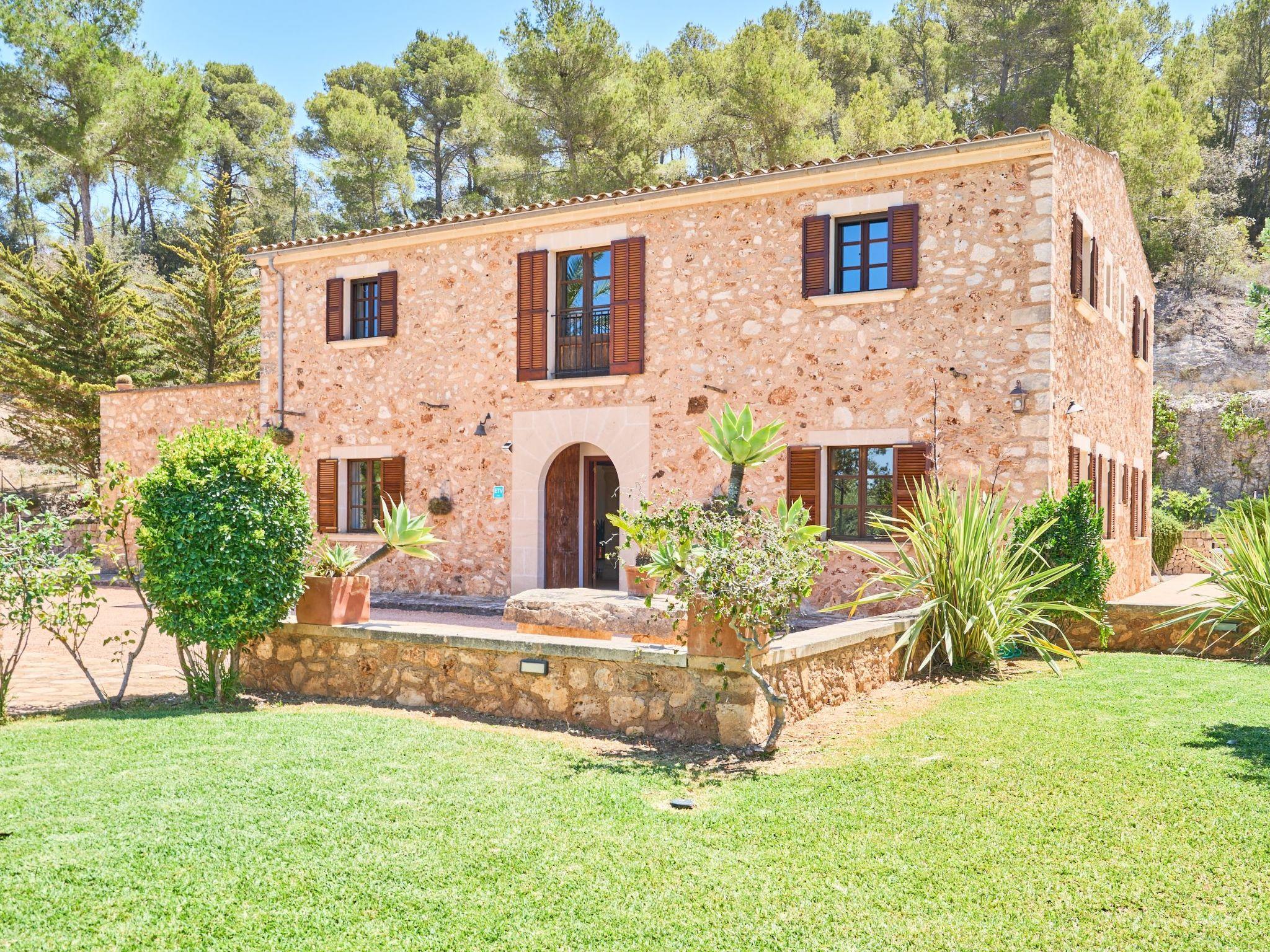 Carritxo is a spacious Mallorcan country-style house spread over two floors. The exterior is clad in natural stone. The interior has high ceilings with wooden beams.