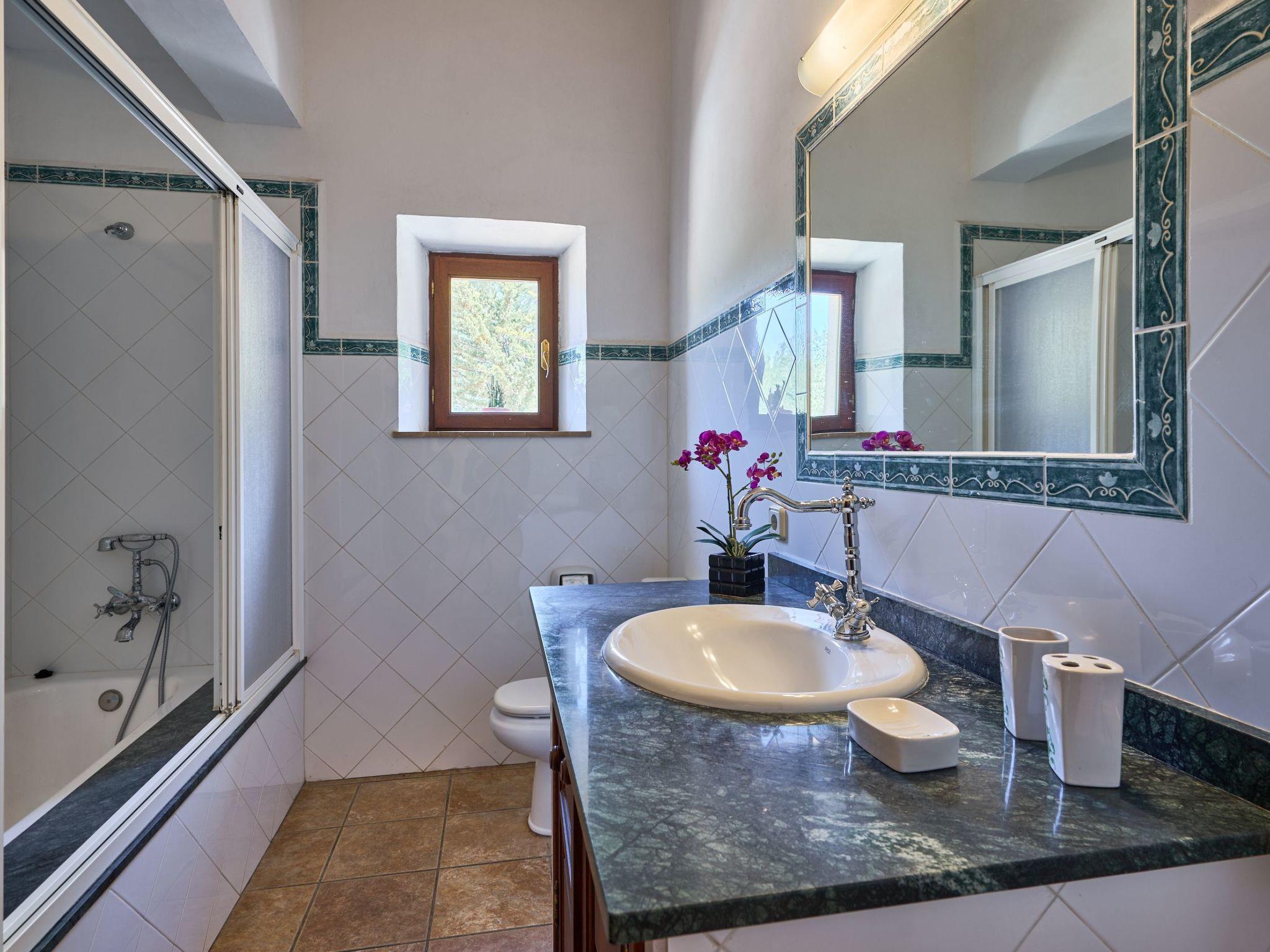 On the first floor there are three bedrooms and two bathrooms. The master bedroom with a double bed has access to a terrace with panoramic views of the surrounding area. The other two bedrooms each have two single beds and share two bathrooms with a bathtub. Here you will also find two lounge areas with sofas, ideal for relaxing or reading.