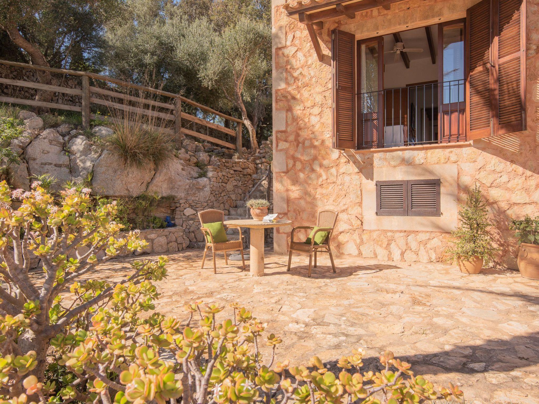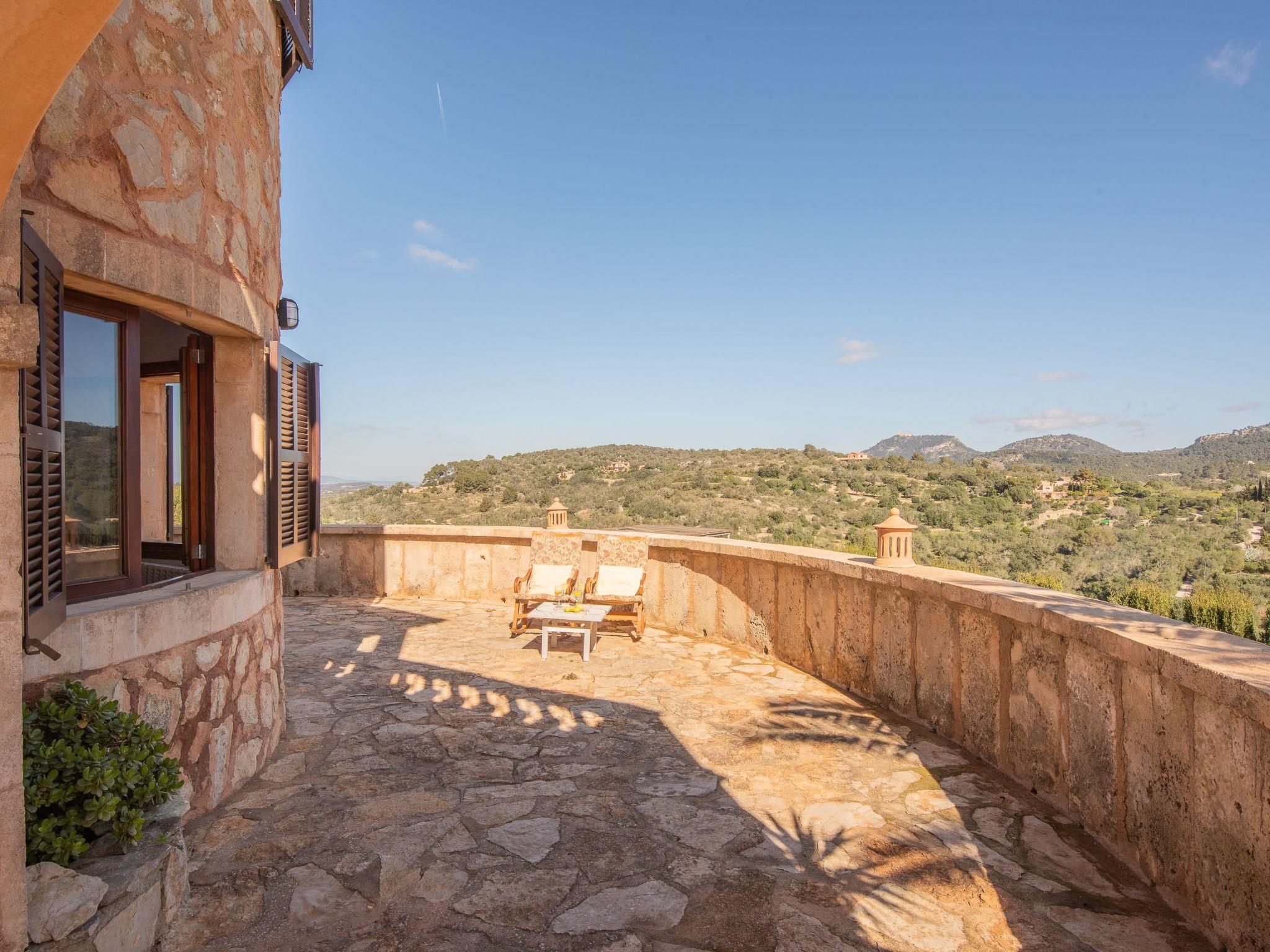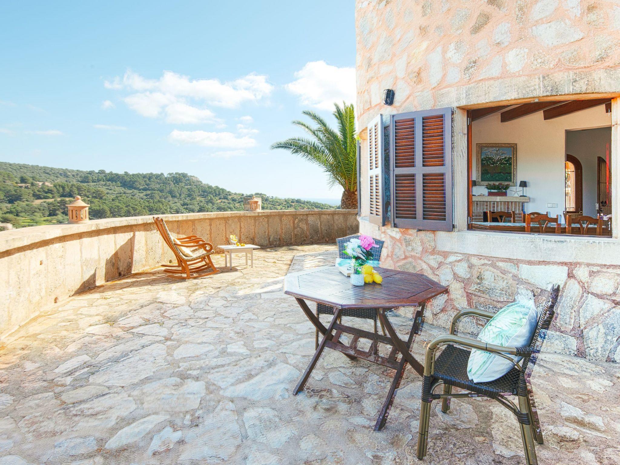 The beautiful natural stone finca Roca is situated on a hill and offers a breathtaking view of the charming landscape. From the front of the house you can enjoy a marvellous view of the coast in the distance. The rear of the house has wonderful uninterrupted views of the interior, with mountains in the background, the monastery of San Salvador and the ruins of Santueri Castle. Roca is only 1.5 km from the village of Es Carritxo and about 10 minutes by car from Felanitx, where you will find small shops, restaurants, cafés, handmade ceramics and a lively weekly market every Sunday morning. A 15 minute drive away is the coast of Cala D'Or with sandy coves, shops, cafés, an endless choice of restaurants and the exclusive marina. Cala D'Or offers various water sports or you can book a trip on a glass bottom boat and discover the beautiful south-east coast of Mallorca from the sea.