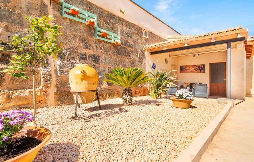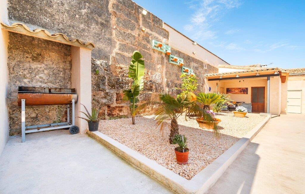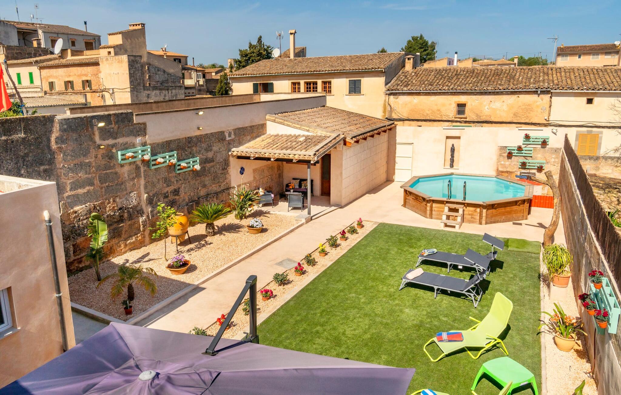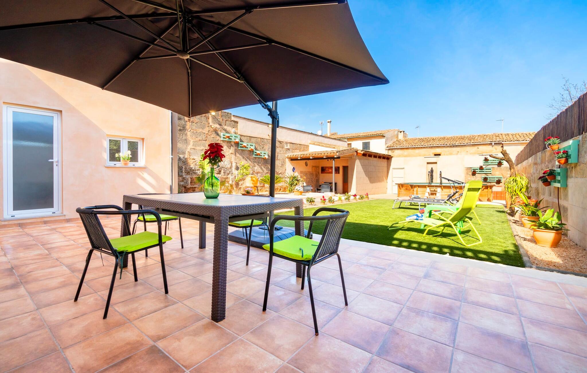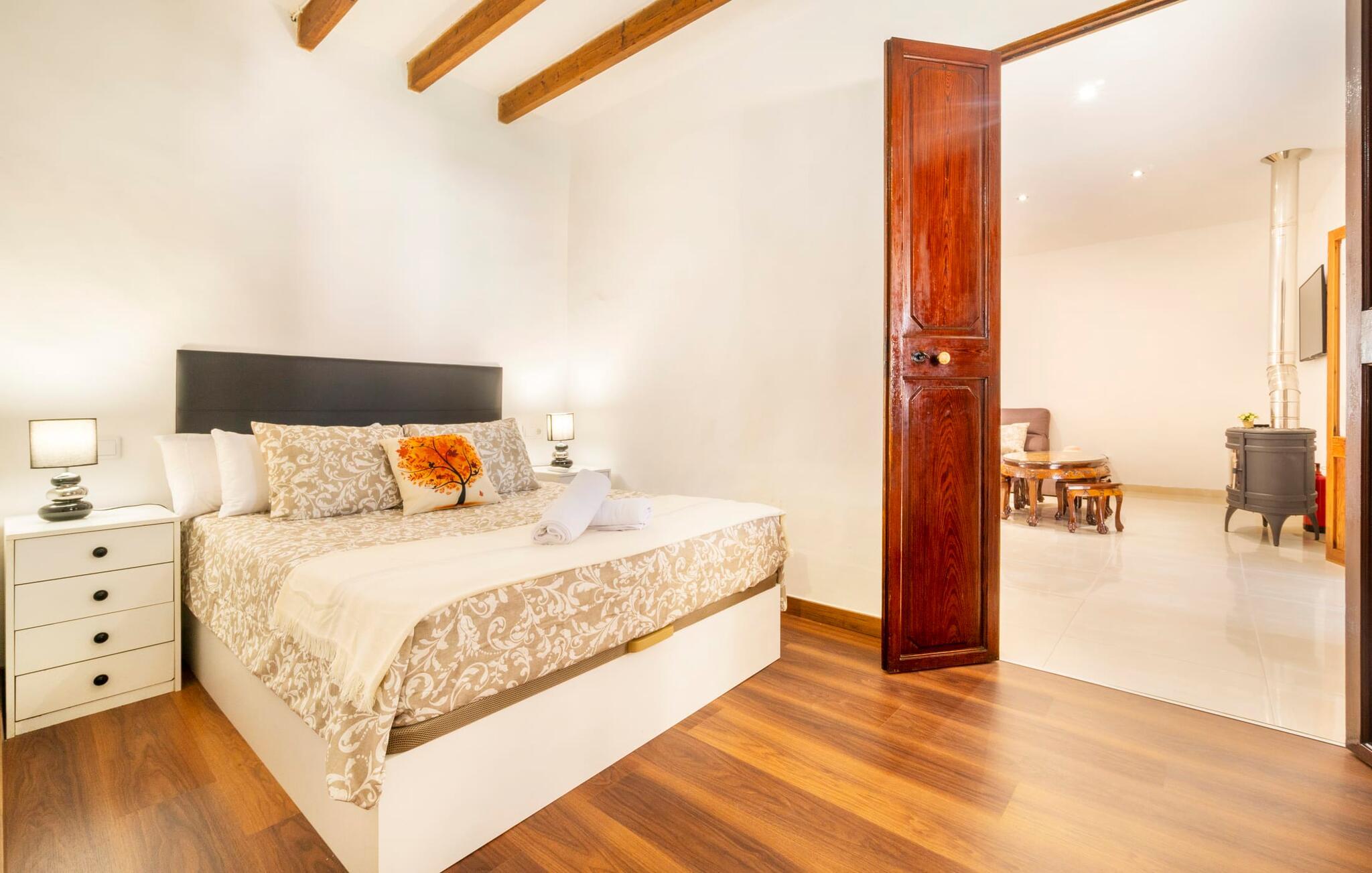 det moderne rækkehus "Cas Padri Pep" kan I se frem til afslapning og høj livskvalitet midt i den smukke kulisse af Plà de Mallorca. Dette charmerende feriehus med landsbykarakter afspejler tiltrækningen af en drømmende landsby i centrum af øen. I harmoni med omgivelserne og indretningen, langt væk fra masseturismen, skiller det smarte hus sig behageligt ud. En særlig fordel: I kan slentre gennem den historiske landsby til fods og besøge nogle meget gode restauranter. Det slanke, gennemrenoverede feriehus har en kærligt designet gårdhave, der er blevet forvandlet til en sand oase af velvære. Terrassen byder på grønt kunstgræs og er blevet beriget med talrige middelhavsplanter. Det rundes af med en hyggelig, overdækket siddeplads og grill. Den runde pop-up pool med træbeklædning er ikke kun børnevenlig, men tilbyder også en behagelig måde at køle af på, især på ferie i centrum af øen. Det individuelle design af udendørsbruseren afslører allerede meget om den optimale indretningsstil, der venter jer indenfor. Bæredygtigt, individuelt og overskueligt – det er mottoet for den sofistikerede indretning af det moderne feriehus. Mørkt træ kombineret med lyse hvidt skaber tidløs chic. Alene køkken-alrummet, som er flettet sammen med terrassen gennem store skydevinduer, imponerer med sit eksklusive design. Det fuldt udstyrede køkken er adskilt fra spisestuen med en træbord. Det tilstødende badeværelse med badekar fungerer som både indendørs og udendørs badeværelse, da det ligger tæt på terrassen. Ved siden af ligger den indbydende stue med et væghængt fjernsyn og en hyggelig pejs. Det smukke, fuldt klimatiserede sommerhus er ideelt til en familie eller to par. Begge soveværelser har eget moderne badeværelse med bruseniche. To ekstra senge er tilgængelige for børn. I "Cas Padri Pep" kan I lære det landlige Mallorca at kende og slappe af midt på et autentisk sted. Afslapning er uundgåelig her! Med det moderne "Cas Padri Pep" præsenterer vi jer et charmerende rækkehus med have, gårdhavekarakter og pop-up pool i en overordnet inspirerende stil. Det smarte feriehus ligger i den drømmende landsby Ariany i centrum af øen. Landsbyen med lille byinfrastruktur ligger mellem Santa Margalida og Petra, hvor I kan gøre jeres større indkøb. Turen til Palma tager omkring 25 minutter. Den nærmeste strand med attraktive tilbud – Can Picafort – ligger ca. 15 km væk.