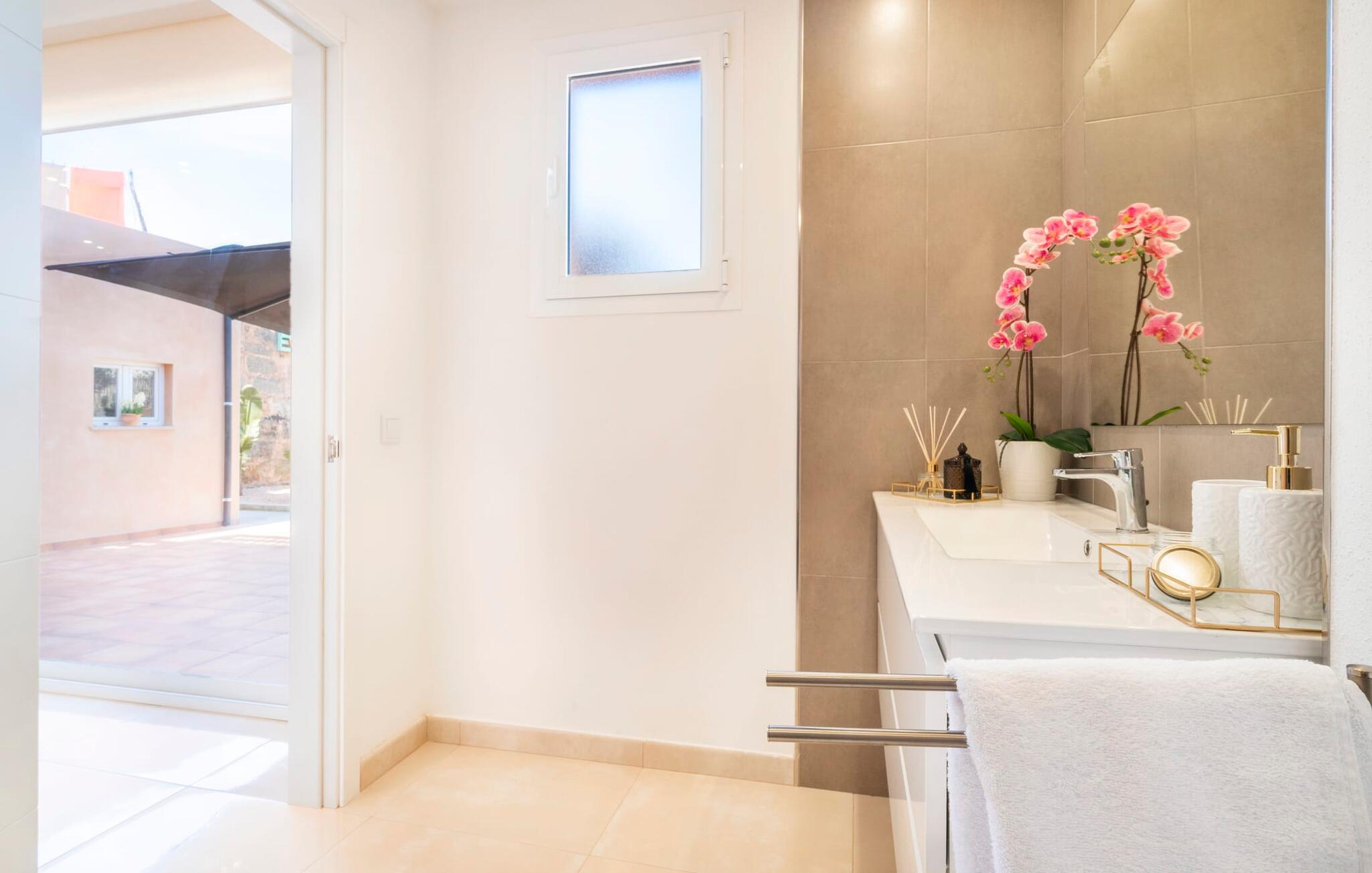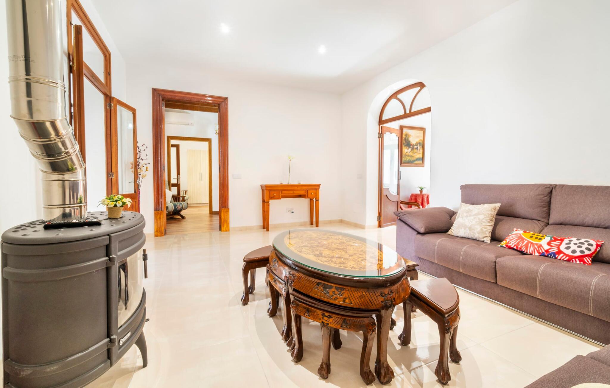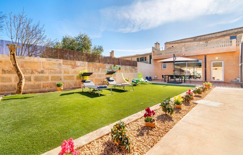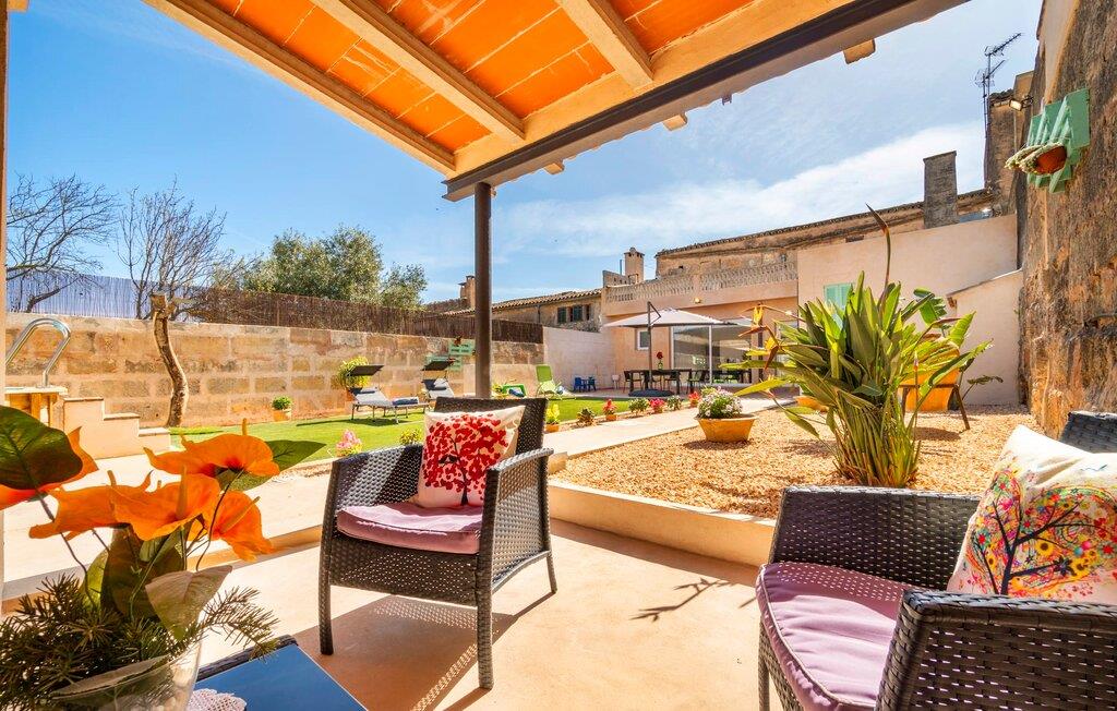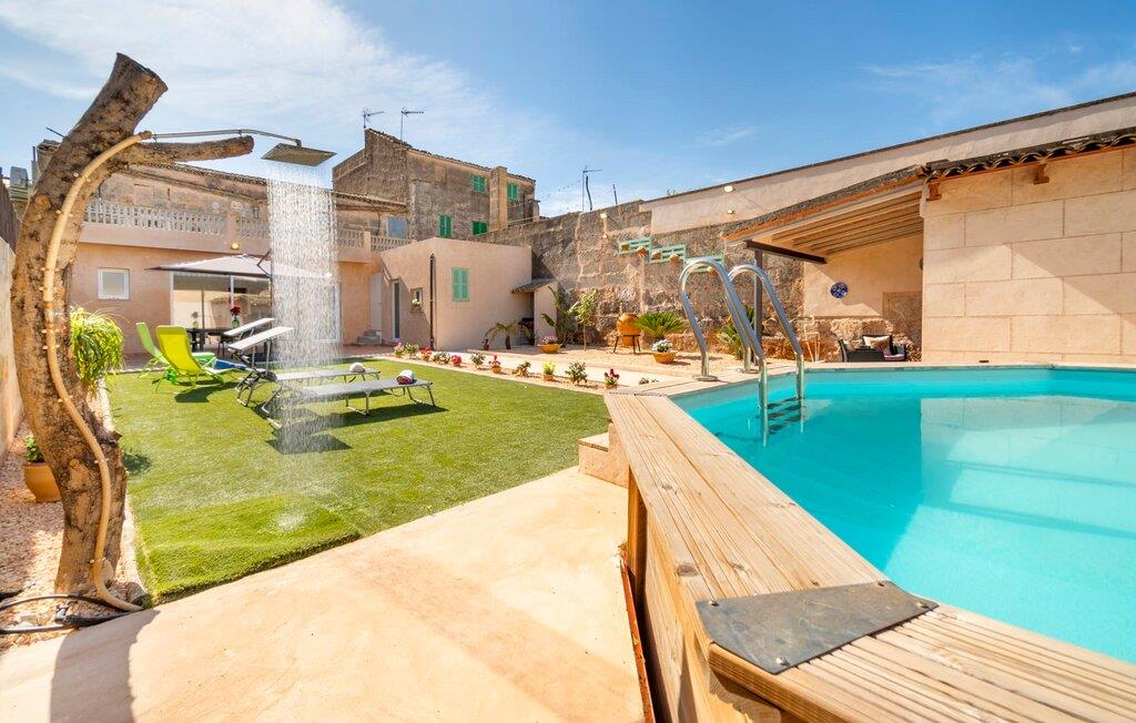 det moderne rækkehus "Cas Padri Pep" kan I se frem til afslapning og høj livskvalitet midt i den smukke kulisse af Plà de Mallorca. Dette charmerende feriehus med landsbykarakter afspejler tiltrækningen af en drømmende landsby i centrum af øen. I harmoni med omgivelserne og indretningen, langt væk fra masseturismen, skiller det smarte hus sig behageligt ud. En særlig fordel: I kan slentre gennem den historiske landsby til fods og besøge nogle meget gode restauranter. Det slanke, gennemrenoverede feriehus har en kærligt designet gårdhave, der er blevet forvandlet til en sand oase af velvære. Terrassen byder på grønt kunstgræs og er blevet beriget med talrige middelhavsplanter. Det rundes af med en hyggelig, overdækket siddeplads og grill. Den runde pop-up pool med træbeklædning er ikke kun børnevenlig, men tilbyder også en behagelig måde at køle af på, især på ferie i centrum af øen. Det individuelle design af udendørsbruseren afslører allerede meget om den optimale indretningsstil, der venter jer indenfor. Bæredygtigt, individuelt og overskueligt – det er mottoet for den sofistikerede indretning af det moderne feriehus. Mørkt træ kombineret med lyse hvidt skaber tidløs chic. Alene køkken-alrummet, som er flettet sammen med terrassen gennem store skydevinduer, imponerer med sit eksklusive design. Det fuldt udstyrede køkken er adskilt fra spisestuen med en træbord. Det tilstødende badeværelse med badekar fungerer som både indendørs og udendørs badeværelse, da det ligger tæt på terrassen. Ved siden af ligger den indbydende stue med et væghængt fjernsyn og en hyggelig pejs. Det smukke, fuldt klimatiserede sommerhus er ideelt til en familie eller to par. Begge soveværelser har eget moderne badeværelse med bruseniche. To ekstra senge er tilgængelige for børn. I "Cas Padri Pep" kan I lære det landlige Mallorca at kende og slappe af midt på et autentisk sted. Afslapning er uundgåelig her! Med det moderne "Cas Padri Pep" præsenterer vi jer et charmerende rækkehus med have, gårdhavekarakter og pop-up pool i en overordnet inspirerende stil. Det smarte feriehus ligger i den drømmende landsby Ariany i centrum af øen. Landsbyen med lille byinfrastruktur ligger mellem Santa Margalida og Petra, hvor I kan gøre jeres større indkøb. Turen til Palma tager omkring 25 minutter. Den nærmeste strand med attraktive tilbud – Can Picafort – ligger ca. 15 km væk.