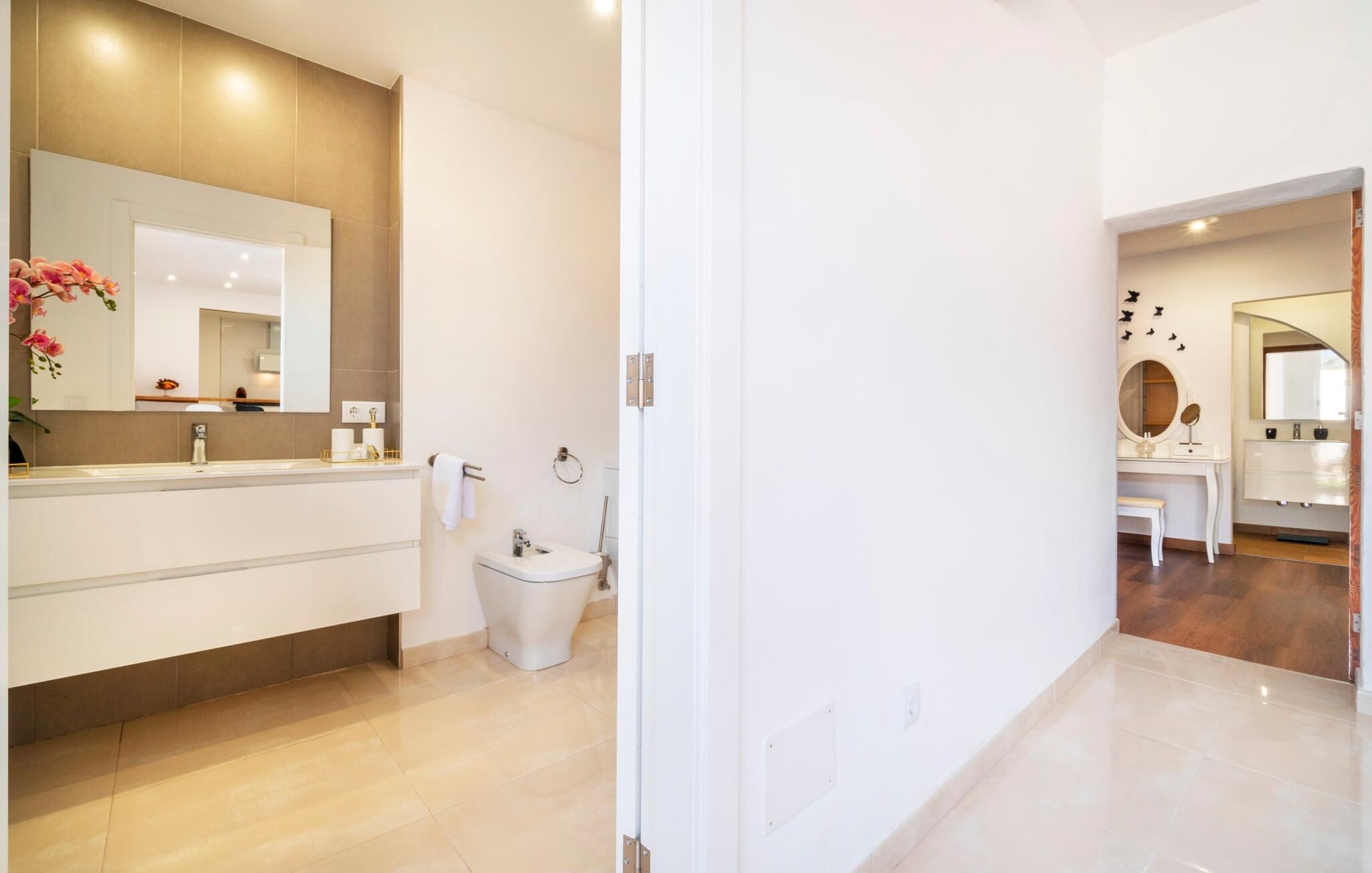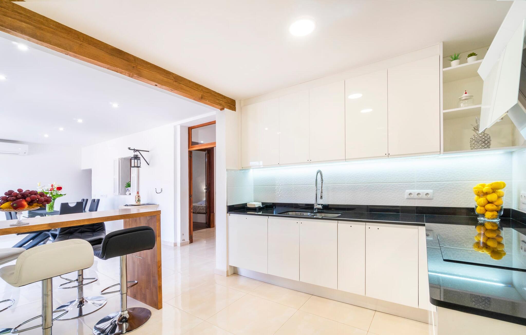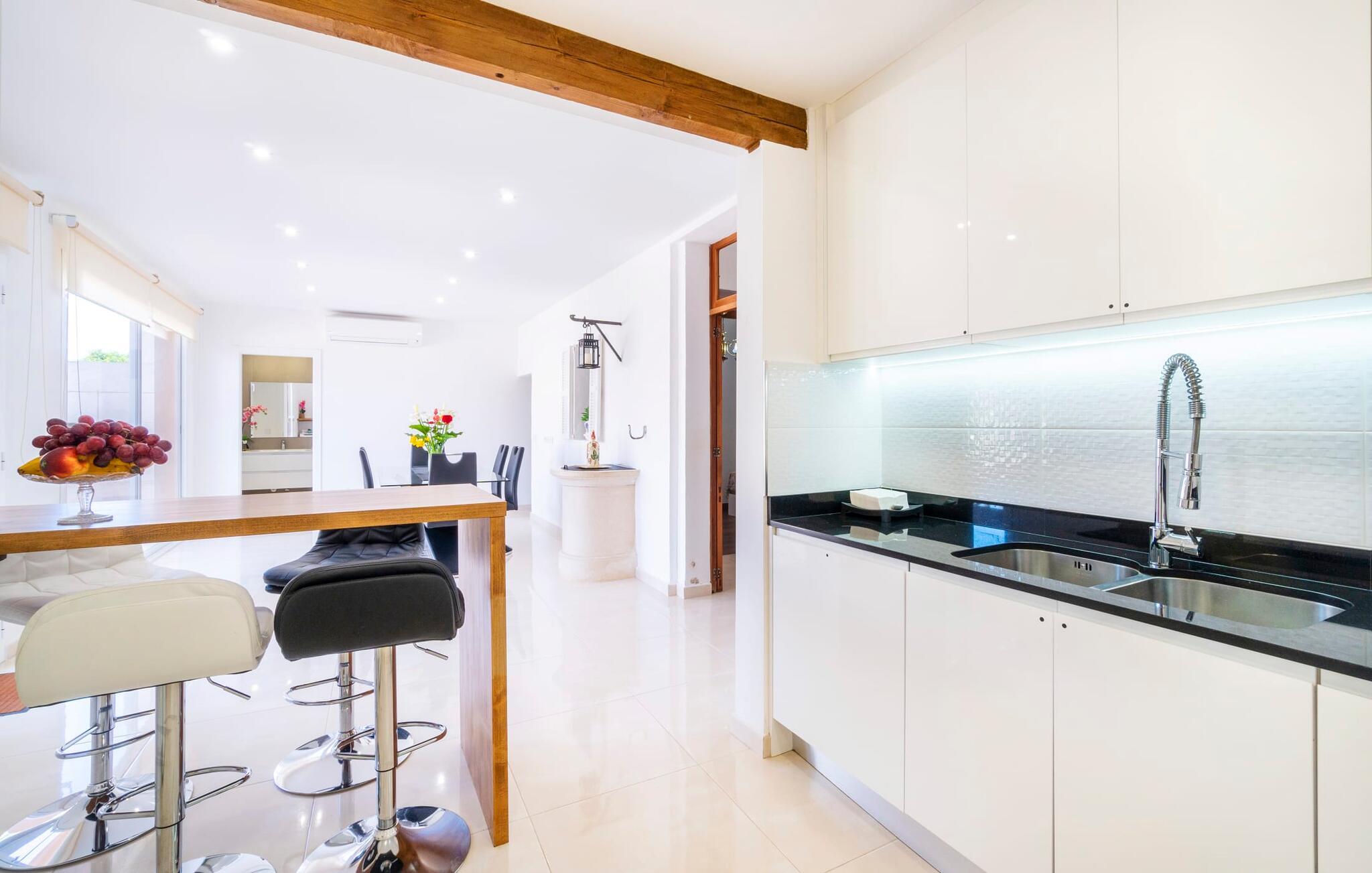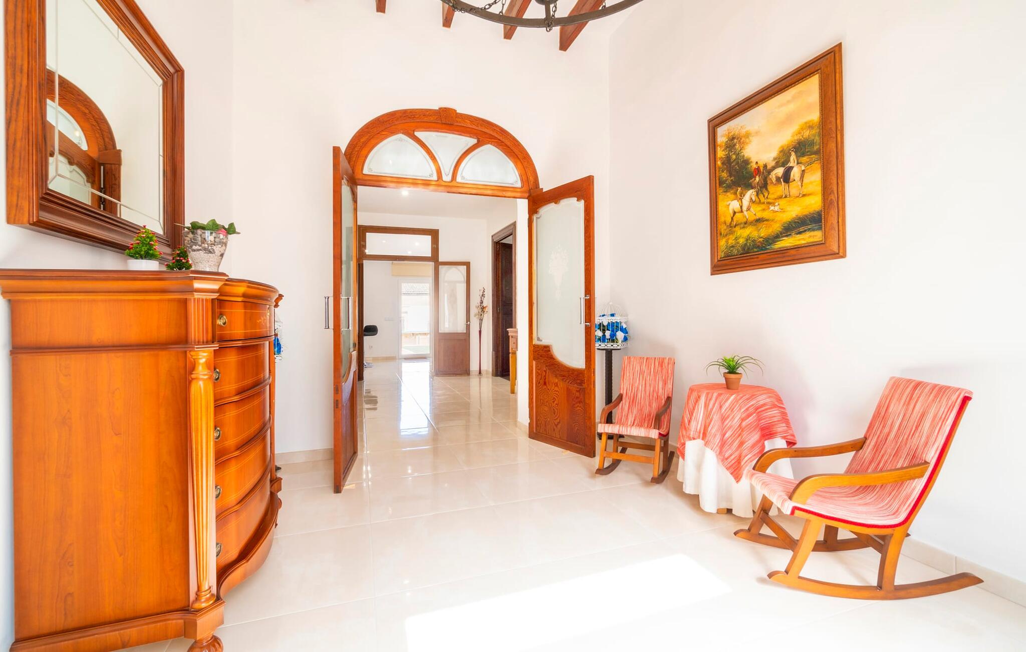 det moderne rækkehus "Cas Padri Pep" kan I se frem til afslapning og høj livskvalitet midt i den smukke kulisse af Plà de Mallorca. Dette charmerende feriehus med landsbykarakter afspejler tiltrækningen af en drømmende landsby i centrum af øen. I harmoni med omgivelserne og indretningen, langt væk fra masseturismen, skiller det smarte hus sig behageligt ud. En særlig fordel: I kan slentre gennem den historiske landsby til fods og besøge nogle meget gode restauranter. Det slanke, gennemrenoverede feriehus har en kærligt designet gårdhave, der er blevet forvandlet til en sand oase af velvære. Terrassen byder på grønt kunstgræs og er blevet beriget med talrige middelhavsplanter. Det rundes af med en hyggelig, overdækket siddeplads og grill. Den runde pop-up pool med træbeklædning er ikke kun børnevenlig, men tilbyder også en behagelig måde at køle af på, især på ferie i centrum af øen. Det individuelle design af udendørsbruseren afslører allerede meget om den optimale indretningsstil, der venter jer indenfor. Bæredygtigt, individuelt og overskueligt – det er mottoet for den sofistikerede indretning af det moderne feriehus. Mørkt træ kombineret med lyse hvidt skaber tidløs chic. Alene køkken-alrummet, som er flettet sammen med terrassen gennem store skydevinduer, imponerer med sit eksklusive design. Det fuldt udstyrede køkken er adskilt fra spisestuen med en træbord. Det tilstødende badeværelse med badekar fungerer som både indendørs og udendørs badeværelse, da det ligger tæt på terrassen. Ved siden af ligger den indbydende stue med et væghængt fjernsyn og en hyggelig pejs. Det smukke, fuldt klimatiserede sommerhus er ideelt til en familie eller to par. Begge soveværelser har eget moderne badeværelse med bruseniche. To ekstra senge er tilgængelige for børn. I "Cas Padri Pep" kan I lære det landlige Mallorca at kende og slappe af midt på et autentisk sted. Afslapning er uundgåelig her! Med det moderne "Cas Padri Pep" præsenterer vi jer et charmerende rækkehus med have, gårdhavekarakter og pop-up pool i en overordnet inspirerende stil. Det smarte feriehus ligger i den drømmende landsby Ariany i centrum af øen. Landsbyen med lille byinfrastruktur ligger mellem Santa Margalida og Petra, hvor I kan gøre jeres større indkøb. Turen til Palma tager omkring 25 minutter. Den nærmeste strand med attraktive tilbud – Can Picafort – ligger ca. 15 km væk.