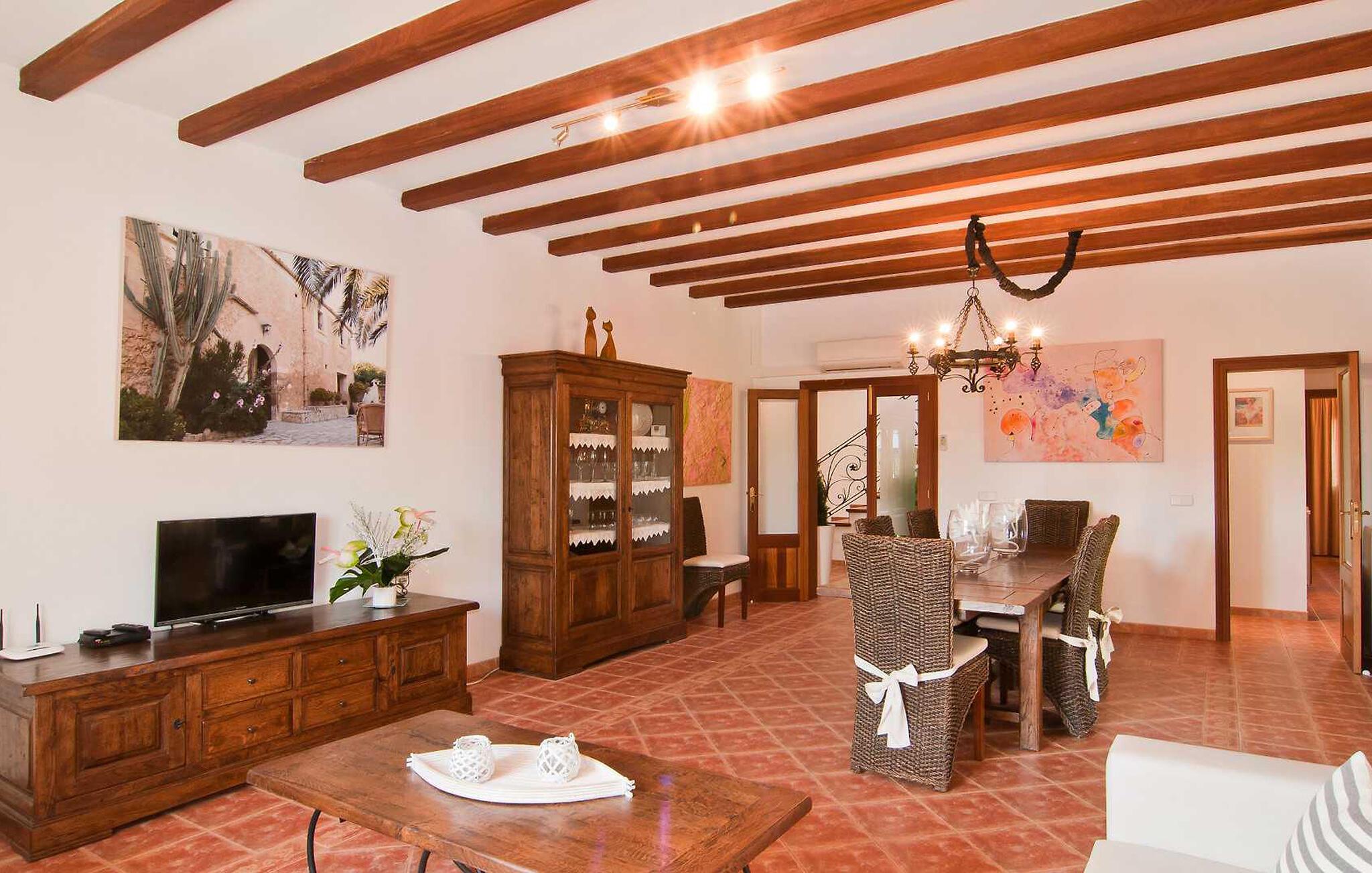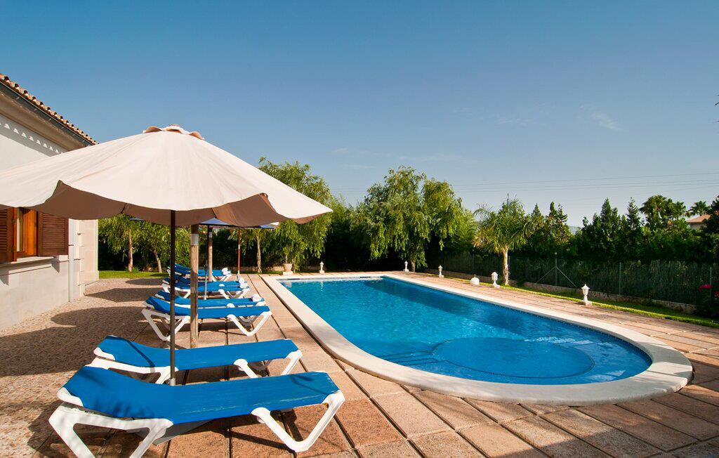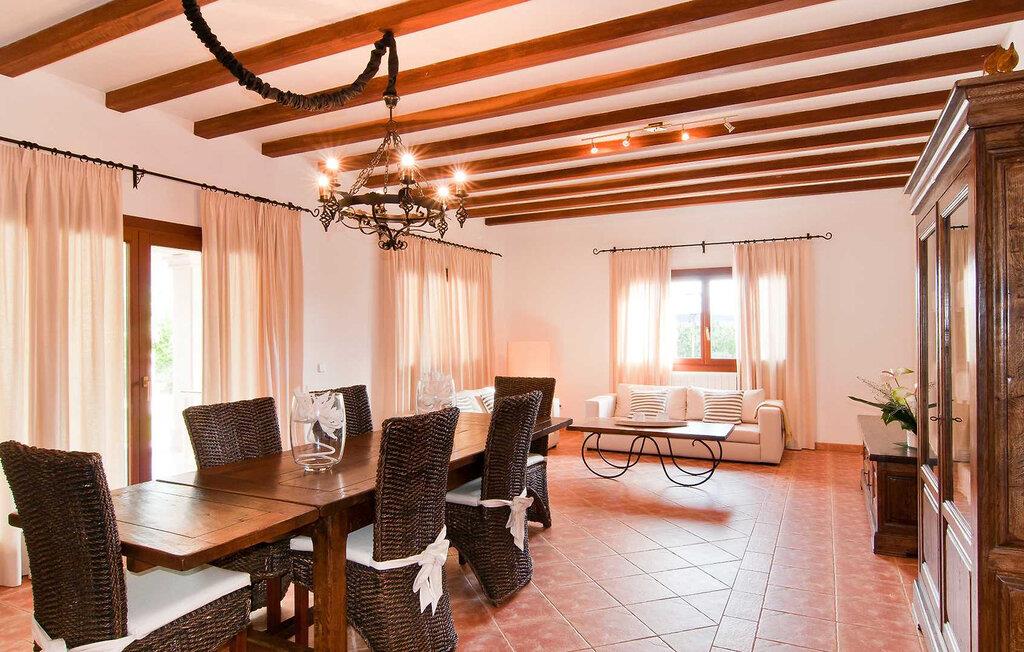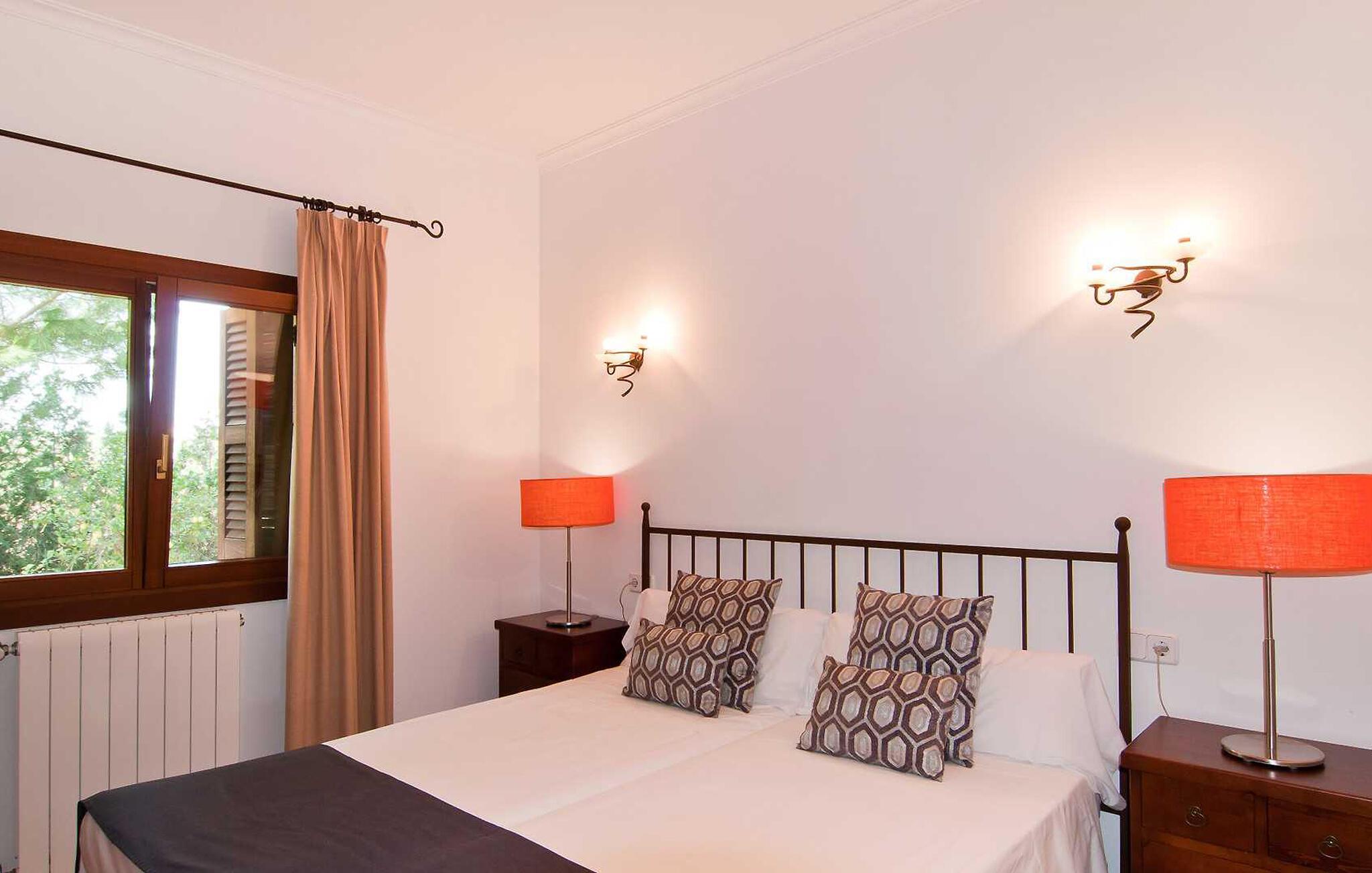 Den smukke middelhavsvilla "Cas Sabateret" har en landlig atmosfære. I kommer til via en asfalteret sti og de sidste meter fører jer ad villastien langs den smukke have. I finder to parkeringspladser, der giver skygge til jeres køretøjer, samt andre pladser ved huset. Straks man når frem til sommerhuset, fremstår den fritliggende villas abrikosfarvede facader og træskodder umiddelbart meget indbydende. Ejendommen er omgivet af en smuk have, skyggefulde træer og græsplæner. Indgangspartiet har naturstenslignende plader og er omgivet af palmer. Den afrundede pool er placeret på den private ejendom lige foran det sydvendte hus og inviterer straks til at slappe af i den varme mallorcanske sol. Poolen har en maksimal vanddybde på 1,90 m. Indgangen er via en trappe dekoreret med mosaikfliser på begge sider, hvori midten kan lege i det lave vand eller voksne kan forfriske sig med en kølig drink. Poolen er omgivet af en terrasse, hvor der er en udendørs bruser og flere liggestole med parasoller. I finder hurtigt plads til at nyde dagen med en god bog eller bare slappe af. Et højdepunkt er Bali-sengen lige ved poolen, som indbyder til at slappe af med udsigt til poolen og det grønne. Foran huset er der en overdækket terrasse med spisebord med stole og en indbydende hvid sofa. Her kan I spise godt og slappe af med venner eller familie. Hvis I vil slappe af, kan I gå til tagterrassen, som kan nås fra et af soveværelserne. Den sydlige orientering og villaens store vinduespartier sikrer venlig lysstyrke inde i huset. Sammen med den rustikke indretning og jeres møbler af høj kvalitet er dette meget hyggeligt. Bemærkelsesværdige er de fritlagte træbjælker under loftet, som tilføjer den rustikke charme, samt de typiske mallorcanske fliser i en lerfarve, der kan findes i hele huset. Fra det venlige indgangsparti går man direkte ind i den tilstødende stue og spisestue, hvor der er et stort spisebord i træ. Rotanstolene med deres lyse hynder inviterer jer til at tilbringe lange aftener sammen. Så I kan bruge en hyggelig aften med at se tv fra den lyse sofa. I det fuldt udstyrede køkken er der en anden stor spiseplads, der inviterer til at lave mad aftener sammen. Køkkenet tilbyder gæsterne alle de bekvemmeligheder, I normalt ville finde derhjemme: opvaskemaskine, ovn, komfur, køleskab/fryser, mikroovn, elkedel og kaffemaskine. De fire venlige og attraktive værelser er smagfuldt indrettede. Sengene på 1,90 x 2,0 m inviterer jer til at sove godt. Der er i alt fire rummelige badeværelser, alle en-suite, det ene med jacuzzi og gæstetoilet. Tre soveværelser er i stueetagen og et på øverste etage med udgang til tagterrassen, hvorfra I har en smuk udsigt over poolen. Villaen ligger i en smuk, landlig beliggenhed nær byen Muro. I kan gå her om søndagen til det ugentlige marked. Der er yderligere indkøbsmuligheder i Can Picafort. I den nordlige del, som er domineret af turisme, er der smukke sandstrande. Bugterne Alcúdia og Pollença kan nås hurtigt. Der er vandremuligheder i nærheden og også i Tramuntana-bjergene. Bemærk venligst, at denne ejendom ikke accepterer ungdomsgrupper eller polterabender. En ungdomsgruppe på denne ejendom består af personer i alderen [30] eller yngre. Book ikke denne ejendom, hvis I er en ungdomsgruppe eller polterabend, da jeres reservation vil blive afvist, når den er booket, hvilket også kan være tilfældet ved ankomst til ejendommen eller under jeres ophold, og I vil ikke modtage en refusion