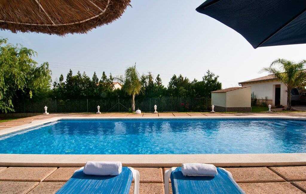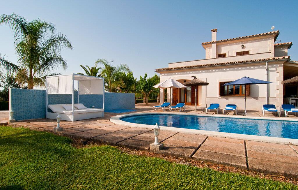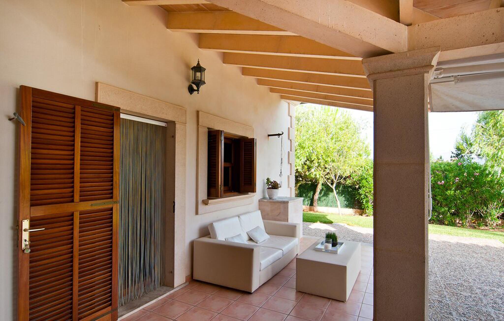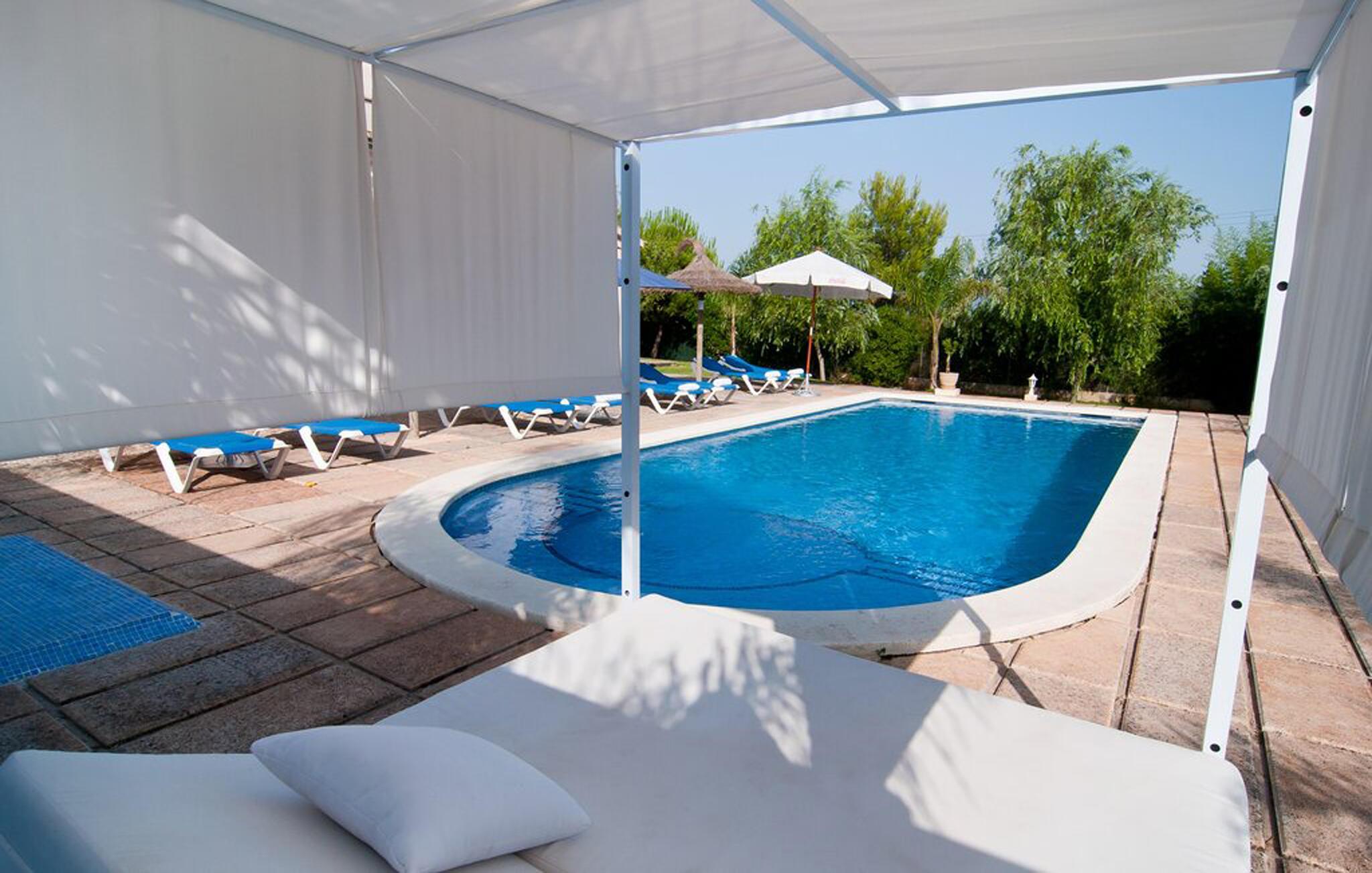 Den smukke middelhavsvilla "Cas Sabateret" har en landlig atmosfære. I kommer til via en asfalteret sti og de sidste meter fører jer ad villastien langs den smukke have. I finder to parkeringspladser, der giver skygge til jeres køretøjer, samt andre pladser ved huset. Straks man når frem til sommerhuset, fremstår den fritliggende villas abrikosfarvede facader og træskodder umiddelbart meget indbydende. Ejendommen er omgivet af en smuk have, skyggefulde træer og græsplæner. Indgangspartiet har naturstenslignende plader og er omgivet af palmer. Den afrundede pool er placeret på den private ejendom lige foran det sydvendte hus og inviterer straks til at slappe af i den varme mallorcanske sol. Poolen har en maksimal vanddybde på 1,90 m. Indgangen er via en trappe dekoreret med mosaikfliser på begge sider, hvori midten kan lege i det lave vand eller voksne kan forfriske sig med en kølig drink. Poolen er omgivet af en terrasse, hvor der er en udendørs bruser og flere liggestole med parasoller. I finder hurtigt plads til at nyde dagen med en god bog eller bare slappe af. Et højdepunkt er Bali-sengen lige ved poolen, som indbyder til at slappe af med udsigt til poolen og det grønne. Foran huset er der en overdækket terrasse med spisebord med stole og en indbydende hvid sofa. Her kan I spise godt og slappe af med venner eller familie. Hvis I vil slappe af, kan I gå til tagterrassen, som kan nås fra et af soveværelserne. Den sydlige orientering og villaens store vinduespartier sikrer venlig lysstyrke inde i huset. Sammen med den rustikke indretning og jeres møbler af høj kvalitet er dette meget hyggeligt. Bemærkelsesværdige er de fritlagte træbjælker under loftet, som tilføjer den rustikke charme, samt de typiske mallorcanske fliser i en lerfarve, der kan findes i hele huset. Fra det venlige indgangsparti går man direkte ind i den tilstødende stue og spisestue, hvor der er et stort spisebord i træ. Rotanstolene med deres lyse hynder inviterer jer til at tilbringe lange aftener sammen. Så I kan bruge en hyggelig aften med at se tv fra den lyse sofa. I det fuldt udstyrede køkken er der en anden stor spiseplads, der inviterer til at lave mad aftener sammen. Køkkenet tilbyder gæsterne alle de bekvemmeligheder, I normalt ville finde derhjemme: opvaskemaskine, ovn, komfur, køleskab/fryser, mikroovn, elkedel og kaffemaskine. De fire venlige og attraktive værelser er smagfuldt indrettede. Sengene på 1,90 x 2,0 m inviterer jer til at sove godt. Der er i alt fire rummelige badeværelser, alle en-suite, det ene med jacuzzi og gæstetoilet. Tre soveværelser er i stueetagen og et på øverste etage med udgang til tagterrassen, hvorfra I har en smuk udsigt over poolen. Villaen ligger i en smuk, landlig beliggenhed nær byen Muro. I kan gå her om søndagen til det ugentlige marked. Der er yderligere indkøbsmuligheder i Can Picafort. I den nordlige del, som er domineret af turisme, er der smukke sandstrande. Bugterne Alcúdia og Pollença kan nås hurtigt. Der er vandremuligheder i nærheden og også i Tramuntana-bjergene. Bemærk venligst, at denne ejendom ikke accepterer ungdomsgrupper eller polterabender. En ungdomsgruppe på denne ejendom består af personer i alderen [30] eller yngre. Book ikke denne ejendom, hvis I er en ungdomsgruppe eller polterabend, da jeres reservation vil blive afvist, når den er booket, hvilket også kan være tilfældet ved ankomst til ejendommen eller under jeres ophold, og I vil ikke modtage en refusion