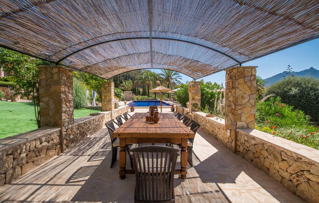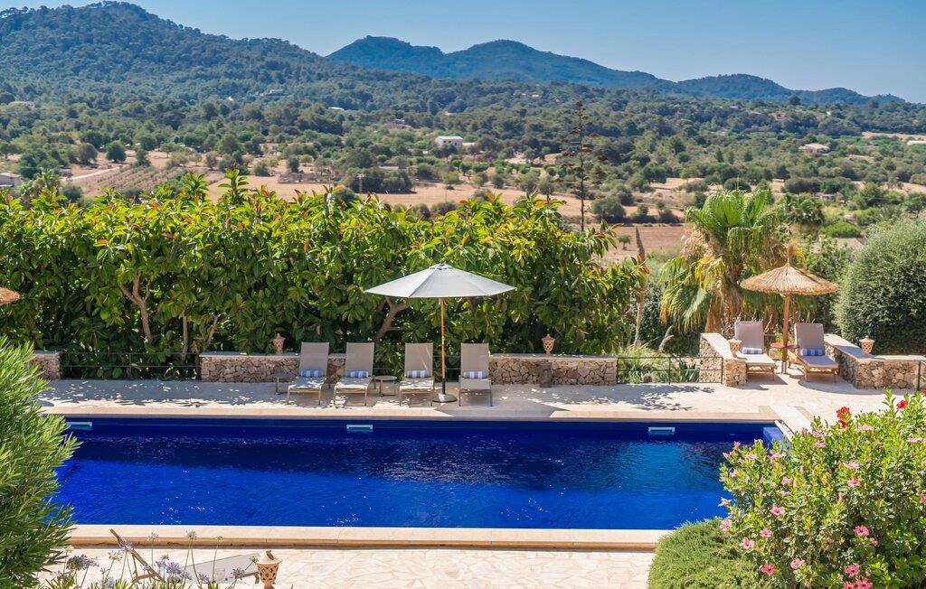 Oplev et sandt ferieparadis bag den elektriske port på "Casa Amorena". Denne udsøgte naturstensvilla, kærligt indrettet af sine tyske ejere, bevarer sin rustikke charme, mens den tilbyder moderne komfort. Beliggende i skovklædte bakker, har ejendommen en fantastisk have med palmer og cypresser, der blander sig problemfrit med den betagende udsigt over San Salvador-bjergene. Den glitrende pool med panoramaterrasse, højkvalitets rattan liggestole og en Bali seng inviterer jer til at slappe af. Et mezzaninniveau er ideelt til grillning, udstyret med en Weber-kulgrill og rigelige siddepladser, så I kan nyde essensen af Mallorca. For dem, der leder efter en aktiv ferie, har villaen et fitnesscenter, der er tilgængeligt fra haven. Den rummelige, udvendige suite i stueetagen med åbent badeværelse tilbyder også direkte adgang til poolen, mens der i stueetagen er en elegant opholds- og spisestue med pejs og XL-fladskærms-tv. Det luftige køkken og overdækkede terrasse tilføjer oplevelsen sammen med et yderligere soveværelse med dobbeltseng med en-suite badeværelse og privat balkon. Yderligere soveværelser og badeværelser er placeret ovenpå (der er ingen rækværk) med direkte adgang til den ekspansive loungebalkon. "Casa Amorena" tilbyder virkelig plads nok til alle. Stilfuldt renoveret, smuk tysklavet villa! Den terrasseret "Casa Amorena", i en rolig, afsondret beliggenhed kun 3 km fra Felanitx, kunne være kærlighed ved første blik. Et supermarked og et ugentligt marked, caféer og restauranter ligger kun få minutters kørsel væk i byen, og strandene ligger kun 15 km væk på den sydøstlige kyst.