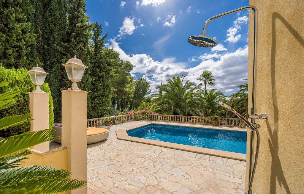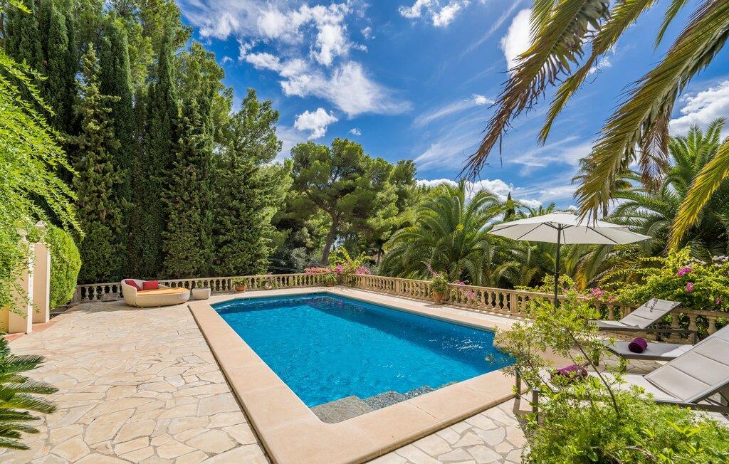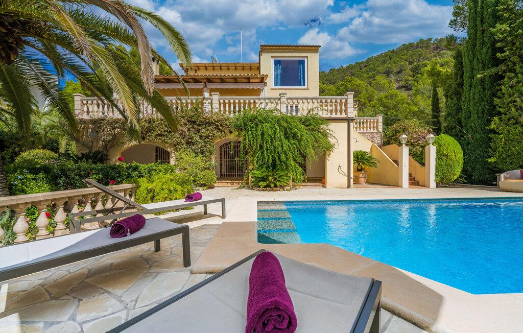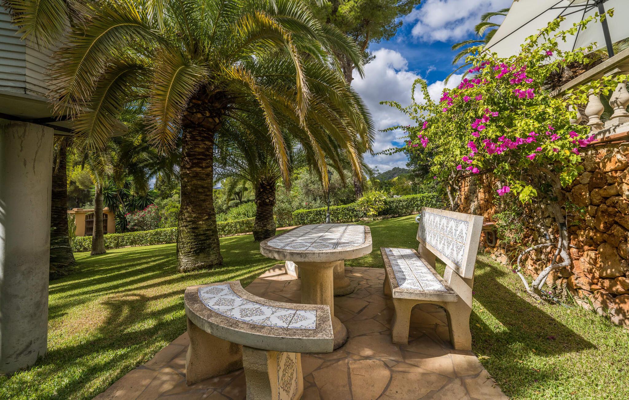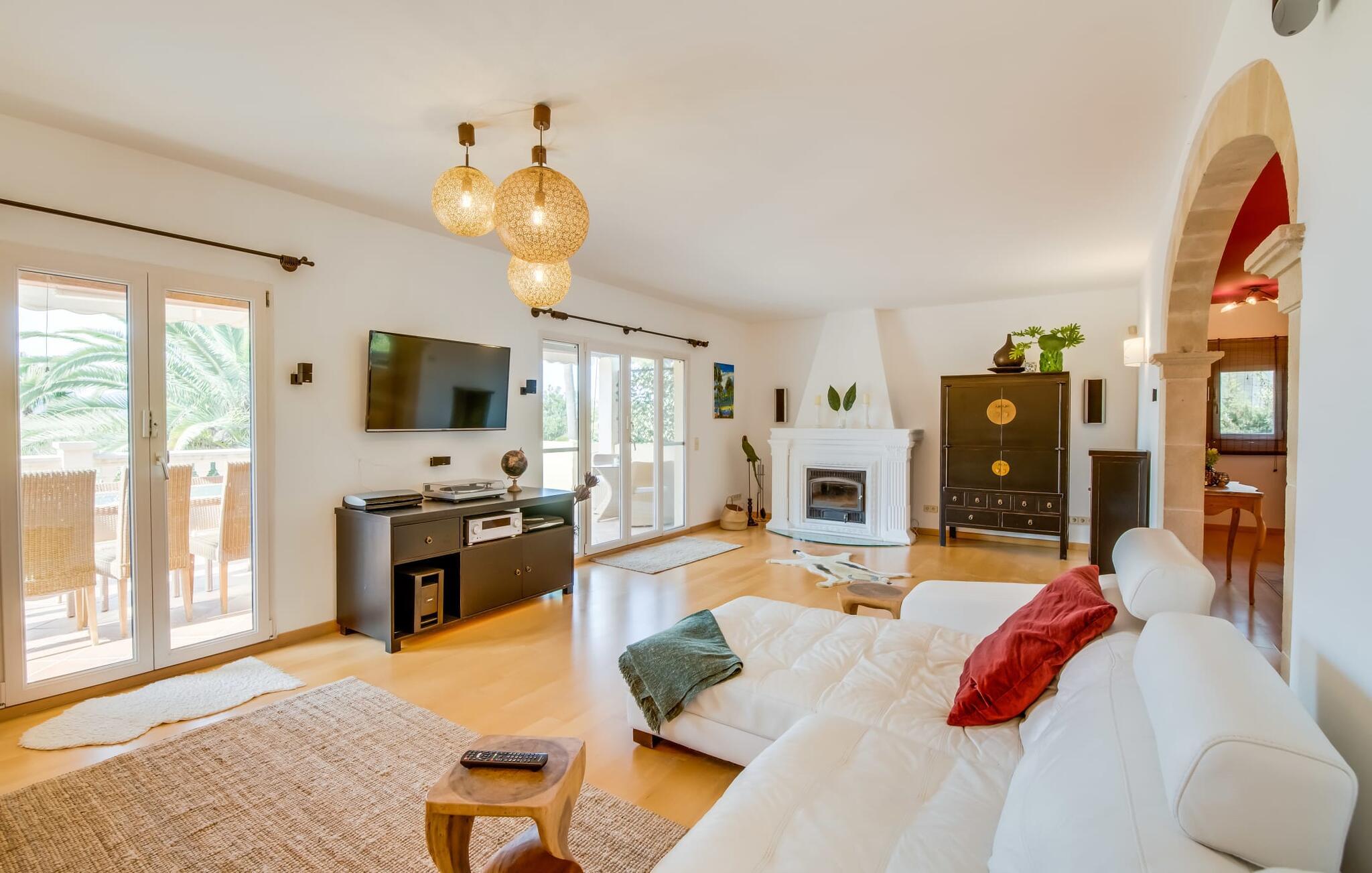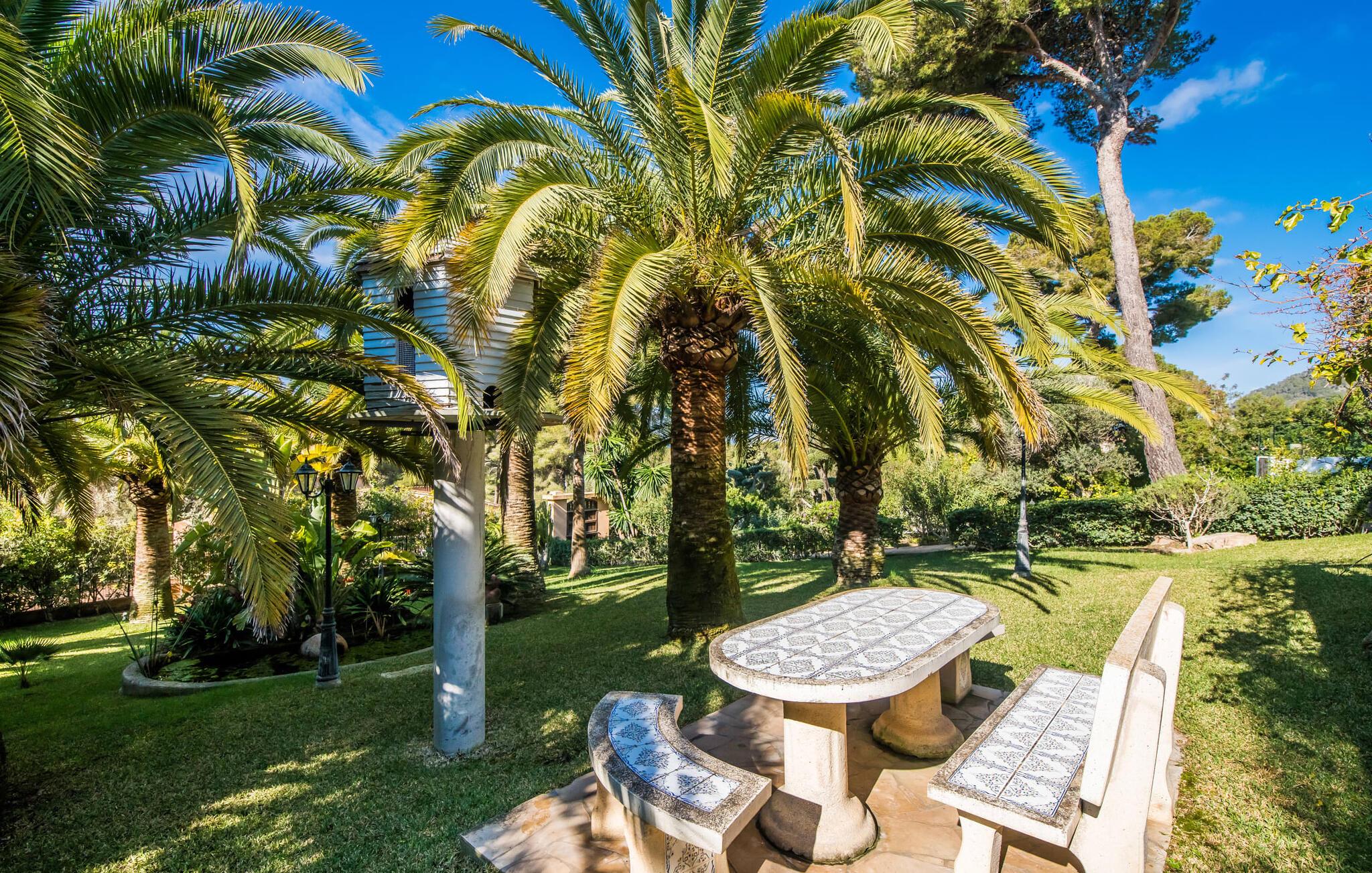 Et hav af palmer og whitecaps køler denne villa med sit eksotiske navn. I vil blive overrasket, når I ser det fuldt restaurerede og moderniserede Assindia fra alle sider. Gæsterne føler sig fuldstændig beskyttet under de grønne gardiner og bag poolområdets stenterrassetag, hvorigennem havets blå altid skinner igennem - selvom en vej (med meget lidt trafik) fører direkte forbi huset. Jo længere man klatrer fra haveoasen med sin idylliske dam og skyggefulde siddepladser, jo smukkere og friere bliver udsigten til bjergene. Villaens moderne interiør skinner også med masser af lys, hvide vægge, solrige aspekter og et varieret landskab til afslapning og siddende. Niveauet med den store altanterrasse deler den smagfuldt indrettede stue, læsehjørnet, et hyggeligt køkken, to soveværelser med badeværelser overfor og et gæstetoilet. Store sandstensbuer sørger for en flydende overgang, og selv to pejse sørger for knitrende hygge. Det åbne køkken med gaskomfur med el-konvektionsovn, vinkøleskab og fladskærms-tv lader intet tilbage at ønske, og mange af de ting, I skal bruge hver dag, hænger allerede fra loftet, lige ved hånden. I kan vælge at sidde afslappet ved bordet eller dække bordet udenfor med udsigt. Ovenpå har to gæster deres egen suite med walk-in-closet og stort badeværelse med regnbruser og spabad. Når I bor her, har I svært ved at komme ud af sengen eller endda ud af badekarret. Udsigten fra panoramavinduerne over bugten Cala Millor er simpelthen fantastisk. Livlig, fri og smuk: Udover populære feriesteder og badebugter til afslappet familieferie, byder denne kystregion på udflugtsmål, der opfylder jeres ønske om eventyr, romantik og kunst. Bukke under for charmen ved middelalderlig Artà; Gå en tur langs den maleriske havnepromenade i Cala Ratjada. Beundre milliardæren March's palads med dens enorme park og berømte skulpturer; Klatre op til slottet og kappen Capdepera og nyd udsigten over til Menorca; Start jeres vandretur til Puig de Ferrutx eller Puig de sa Todossa fra Ermita de Betlem. Oplev paradiset og hulerne i Artà og den underjordiske sø Coves del Drac; eller tag på familiesafari i Reserva Africa. I vil se en ny side af det østlige Mallorca hver dag uden at skulle rejse langt! Eksklusiv beliggenhed i et roligt villaområde på Costa del Pins: På østkysten mellem Cala Ratjada og Cala Millor ligger den fuldstændig moderniserede palmevilla Assindia med havudsigt, stor have og pool. En lille strand og et minisupermarked ligger inden for gåafstand. Sandbugterne Sa Marjal (med en strandbar) og Es Ribell er også i nærheden; Det er værd at tage en kort køretur til Cala Bona, Sa Coma og Cala Agulla. Kilometerslange promenader, gode indkøbsmuligheder, golfbaner og ugentlige markeder tilbydes det ene eller andet sted, f.eks. B. i Canyamel, Son Servera eller omkring havnen i Cala Bona.