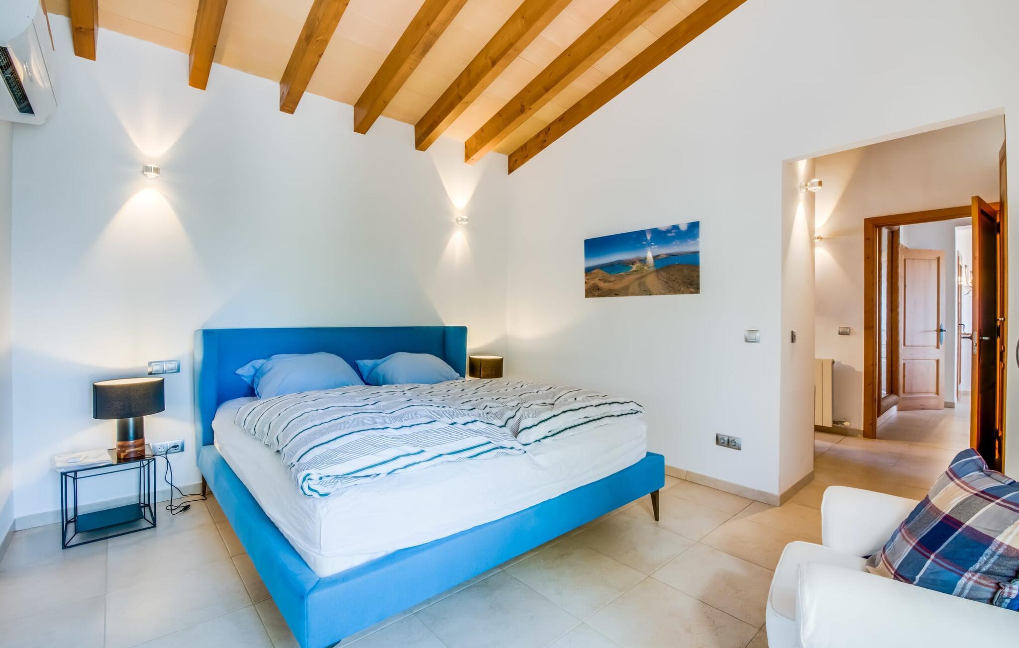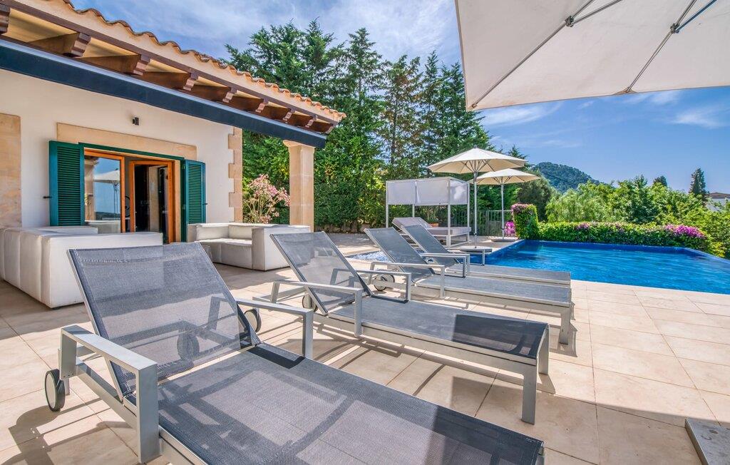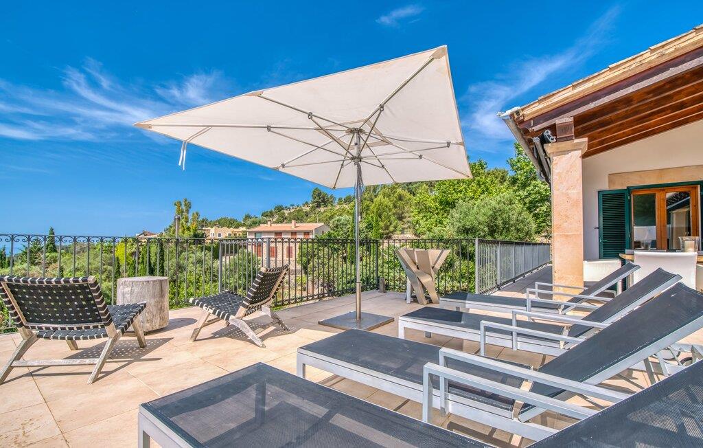 Villaen "Casa de Sa Tanca" er betagende i ordets sandeste betydning. Fordi bjergskråningens beliggenhed i ejendommens terrassekompleks midt i Tramuntana-bjergene giver jer en majestætisk følelse og en betagende udsigt. Udsigten strækker sig til Santa Ponsa og havet. Så I kan nyde den fjerne udsigt fra den afslappet friske pool og føle jer kærtegnet af Middelhavets bjergflora på trods af nogle nabovillaer. Efter jeres bad kan I nyde det behagelige klima og den blide lyd fra klokkerne fra de fritgående bjerggeder. Da det skønne feriehus er helt sydvendt, kan I også nyde denne betagende smukke udsigt fra det afslappede loungeområde. Den udendørs spiseplads er placeret under den overdækkede del af terrassen. I kan spise der når som helst på dagen, hvilket er yderst attraktivt både om morgenen og med en lækker BBQ om aftenen. Et løbebånd er tilgængeligt for jeres sportslige ambitioner. Hvis I kan lide udfordringer i naturen, kan I tage på vandre- eller cykeltur gennem bjergene i Tramuntana World Heritage Site - anstrengende, men spændende på samme tid. Alle værelser i den smagfuldt indrettede mallorcanske drømmevilla nyder godt af sydorienteringen. Også her er bjergbeliggenheden absolut fordelagtig, da både den åbne opholds- og spiseafdeling inklusiv køkken samt hovedparten af soveværelserne har udgang i stueplan til det brolagte terrasselandskab. Villaens indretningsstil er en smuk blanding af landsted og moderne purisme. Design og funktion går hånd i hånd i dette elegante, men hyggelige familiehjem. Komfort omfatter et fuldt udstyret køkken-alrum, en hyggelig pejs og et smart-tv i opholdsområdet samt de fuldt klimatiserede soveværelser med dobbeltsenge. Da hvert soveværelse har sit eget badeværelse i moderne design, kan otte voksne komfortabelt tilbringe en afslappende ferie sammen. Til opvarmning og varmtvandsforberedelse er huset for nylig udstyret med en ny luft-vand varmepumpe, som er centralt styret i varmetilstand via termostat i spisestuen. De enkelte rum kan justeres individuelt ved hjælp af termostater på radiatorerne. Det ekstra installerede solcelleanlæg med batterilager til at generere elektricitet og varmepumpen har gjort huset endnu mere bæredygtigt. "Casa de Sa Tanca", som kan lejes hele året rundt, lader intet tilbage at ønske og imponerer med sine høje standarder for beliggenhed og design. Simpelthen fantastisk – og alligevel inden for jeres rækkevidde! Den moderne poolvilla "Casa de Sa Tanca" med sin fascinerende beliggenhed på en bjergskråning ligger midt i Tramuntana-bjergene. Den fredelige landsby Galilea tilbyder et perfekt tilflugtssted, men er kun omkring en halv time fra Palma. Det skønne feriehus har en førsteklasses beliggenhed i en urbanisering nær byens centrum. I Galilea kan I stoppe ved to lokale restauranter eller tapasbarer. For at shoppe ligger Puigpunyent omkring 4 km væk. Til markedet skal I gå til Calvià, Andratx eller andre smukke bjerglandsbyer. Køreturen til sandstrandene i den vestlige del af øen tager omkring 30 minutter.