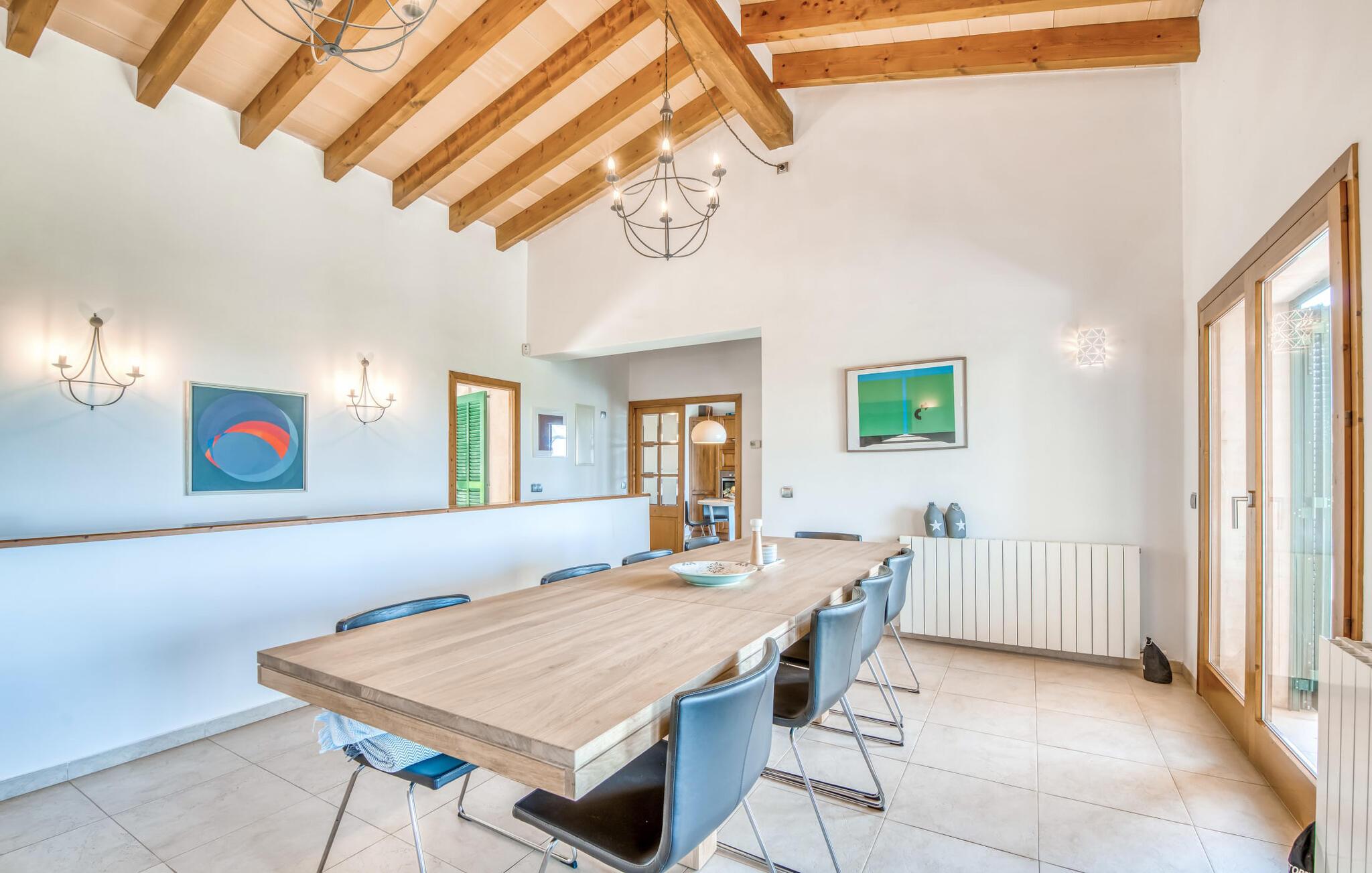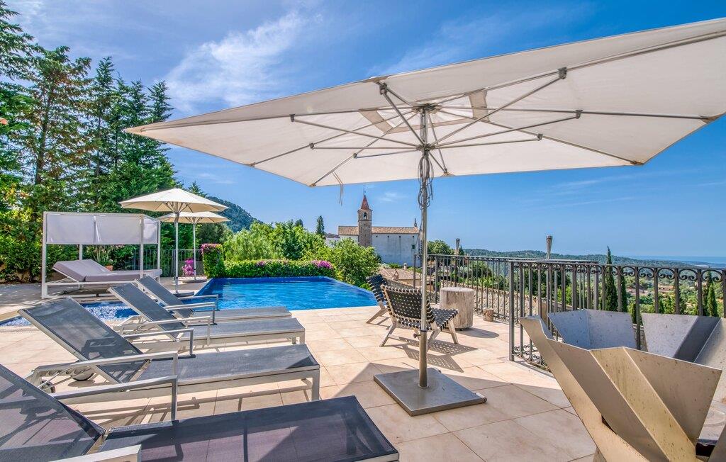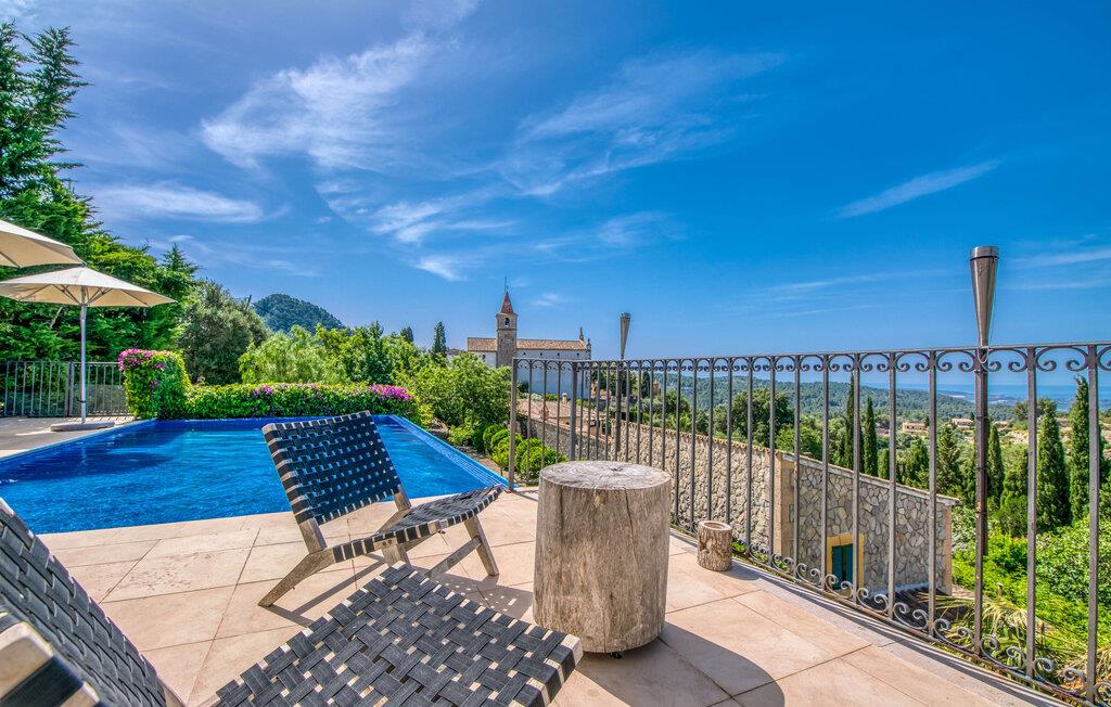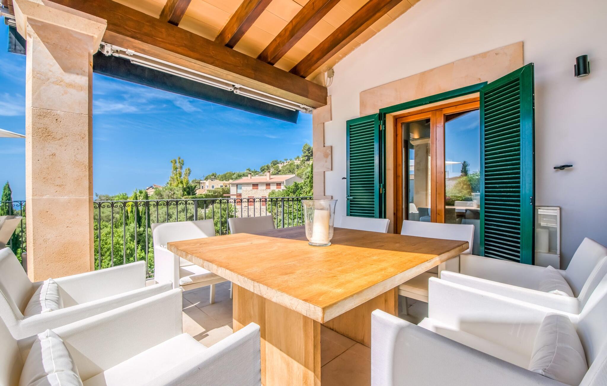 Villaen "Casa de Sa Tanca" er betagende i ordets sandeste betydning. Fordi bjergskråningens beliggenhed i ejendommens terrassekompleks midt i Tramuntana-bjergene giver jer en majestætisk følelse og en betagende udsigt. Udsigten strækker sig til Santa Ponsa og havet. Så I kan nyde den fjerne udsigt fra den afslappet friske pool og føle jer kærtegnet af Middelhavets bjergflora på trods af nogle nabovillaer. Efter jeres bad kan I nyde det behagelige klima og den blide lyd fra klokkerne fra de fritgående bjerggeder. Da det skønne feriehus er helt sydvendt, kan I også nyde denne betagende smukke udsigt fra det afslappede loungeområde. Den udendørs spiseplads er placeret under den overdækkede del af terrassen. I kan spise der når som helst på dagen, hvilket er yderst attraktivt både om morgenen og med en lækker BBQ om aftenen. Et løbebånd er tilgængeligt for jeres sportslige ambitioner. Hvis I kan lide udfordringer i naturen, kan I tage på vandre- eller cykeltur gennem bjergene i Tramuntana World Heritage Site - anstrengende, men spændende på samme tid. Alle værelser i den smagfuldt indrettede mallorcanske drømmevilla nyder godt af sydorienteringen. Også her er bjergbeliggenheden absolut fordelagtig, da både den åbne opholds- og spiseafdeling inklusiv køkken samt hovedparten af soveværelserne har udgang i stueplan til det brolagte terrasselandskab. Villaens indretningsstil er en smuk blanding af landsted og moderne purisme. Design og funktion går hånd i hånd i dette elegante, men hyggelige familiehjem. Komfort omfatter et fuldt udstyret køkken-alrum, en hyggelig pejs og et smart-tv i opholdsområdet samt de fuldt klimatiserede soveværelser med dobbeltsenge. Da hvert soveværelse har sit eget badeværelse i moderne design, kan otte voksne komfortabelt tilbringe en afslappende ferie sammen. Til opvarmning og varmtvandsforberedelse er huset for nylig udstyret med en ny luft-vand varmepumpe, som er centralt styret i varmetilstand via termostat i spisestuen. De enkelte rum kan justeres individuelt ved hjælp af termostater på radiatorerne. Det ekstra installerede solcelleanlæg med batterilager til at generere elektricitet og varmepumpen har gjort huset endnu mere bæredygtigt. "Casa de Sa Tanca", som kan lejes hele året rundt, lader intet tilbage at ønske og imponerer med sine høje standarder for beliggenhed og design. Simpelthen fantastisk – og alligevel inden for jeres rækkevidde! Den moderne poolvilla "Casa de Sa Tanca" med sin fascinerende beliggenhed på en bjergskråning ligger midt i Tramuntana-bjergene. Den fredelige landsby Galilea tilbyder et perfekt tilflugtssted, men er kun omkring en halv time fra Palma. Det skønne feriehus har en førsteklasses beliggenhed i en urbanisering nær byens centrum. I Galilea kan I stoppe ved to lokale restauranter eller tapasbarer. For at shoppe ligger Puigpunyent omkring 4 km væk. Til markedet skal I gå til Calvià, Andratx eller andre smukke bjerglandsbyer. Køreturen til sandstrandene i den vestlige del af øen tager omkring 30 minutter.