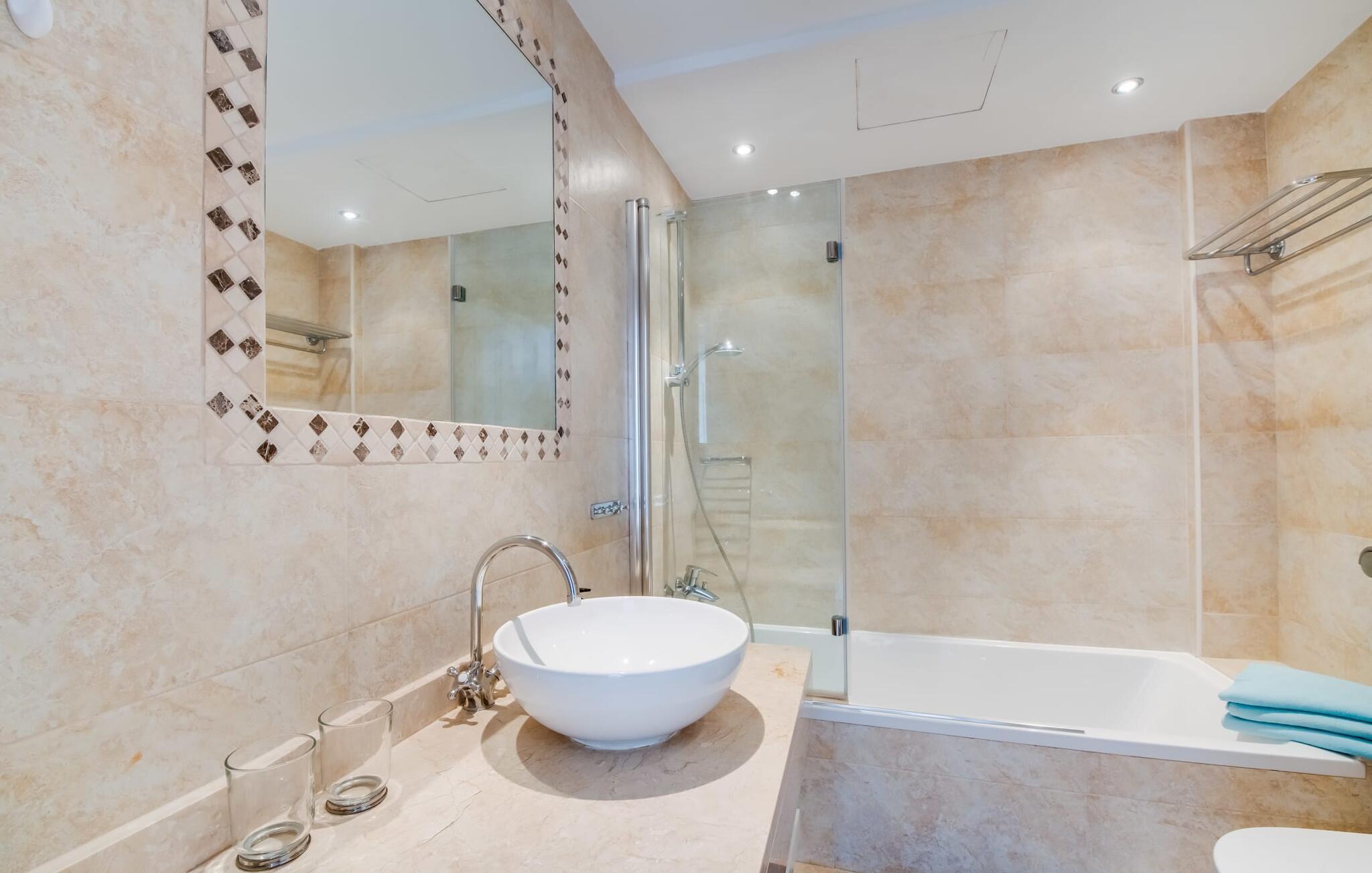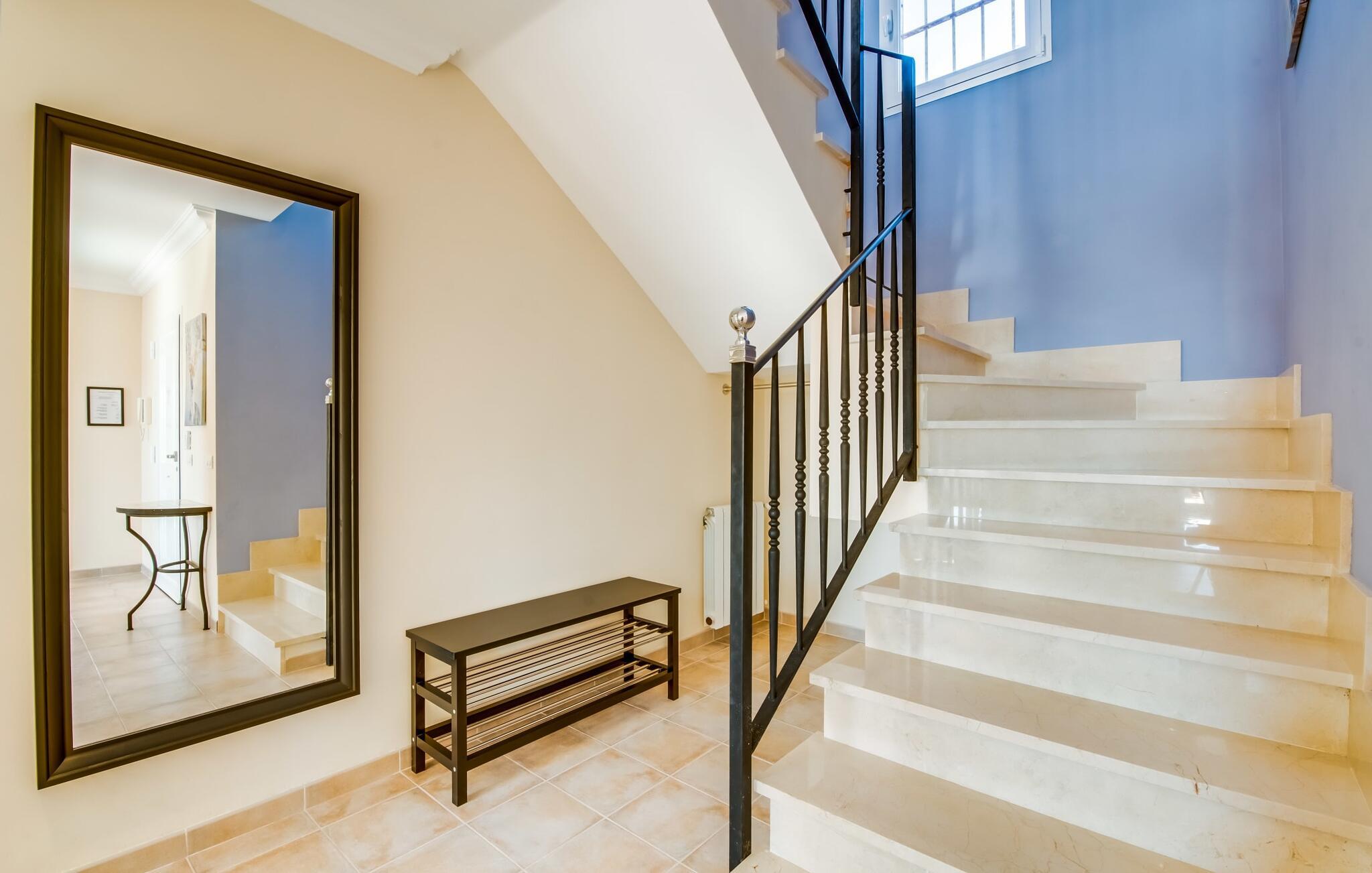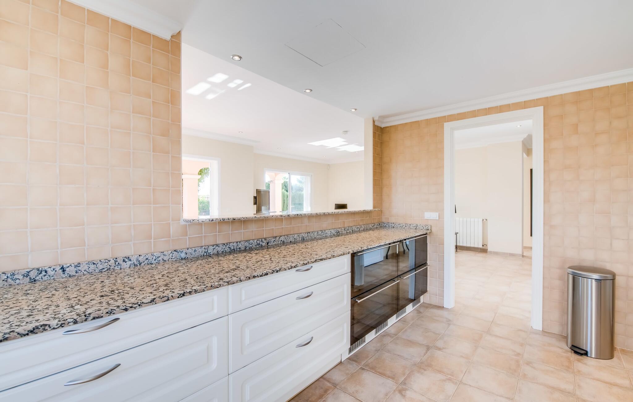 Udkanten af landsbyen. Tæt på stranden. Pool. Tre ønsker, der står øverst på nogle feriegæsters ønskeliste. En sydlig eksponering, god infrastruktur og et nutidigt, moderne design står også på nogle ønskelister. Villaen "Casa Estela" har ingen problemer med nogen af disse punkter - tværtimod rummer den dem alle uden problemer! Haven, omgivet af kvarteret og alligevel helt privat, byder med sin velholdte atmosfære på yderst attraktive rammer for længerevarende ophold under den mallorcanske himmel. Superkomfortable liggestole og daybeds inviterer jer til at tilbringe et par timer mere udenfor og få mest muligt ud af jeres fritid. Hvis det bliver for varmt, vil poolen dekoreret med blå mosaiksten køle jer ned, og I kan nemt glide ned i vandet via de romerske trappetrin. Den praktiske udendørsbruser kan også bruges til kortvarig afkøling. På verandaen kan I sidde med stil enten i den smarte lounge eller ved spisebordet, hvor morgenmaden med garanti vil være lækker og I også kan nyde en kulinarisk grillaften. I er endnu tættere på himlen på altanen og tagterrassen. Fra verandaen er der adgang til husets indre gennem flere gulv-til-loft vinduer, som lukker masser af middelhavslys ind. En stor stue-spisestue imponerer med sin rummelighed og omhyggeligt og harmonisk afstemte møbler, som effektivt suppleres af dekorative individuelle stykker. Køkkenet, som i øvrigt er rummeligt, er halvåbent med en luge og har naturligvis alt hvad I skal bruge til komplet selvforplejning. Det omfattende udstyr inkluderer endda et vinkøleskab! På denne stueplan er der også et hyggeligt soveværelse med dobbeltseng og et badeværelse. Yderligere to soveværelser, hvoraf det ene er perfekt til ledsagende børn, er placeret ovenpå med udgang til altan og tagterrasse, samt et andet badeværelse. Den smukke villa “Casa Estela” ligger på en velholdt grund på næsten 800 m², ikke langt fra havnen og havet på Mallorcas sydkyst. I bor her i udkanten, i en blind vej, og kan hurtigt nå flere skønne strande, herunder Platja de Sa Rapita eller Racó de s'Arena. Butikker og restauranter ligger inden for gåafstand. Den lille by Campos er omkring 15 minutter væk i bil. Der vil I finde et bageri og andre supermarkeder. Bemærk venligst, at denne ejendom ikke accepterer ungdomsgrupper eller polterabender. En ungdomsgruppe på denne ejendom består af personer under 30 år. Book ikke denne ejendom, hvis I er en ungdomsgruppe eller polterabend, da jeres reservation vil blive afvist, når den er booket, hvilket også kan være tilfældet ved ankomst til ejendommen eller under jeres ophold, og I vil ikke modtage en refusion. El, aircondition og varme er inkluderet i lejeprisen, hvis forbruget er rimeligt. I sjældne tilfælde vil I blive opkrævet gebyret kontant på stedet.