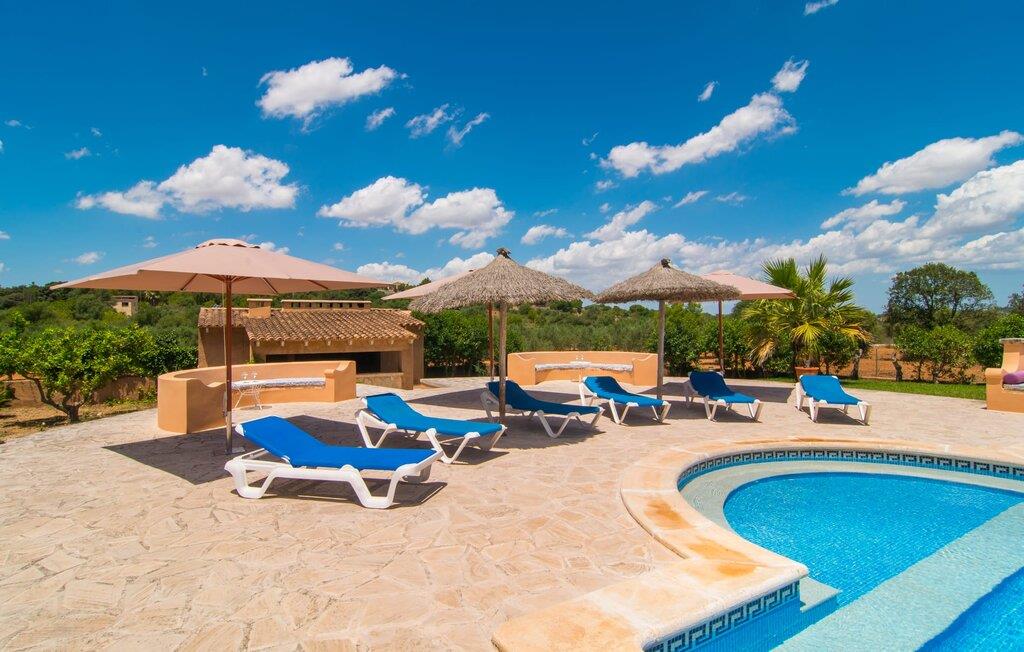 Din elegante, komfortable villa "Casa Fina" med sit varme sandstenslook kan med sikkerhed tælles blandt landejendommestyperne. Med sit tårn udstråler den typisk mallorcinsk charme. En velholdt indkørsel fører til huset, foran hvilken der nemt kan parkeres flere biler. På den anden side er den omfattende, kærligt anlagte have med pool. Omgivet af appelsintræer og palmer kan I slappe af på liggestolen eller de komfortable puder omkring poolen. Slap af på den luftige, skyggefulde terrasse ved huset, hvor lyse lilla bougainvilleaer vokser, eller spil et spil bordtennis. Det hyggelige udekøkken med grill og stort spisebord har til huse i et lille åbent stenhus og er oplagt til at grille på dejligt varme, uendelige sommeraftener. Inde i jeres villa finder I en smagfuld blanding af muntre, lyse hvide og rustikke træmøbler. Stilfulde rundbuer i stedet for døre forbinder de enkelte rum og formidler en luftig rumfølelse. En rustik vindeltrappe fører fra indgangspartiet til tårnet. Her finder I et af dobbeltværelserne med eget badeværelse. Den hyggelige stue i stueetagen med pejs og stort fladskærms-tv støder direkte op til det moderne, fuldt udstyrede køkken. Indrettet i et hvidt farveskema med et lille bord, ideelt som opbevaringsbakke eller til den første morgenmad, flyder det ind i spisestuen, hvor et stort træbord inviterer til fest. På denne etage er der et af badeværelserne med bruser, gæstetoilet og yderligere tre soveværelser med dobbeltsenge. I en mesterlig blanding af gammelt og nyt er alle værelser smagfuldt indrettede med sans for detaljer. Praktiske indbyggede skabe giver nok opbevaringsplads til jeres feriebagage. Yderligere to værelser, hver med eget badeværelse, ligger direkte ved siden af hovedhuset i en separat bygning. Ideel til en ferie med den (udvidede) familie eller venner. Hvilket panorama! Fra jeres rustikke villa "Casa Fina" i sydøst kan I nyde en overvældende udsigt over de omkringliggende bakker og den 500 m høje Puig de Sant Salvador, som klostret af samme navn ligger på. Den nærliggende landevej fører jer til den blomstrende by Felanitx, som tilbyder alt hvad I behøver til jeres villaferie, herunder supermarkeder, apoteker og restauranter, inden for 5 minutter i bil. De smukke strande i Cala Murada, Cala Tropicana eller Cala Marçal ligger mindre end 13 km væk. Som en kærkommen måde at køle af på varme dage er de mystiske dragehuler, Cuevas del Drach nær Porto Colom, altid et besøg værd: et imponerende system af underjordiske drypsten og undervandshuler.