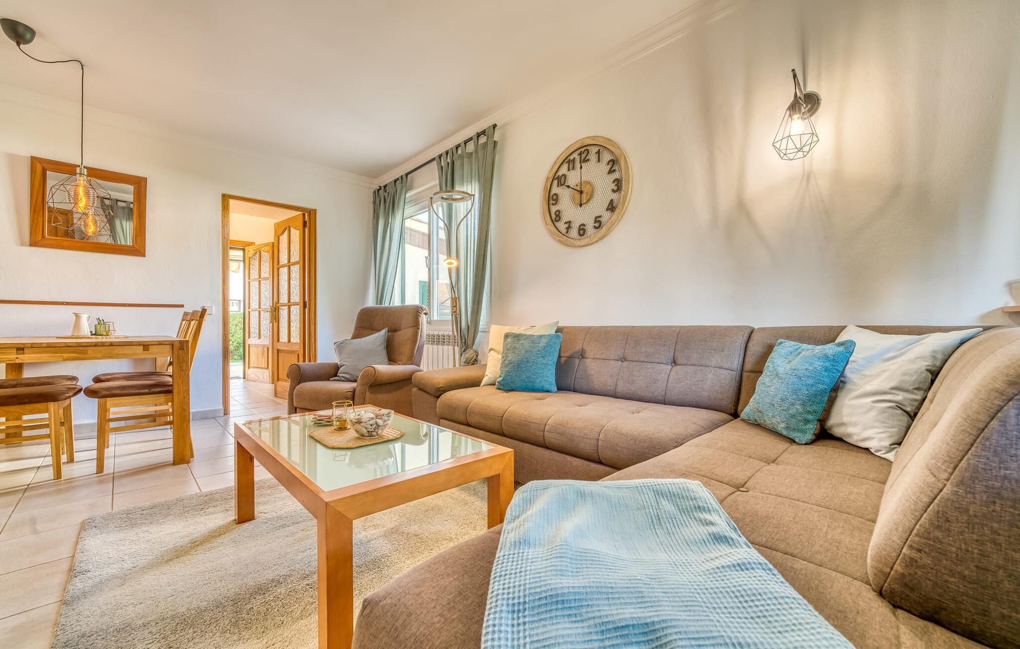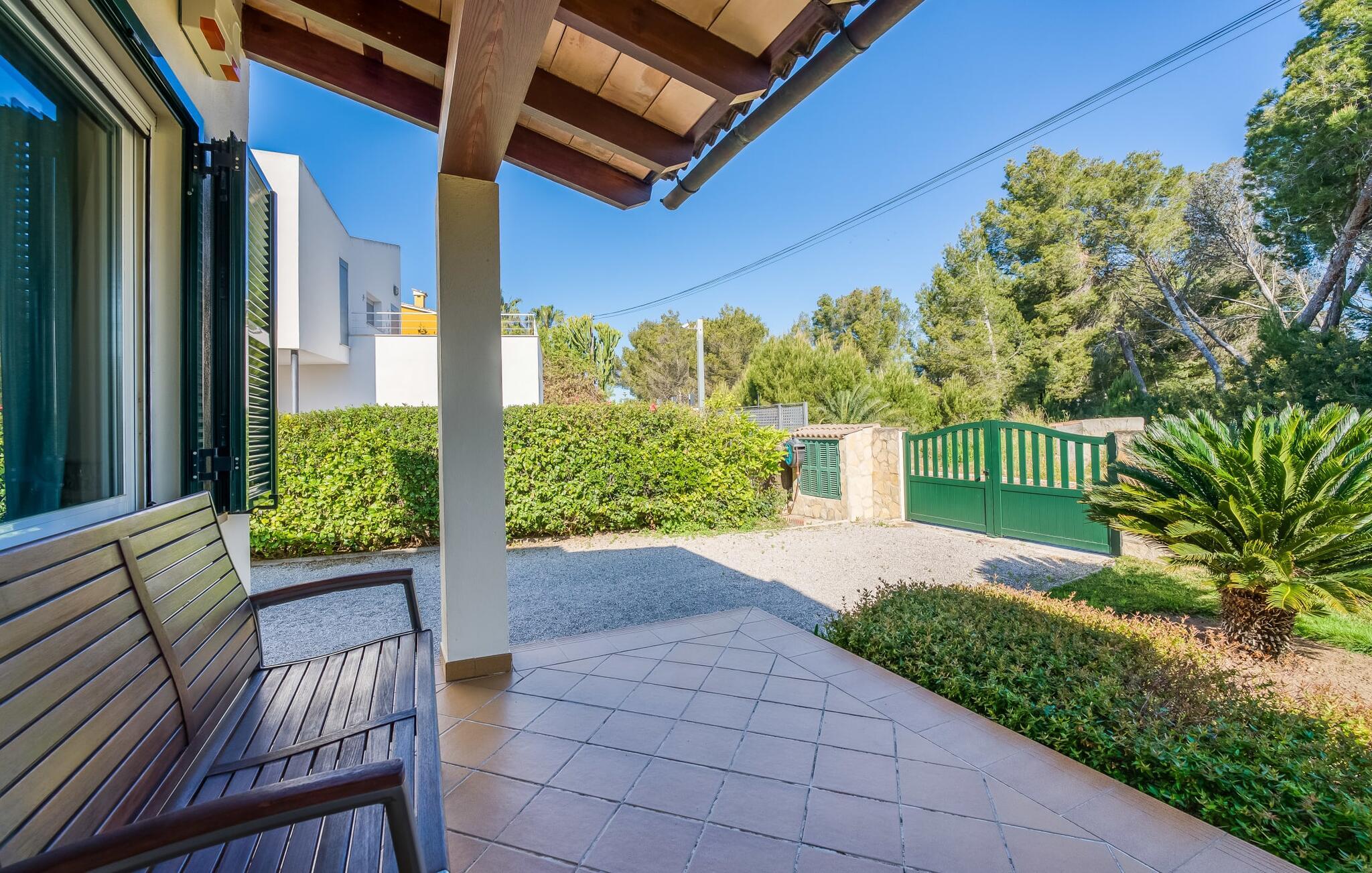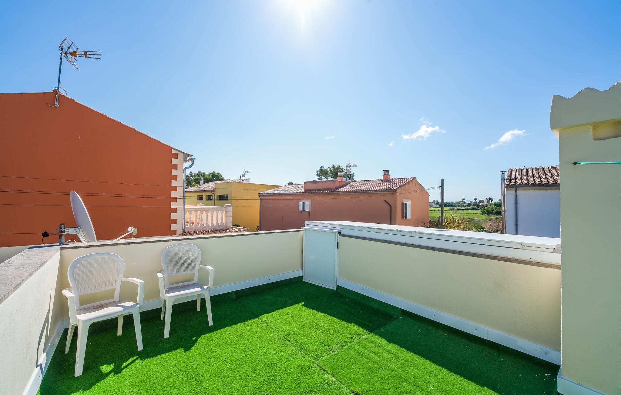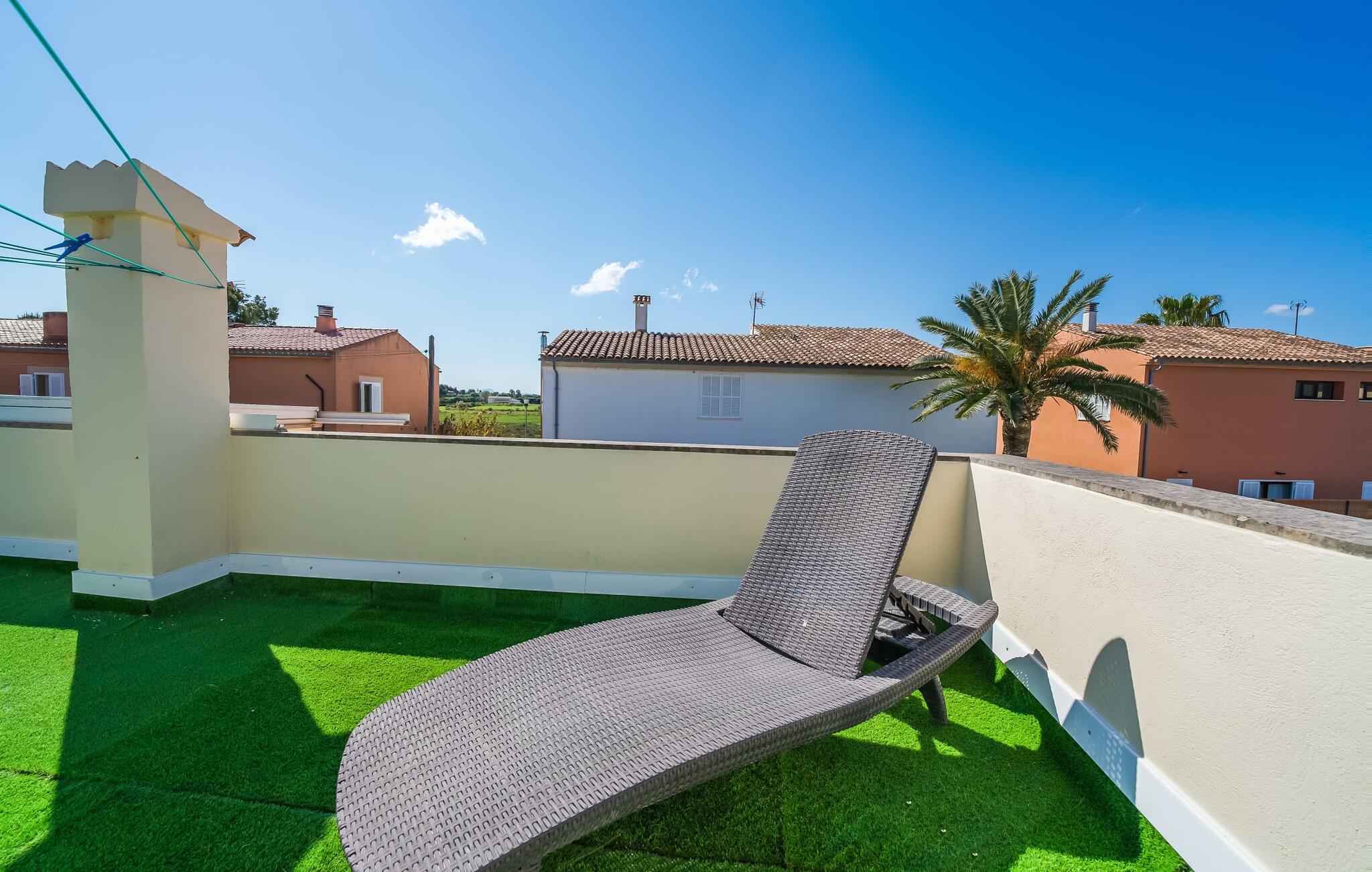 Oplev villaen "Casa Kerchner" med os, som tilbyder perfekt udstyret ferieindkvartering til en familie eller to par. I en velholdt urbanisering, mellem middelhavskrukkeplanter og en smukt anlagt forhave, kan I nyde alt, hvad I kan ønske jer på ferien på Mallorca: en pool med udendørs bruser, en overdækket og en tagterrasse samt en muret grill til en afkølet grill. Soldyrkere vil finde deres yndlingssted på de komfortable liggestole. På trods af den urbane atmosfære i udkanten af middelalderens Alcúdia, kan I nyde den typiske mallorcanske ro i dette smukke feriehus. Om aftenen kan I slappe af på tagterrassen med udsigt over kvarteret og drømme om stjernehimlen. Den hyggelige villa inviterer også til at drømme i de to dobbeltværelser med masser af opbevaringsplads. At have det godt er fuldt ud muligt i et moderne interiør, der emmer af afslappethed. Fra terrassen kommer I direkte ind i det fuldt udstyrede køkken. I har valget mellem den udendørs spiseplads på verandaen eller den kombinerede opholds- og spiseplads. Gør dette afhængigt af jeres humør og årstiden. Med varme, aircondition og godt internet er villaen "Casa Kerchner" velegnet til en helårsferie eller endda en "arbejds-ation". Mellem de to soveværelser er det smarte brusebadeværelse med bruser fra gulv til loft. Samlet set imponerer ferieboligen med lyse rum og en gennemtænkt planløsning. Velkommen til en afslappende ferie i Alcúdia og villaen "Casa Kerchner". "Casa Kerchner" med sin smukke have, pool, grill og tagterrasse tilbyder feriegæster alt, hvad de kan ønske sig på Mallorca. Feriehuset ligger i en bygd nær Alcúdia, hvorfra I kan gøre jeres dagligvarer eller shoppe tøj og souvenirs. De store strande i bugten Alcúdia eller Pollença er kun fem minutters kørsel væk.