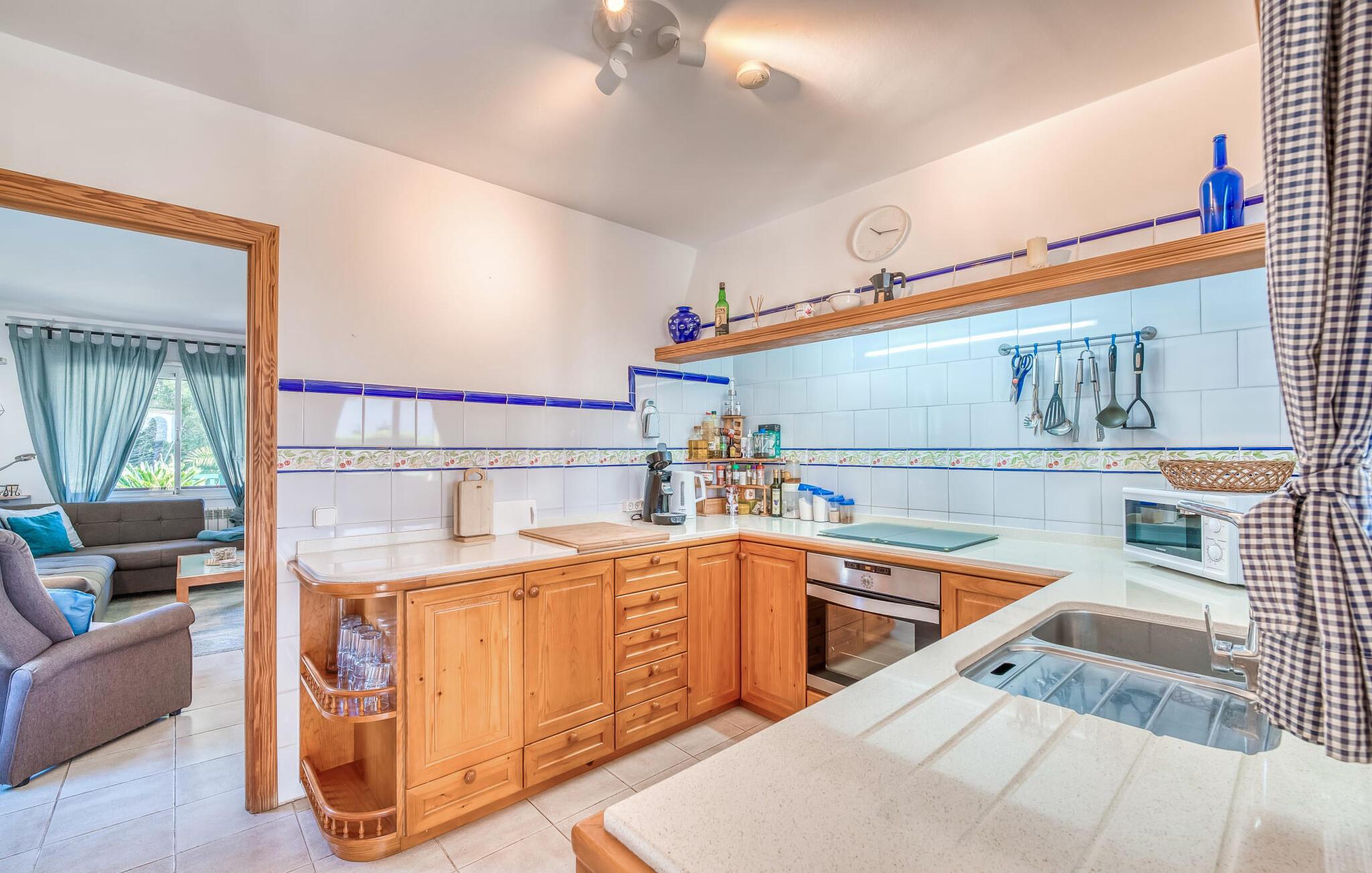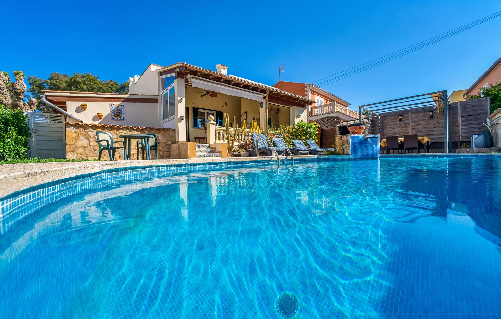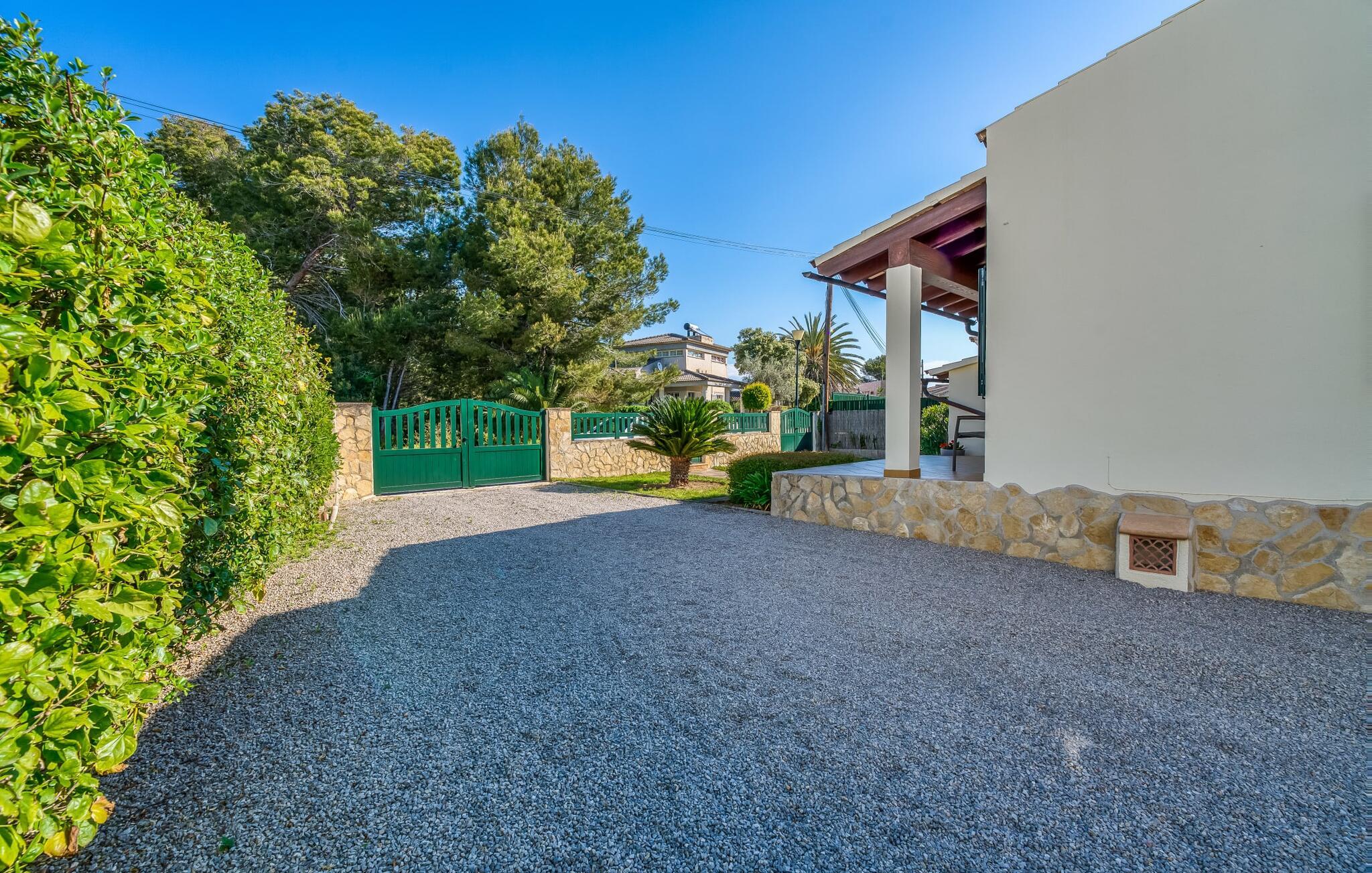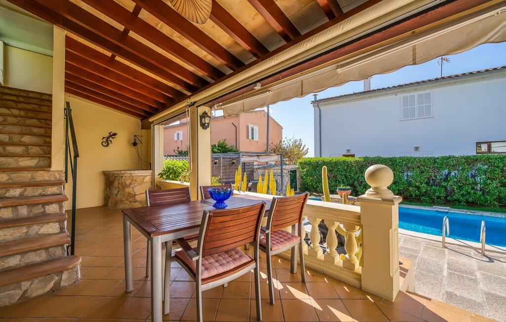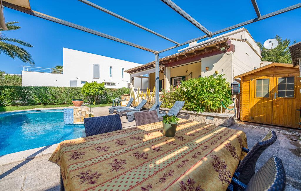 Oplev villaen "Casa Kerchner" med os, som tilbyder perfekt udstyret ferieindkvartering til en familie eller to par. I en velholdt urbanisering, mellem middelhavskrukkeplanter og en smukt anlagt forhave, kan I nyde alt, hvad I kan ønske jer på ferien på Mallorca: en pool med udendørs bruser, en overdækket og en tagterrasse samt en muret grill til en afkølet grill. Soldyrkere vil finde deres yndlingssted på de komfortable liggestole. På trods af den urbane atmosfære i udkanten af middelalderens Alcúdia, kan I nyde den typiske mallorcanske ro i dette smukke feriehus. Om aftenen kan I slappe af på tagterrassen med udsigt over kvarteret og drømme om stjernehimlen. Den hyggelige villa inviterer også til at drømme i de to dobbeltværelser med masser af opbevaringsplads. At have det godt er fuldt ud muligt i et moderne interiør, der emmer af afslappethed. Fra terrassen kommer I direkte ind i det fuldt udstyrede køkken. I har valget mellem den udendørs spiseplads på verandaen eller den kombinerede opholds- og spiseplads. Gør dette afhængigt af jeres humør og årstiden. Med varme, aircondition og godt internet er villaen "Casa Kerchner" velegnet til en helårsferie eller endda en "arbejds-ation". Mellem de to soveværelser er det smarte brusebadeværelse med bruser fra gulv til loft. Samlet set imponerer ferieboligen med lyse rum og en gennemtænkt planløsning. Velkommen til en afslappende ferie i Alcúdia og villaen "Casa Kerchner". "Casa Kerchner" med sin smukke have, pool, grill og tagterrasse tilbyder feriegæster alt, hvad de kan ønske sig på Mallorca. Feriehuset ligger i en bygd nær Alcúdia, hvorfra I kan gøre jeres dagligvarer eller shoppe tøj og souvenirs. De store strande i bugten Alcúdia eller Pollença er kun fem minutters kørsel væk.