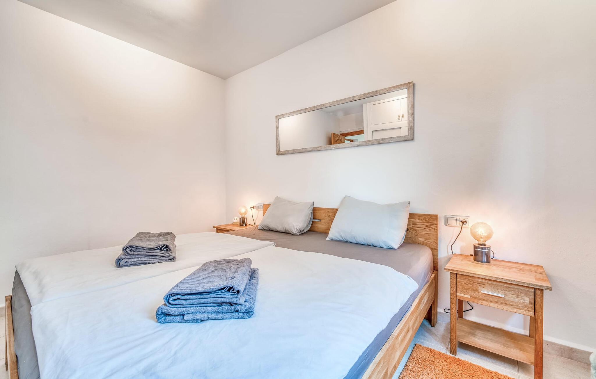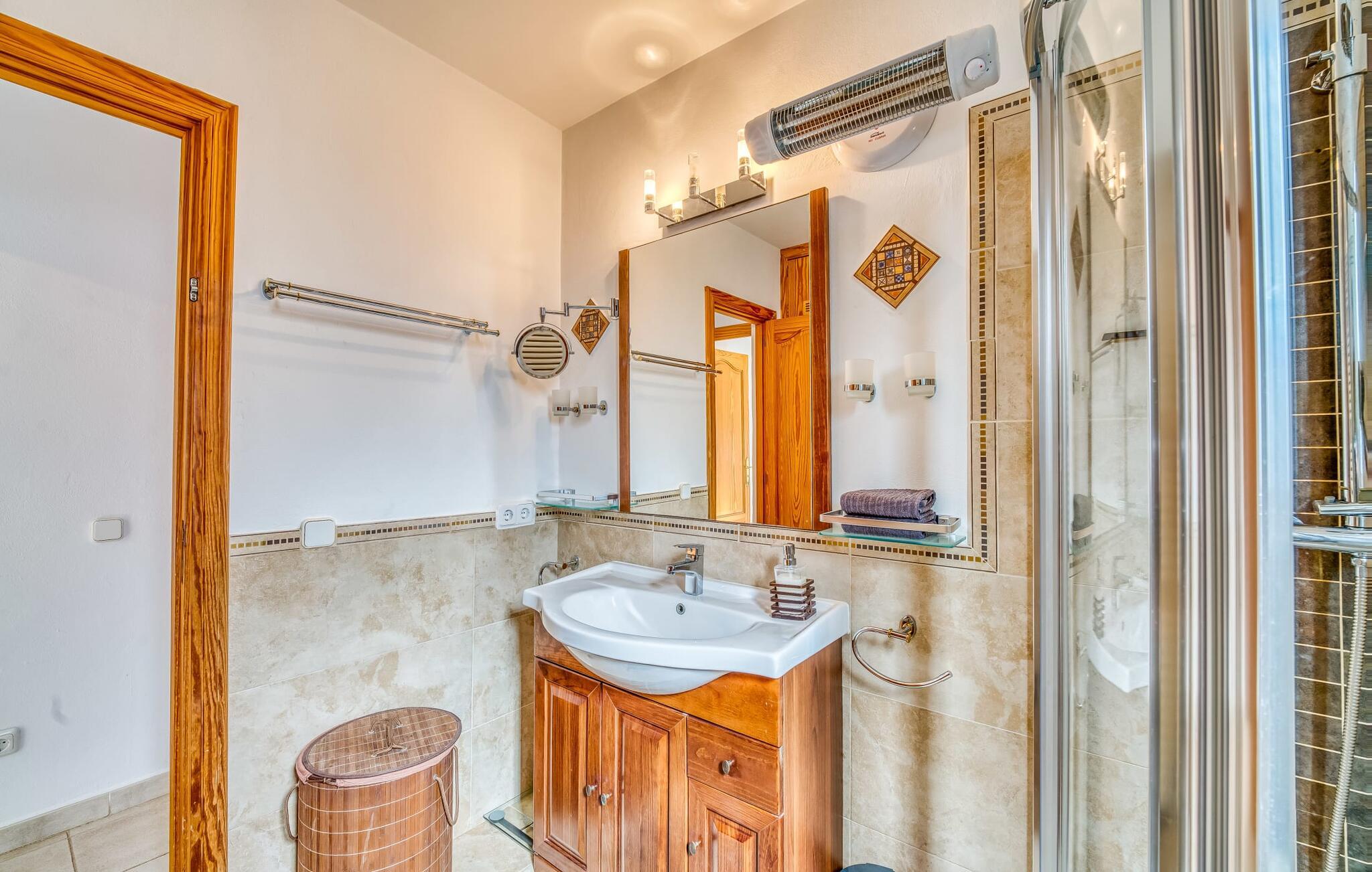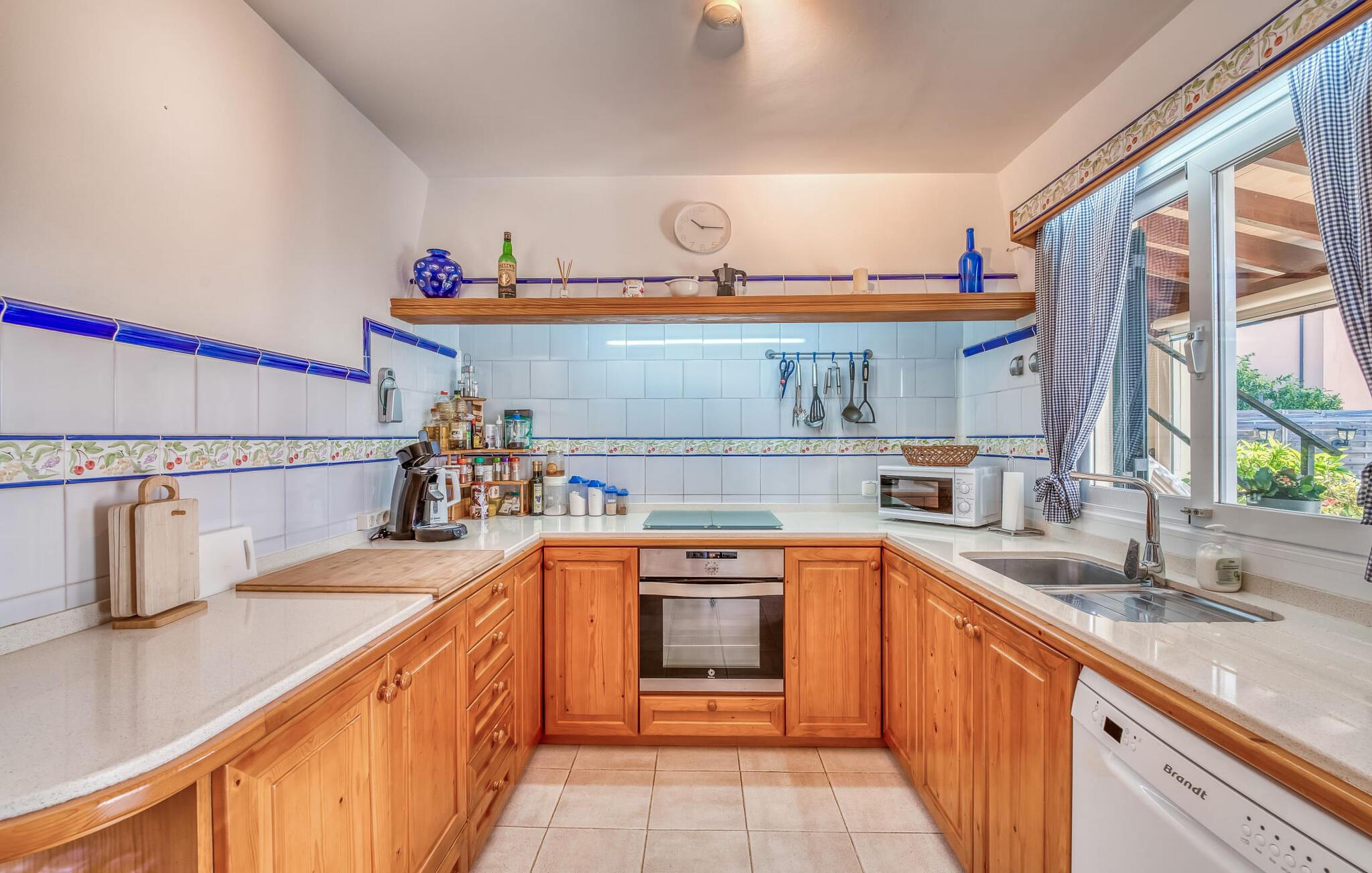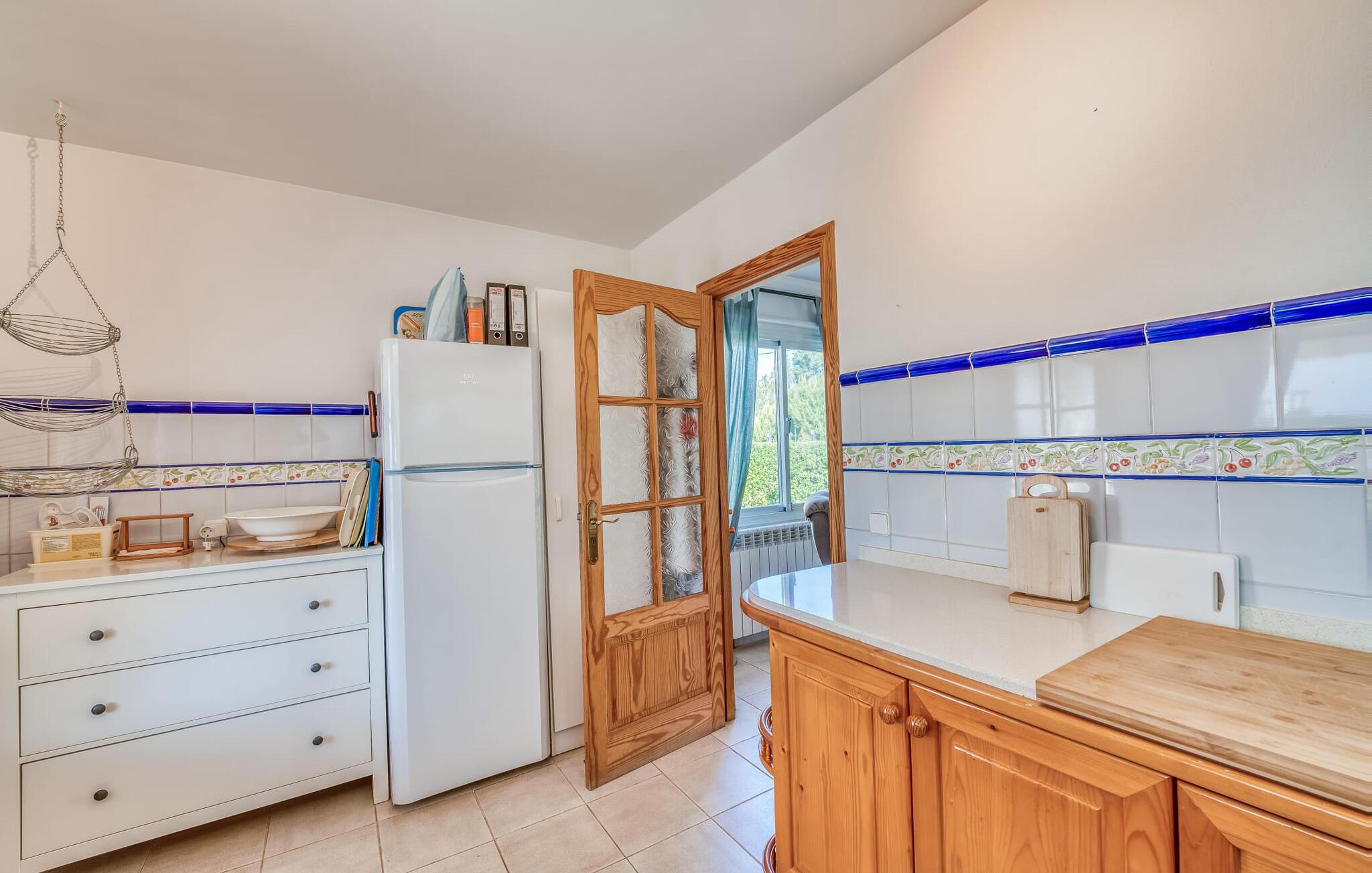 Oplev villaen "Casa Kerchner" med os, som tilbyder perfekt udstyret ferieindkvartering til en familie eller to par. I en velholdt urbanisering, mellem middelhavskrukkeplanter og en smukt anlagt forhave, kan I nyde alt, hvad I kan ønske jer på ferien på Mallorca: en pool med udendørs bruser, en overdækket og en tagterrasse samt en muret grill til en afkølet grill. Soldyrkere vil finde deres yndlingssted på de komfortable liggestole. På trods af den urbane atmosfære i udkanten af middelalderens Alcúdia, kan I nyde den typiske mallorcanske ro i dette smukke feriehus. Om aftenen kan I slappe af på tagterrassen med udsigt over kvarteret og drømme om stjernehimlen. Den hyggelige villa inviterer også til at drømme i de to dobbeltværelser med masser af opbevaringsplads. At have det godt er fuldt ud muligt i et moderne interiør, der emmer af afslappethed. Fra terrassen kommer I direkte ind i det fuldt udstyrede køkken. I har valget mellem den udendørs spiseplads på verandaen eller den kombinerede opholds- og spiseplads. Gør dette afhængigt af jeres humør og årstiden. Med varme, aircondition og godt internet er villaen "Casa Kerchner" velegnet til en helårsferie eller endda en "arbejds-ation". Mellem de to soveværelser er det smarte brusebadeværelse med bruser fra gulv til loft. Samlet set imponerer ferieboligen med lyse rum og en gennemtænkt planløsning. Velkommen til en afslappende ferie i Alcúdia og villaen "Casa Kerchner". "Casa Kerchner" med sin smukke have, pool, grill og tagterrasse tilbyder feriegæster alt, hvad de kan ønske sig på Mallorca. Feriehuset ligger i en bygd nær Alcúdia, hvorfra I kan gøre jeres dagligvarer eller shoppe tøj og souvenirs. De store strande i bugten Alcúdia eller Pollença er kun fem minutters kørsel væk.