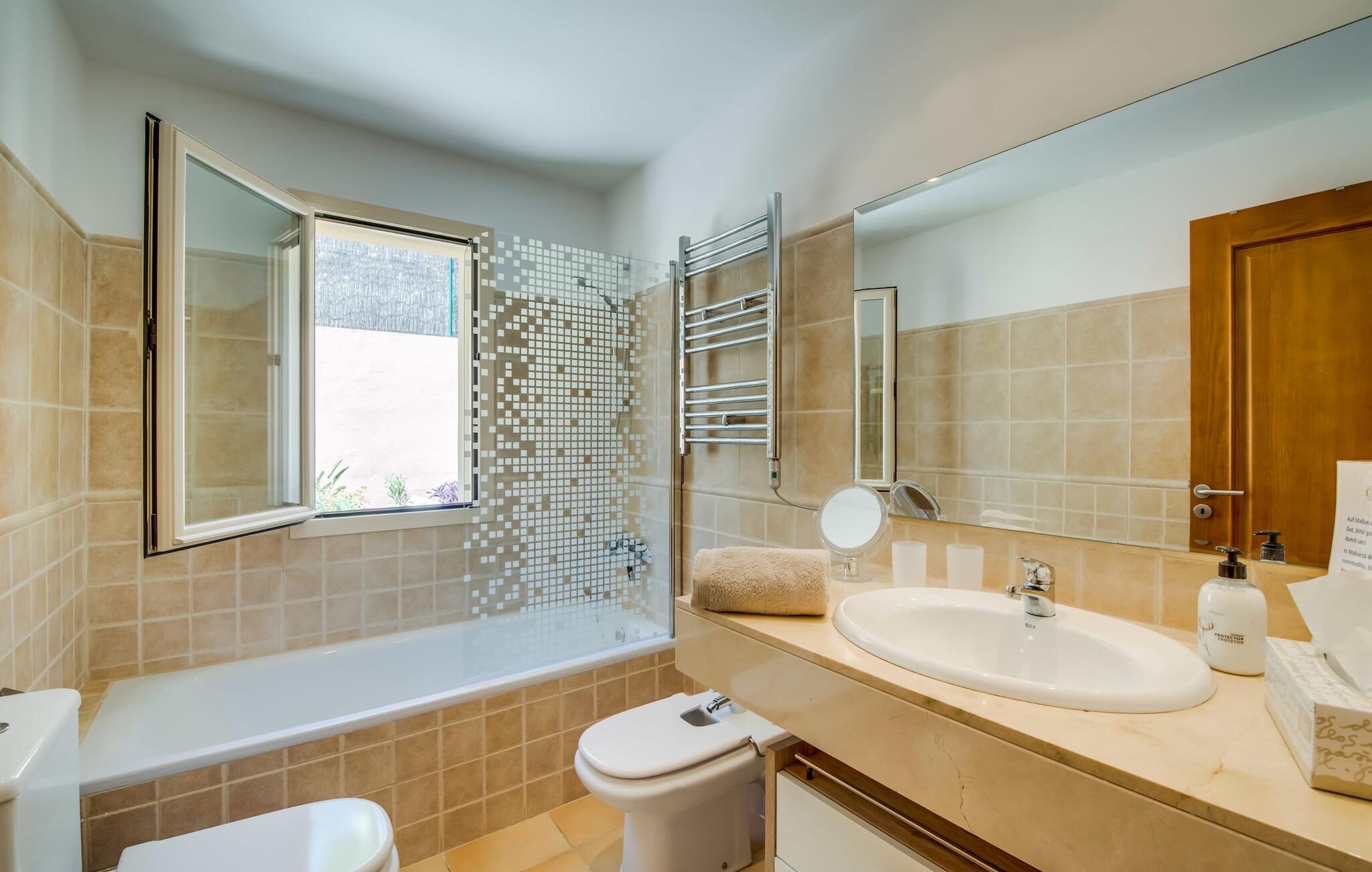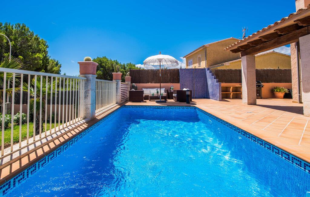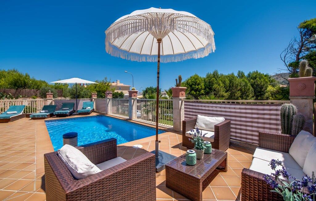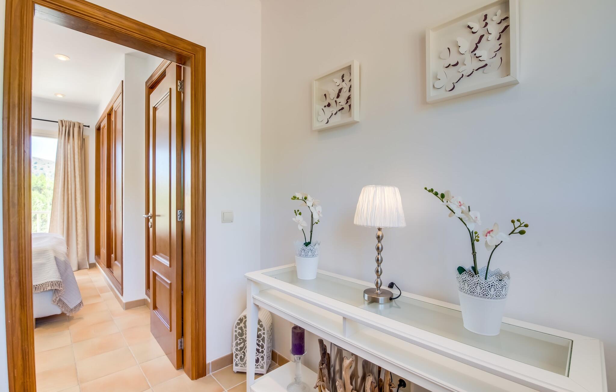 En ferie mellem hav og bjerge – hvor kan I ellers finde det end på Mallorca? Den terracottafarvede villa med den hvide Persiana udstråler den maritime charme af et helt særligt feriehus på vores yndlingsø. Den vidunderlige udsigt over Llevant-bjergene og den samtidige blide oversvømmelse af Cala Mesquida præger beliggenheden. Udendørsområdet i den to-etagers villa på den østlige del af øen nær Capdepera og Cala Ratjada imponerer også med sin grønne alsidighed. Fordi der er færre naboer, er hele ejendommen vidunderligt privat, så I kan nyde den luksuriøst anlagte grund med en flisebelagt udendørs pool, solterrasse, lounge og liggestole samt det fuldstændigt privatlivsbeskyttede spabad i fred og ro. En grill og en overdækket terrasse på verandaen til det familievenlige, moderne feriehus med maritim karakter fuldender forkælelsesprogrammet. De smukke palmer og den mallorcanske prydfontæne er blot nogle af de detaljer, der giver denne udsøgte mallorcanske villa sin ånd. Den baleariske ånd af lethed afspejles også i strandhusets lyse interiør. Terrassen med polyrattan-spisepladsen er det centrale samlingspunkt, fordi I har direkte adgang til den udendørs spiseplads fra den rummelige stue og spisestue samt det separate køkken. Høje rum, naturlige farver som terracotta og varme trætoner bestemmer karakteren og giver samtidig en nutidig vægtløshed. Moderne teknologi bør dog ikke mangle i det fuldt udstyrede køkken eller i de smarte badeværelser (et med brusekabine en suite på øverste etage og det andet med badekar i stueetagen). De tre klimatiserede soveværelser er tilgængelige for en afslappende nattesøvn. Et af soveværelserne har en lille altan og et walk-in closet. “Casa León de Cala Mesquida” er ideel ikke kun for en eller to familier, men også for en gruppe venner, der ved, at man ikke altid skal vælge mellem hav og bjerge for at få en perfekt ferie på Mallorca. I en fantastisk beliggenhed mellem bjergene og havet, opdag den moderne havudsigt villa "Casa León de Cala Mesquida". Som navnet antyder, ligger den mallorcanske juvel i den idylliske kystby Cala Mesquida på den østlige del af øen. I gåafstand ligger den lille bymidte og sandstranden og havet.