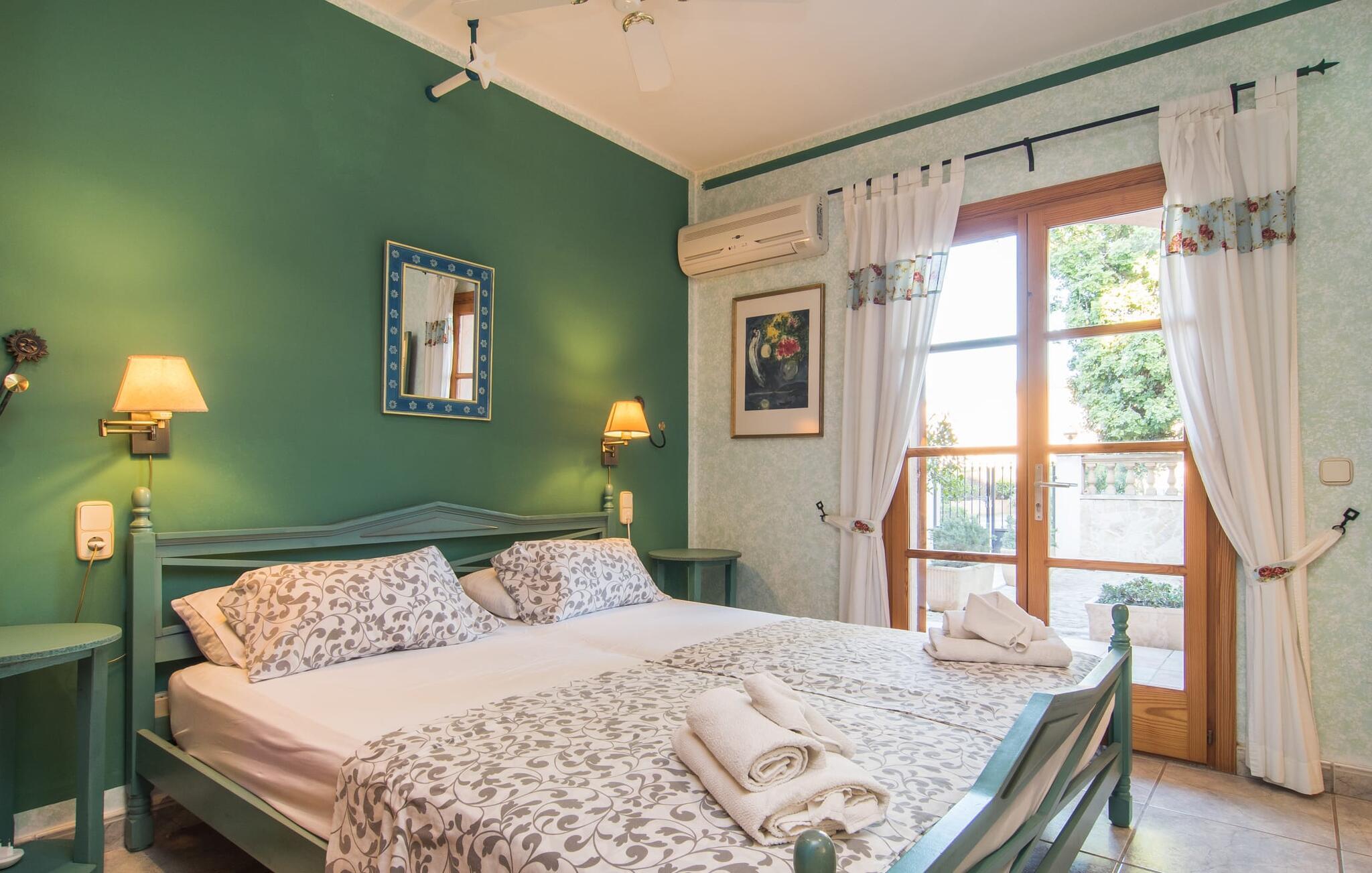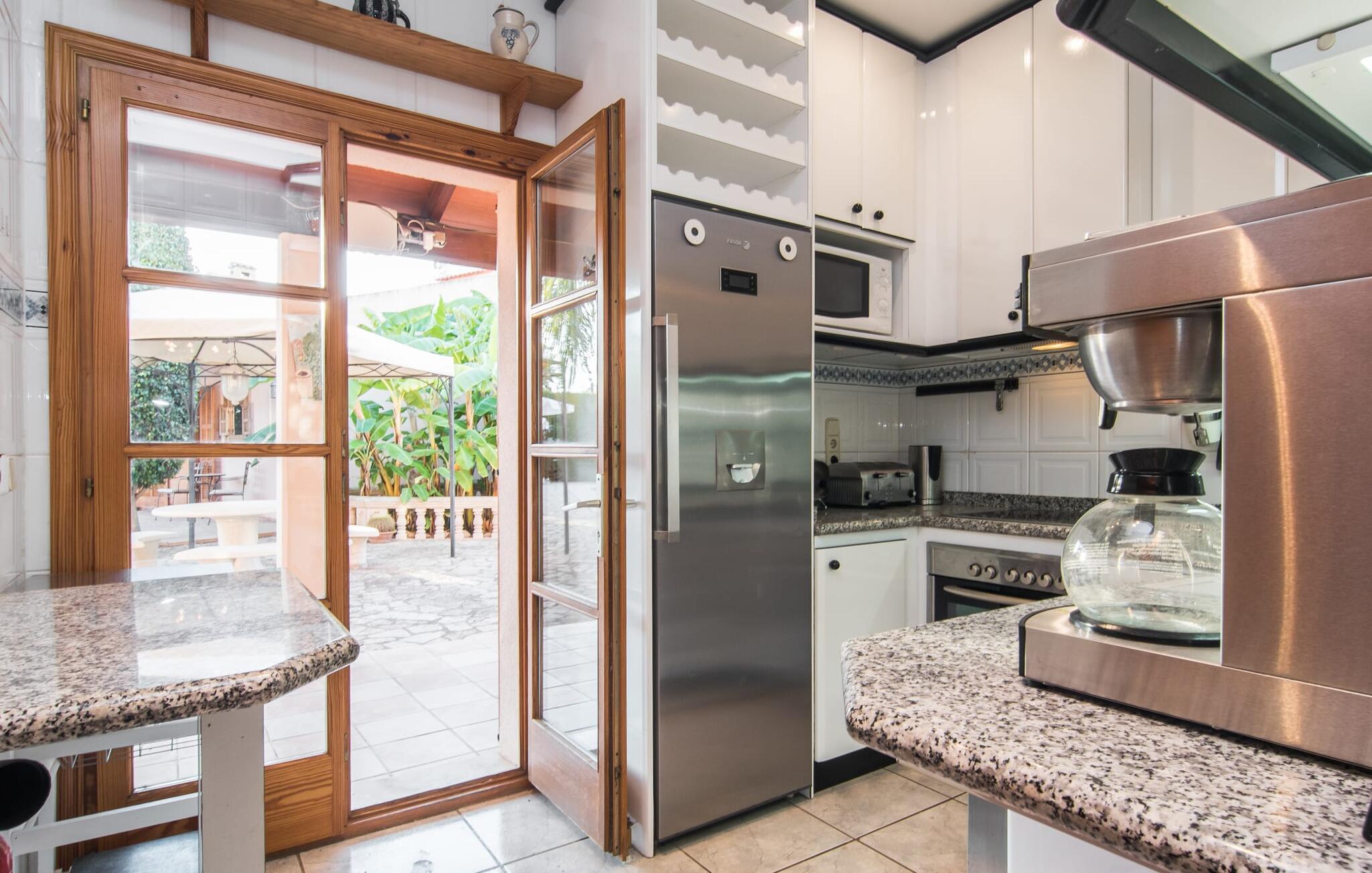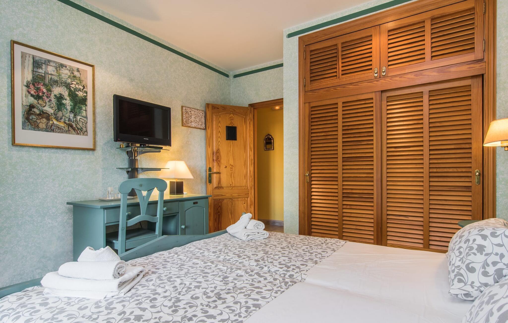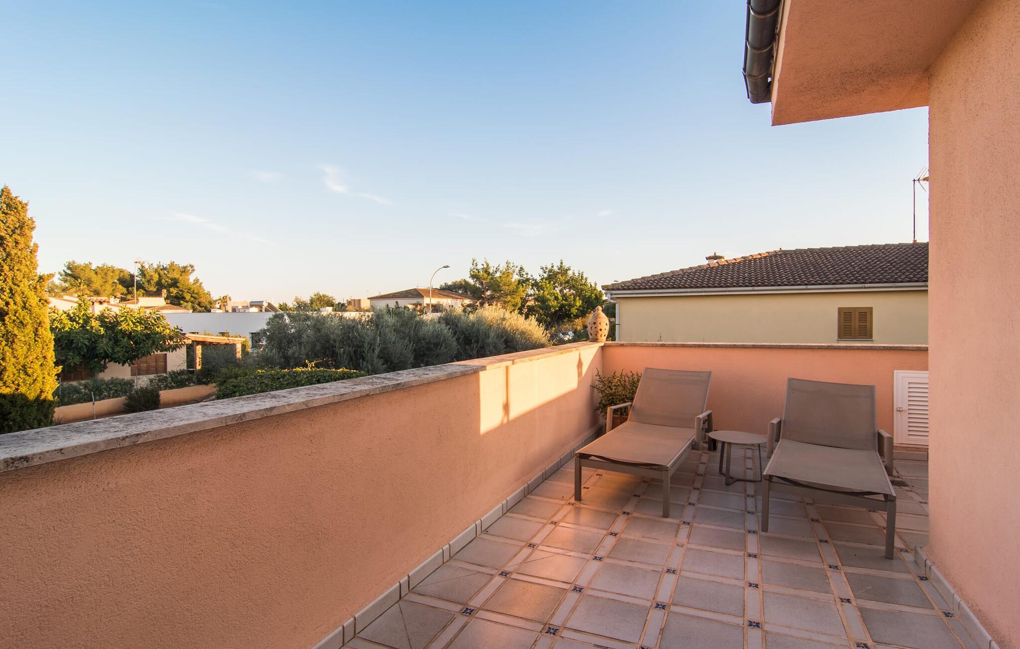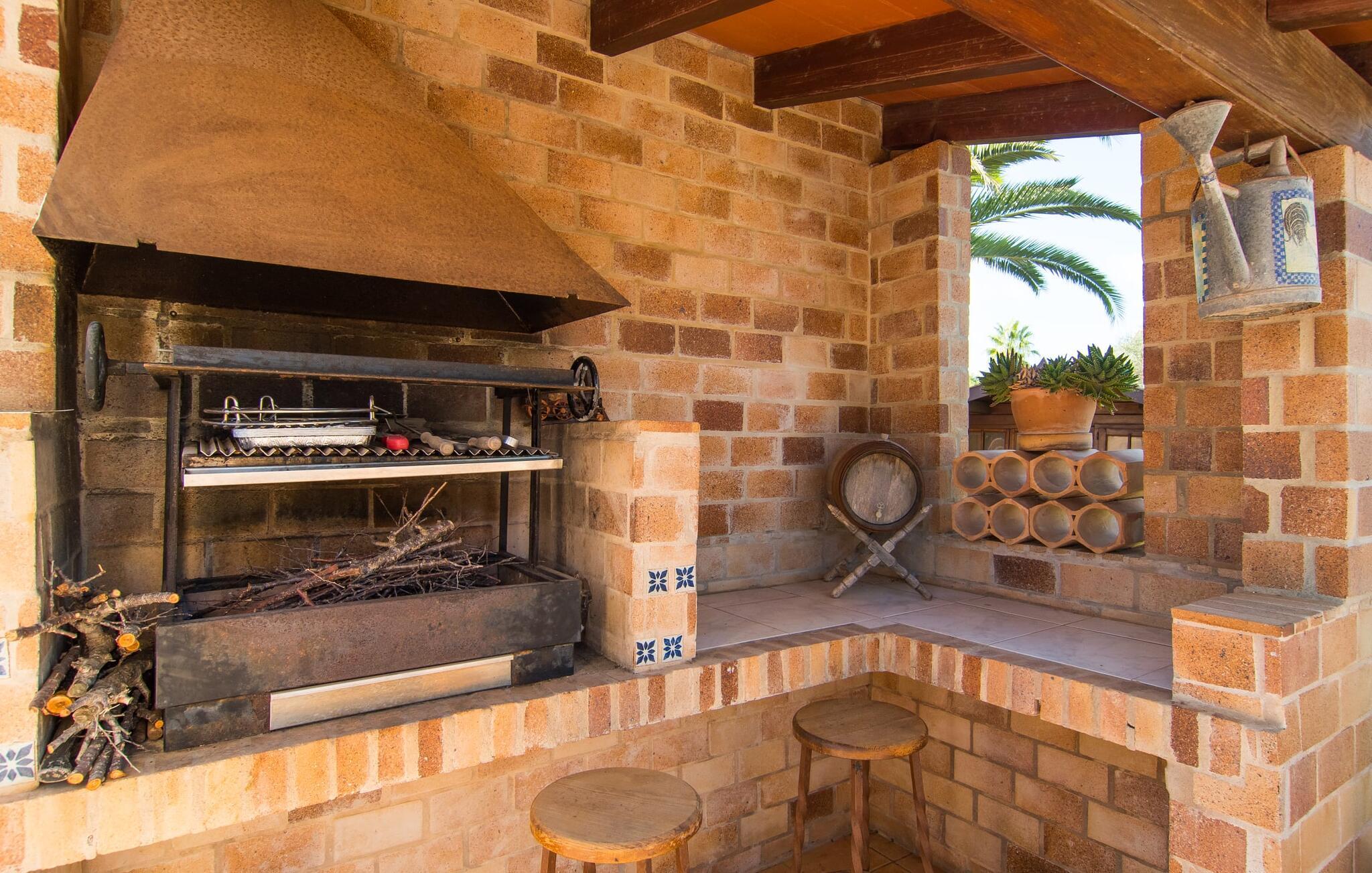 "Casa Romantica" er en charmerende villa i Sa Coma, perfekt for dem, der leder efter en central, men tæt på stranden beliggenhed. Beliggende på en rummelig grund byder ejendommen på et smukt vedligeholdt udendørsområde med indbydende terrasser, palmer og blomsterbede, der skaber en afslappende middelhavsstemning. Nyd at slappe af ved poolen med liggestole og parasoller eller forkæl jer selv med al fresco-måltider tilberedt ved grillpladsen eller i det fuldt udstyrede køkken. Et særligt kendetegn er den udendørs sauna, som giver jeres ferie et strejf af luksus. Parkeringspladser er tilgængelige direkte foran villaen. Indvendigt emmer villaen af en hyggelig bondegårdsstemning, med rustikke træmøbler, vinduesrammer og døre, der gør det nemt at slappe af og føle sig hjemme. I stueplan er der spisestue, opholdsstue med pejs og lyst køkken med udgang til terrasse. Fire dobbeltværelser, hver med eget badeværelse og rummelige garderobeskabe, sikrer privatliv og komfort. En vindeltrappe fører til et yderligere soveværelse med dobbeltseng med en-suite badeværelse, der fuldender hjemmets indbydende og velindrettede rum. Den velholdte finca "Casa Romantica" ligger på en rummelig grund i Sa Coma på det østlige Mallorca. Takket være den centrale beliggenhed kan I nemt nå restauranter og butikker til fods. Stranden i Sa Coma ligger kun omkring 1,8 km væk. I kan køre til andre strande som Cala Millor eller Cala Petita via den akustisk mærkbare vej, kun 3,2 km, eller 4,9 km med en lejebil. Og det ugentlige marked Son Servera ligger kun omkring 5,5 km væk.
