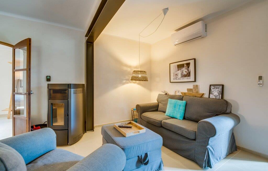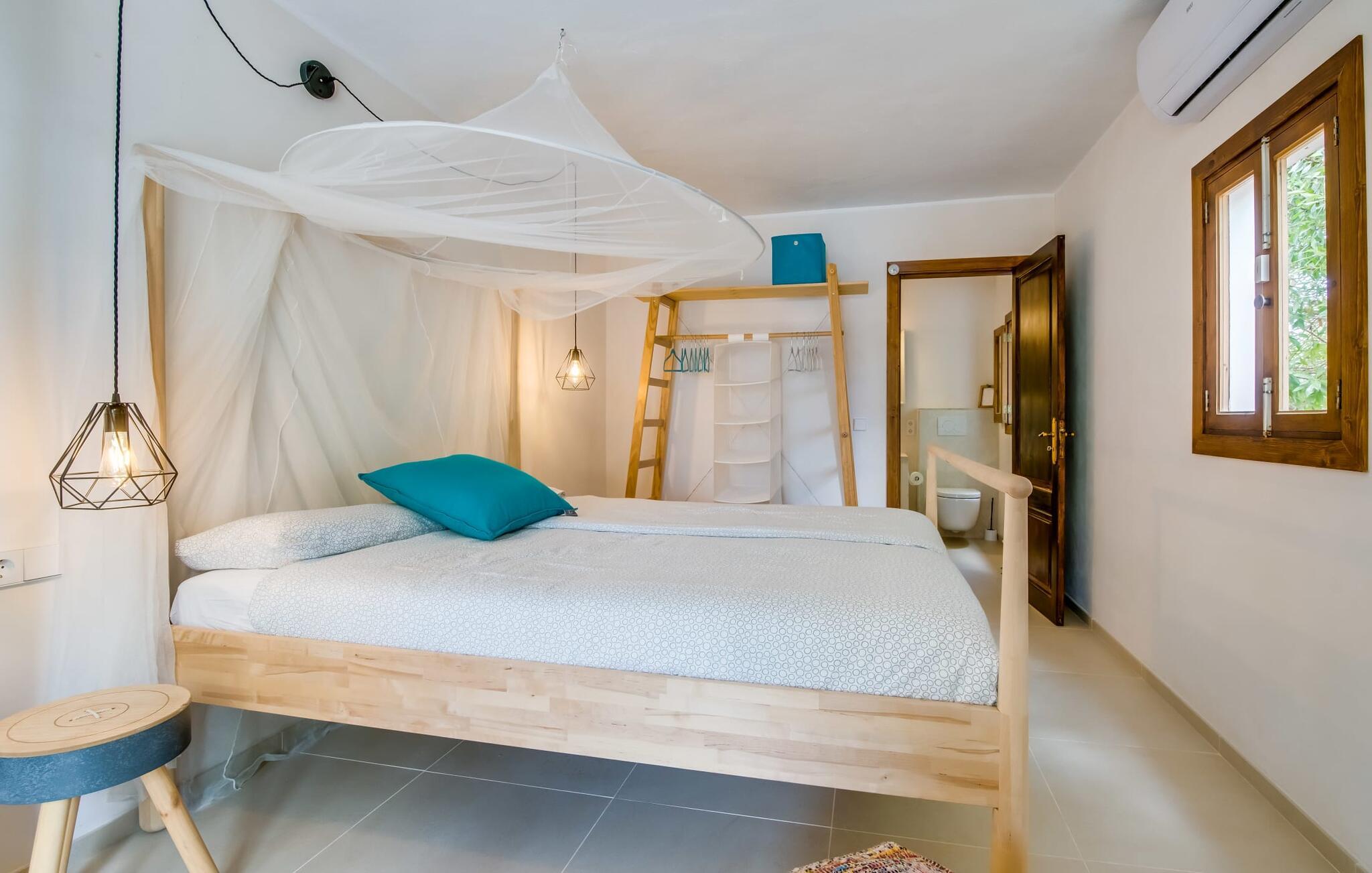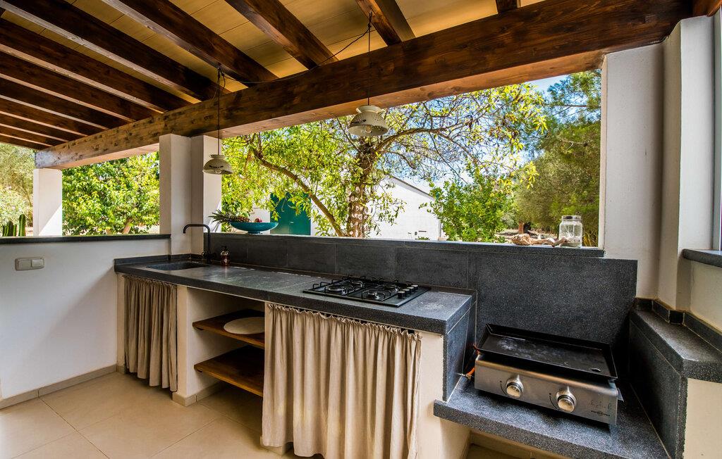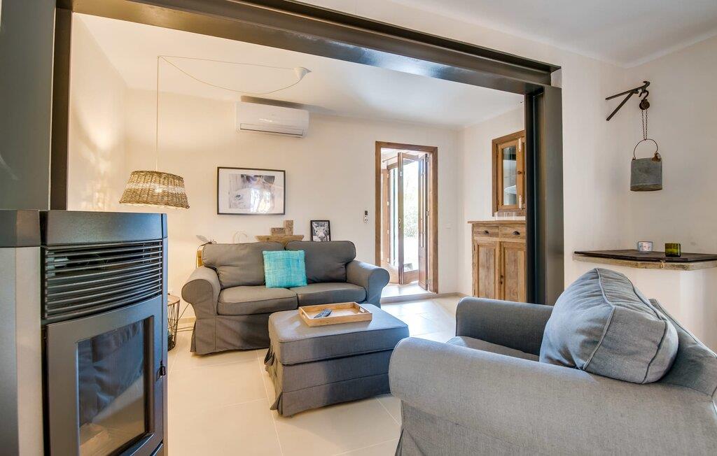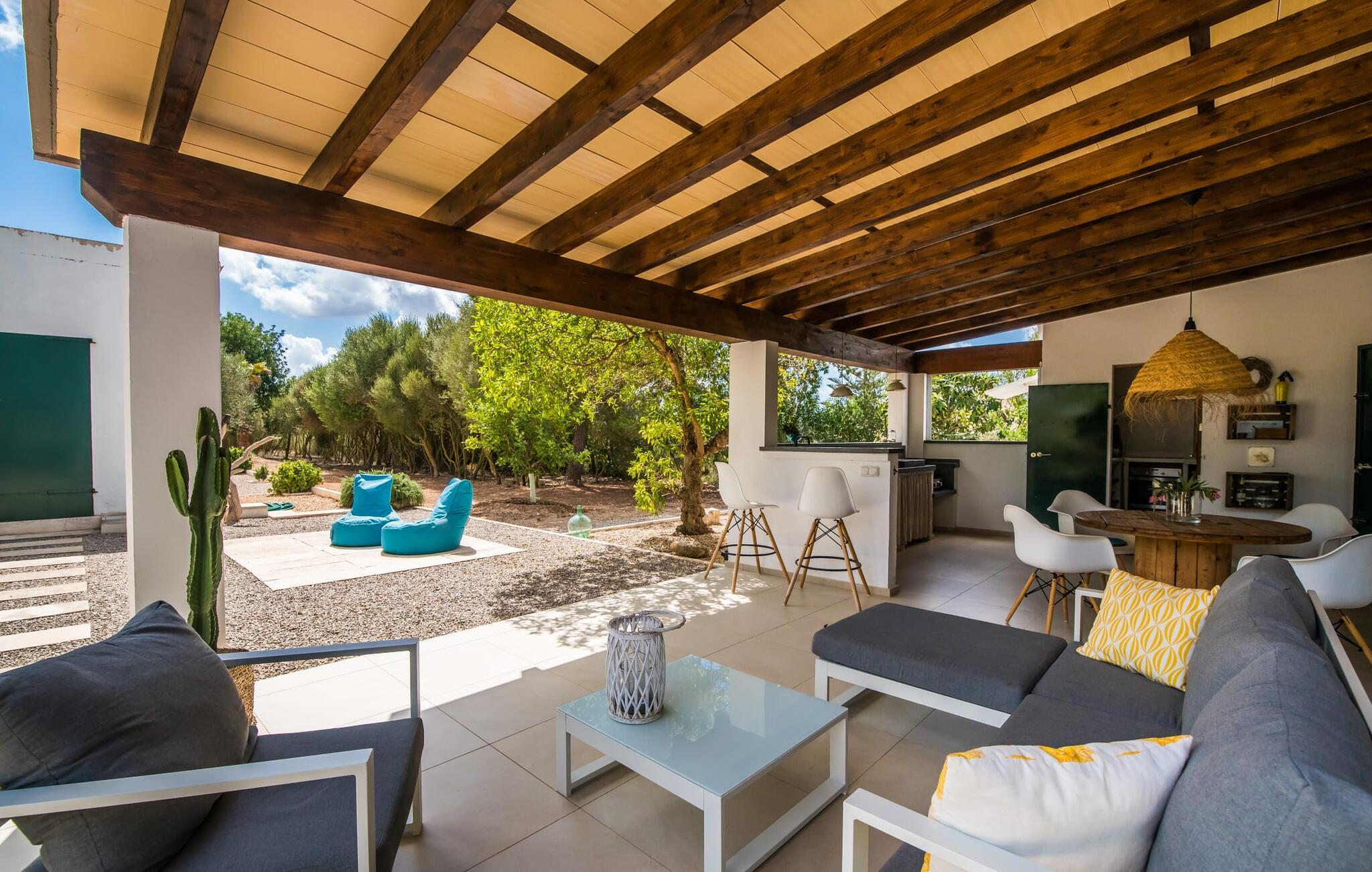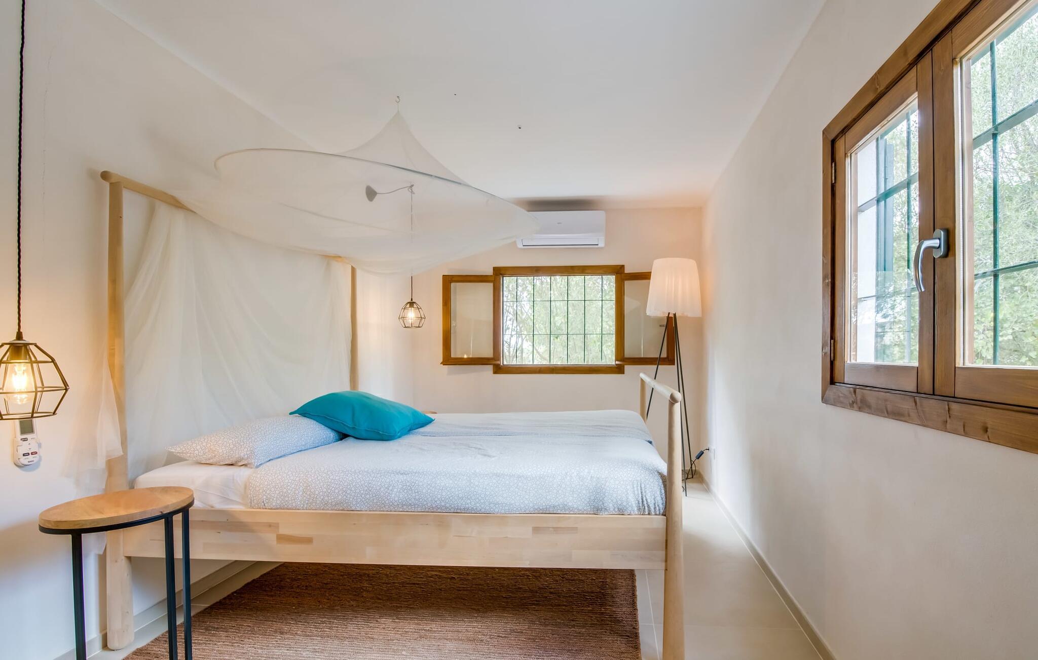 Dette charmerende feriehus på Mallorca udstråler en let sommerfriskhed og stilfuldt design. Den lyse bygning med fladt tag er omgivet af smukke middelhavstræer og byder på adskillige udendørs afslapningsmuligheder. Slap af på grusbedet foran terrassen eller nyd den luftige lounge under taget, perfekt til at drikke eller læse, mens I nyder naturen. Det udendørs køkken med grill er tæt på, hvilket giver mulighed for problemfri spisning under åben himmel. Blot få skridt væk er der en rummelig solterrasse i tilknytning til poolen, som nemt kan nås via trapper. Inde i huset er der en stilfuld stemning med hyggelige polstrede møbler og pilleovn i stuen, mens spisepladsen skaber en varm atmosfære med originalt bord, elegant belysning og pejs. Det fuldt udstyrede køkken forbedrer selvforplejningsoplevelsen med sit praktiske, men æstetisk tiltalende design. De to elegant designede soveværelser har hver især rummelige en-suite badeværelser, hvilket sikrer privatliv og komfort. Dette unikke bondehus, centralt beliggende på øen, kan varmt anbefales til en dejlig ferie på Mallorca. Dette charmerende bondehus har en smuk sydvendt beliggenhed på det østlige Mallorca. På grund af beliggenheden meget tæt på Manacor, som ligger ca. 4 km væk, kan flere supermarkeder og smukke strande nås hurtigt. Det er de såkaldte Calas de Mallorca, i alt 18 fine sandede og let skrånende strande langs østkysten.