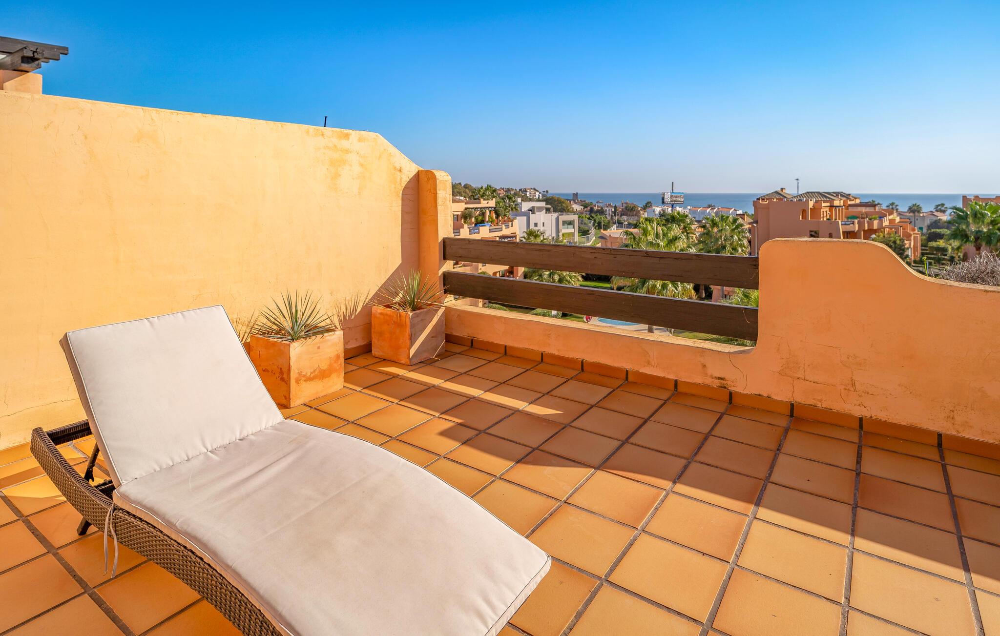 Denne fantastiske og rummelige ferielejlighed i Casares byder på stilfuld indretning og maksimal komfort. Den lyse opholdsstue er perfekt til at slappe af efter en begivenhedsrig dag, mens det veludstyrede køkken ikke lader noget tilbage at ønske. Et højdepunkt er den store tagterrasse, hvorfra I kan nyde en imponerende udsigt over havet - ideel til en morgenmad med udsigt eller hyggelige aftener udendørs.