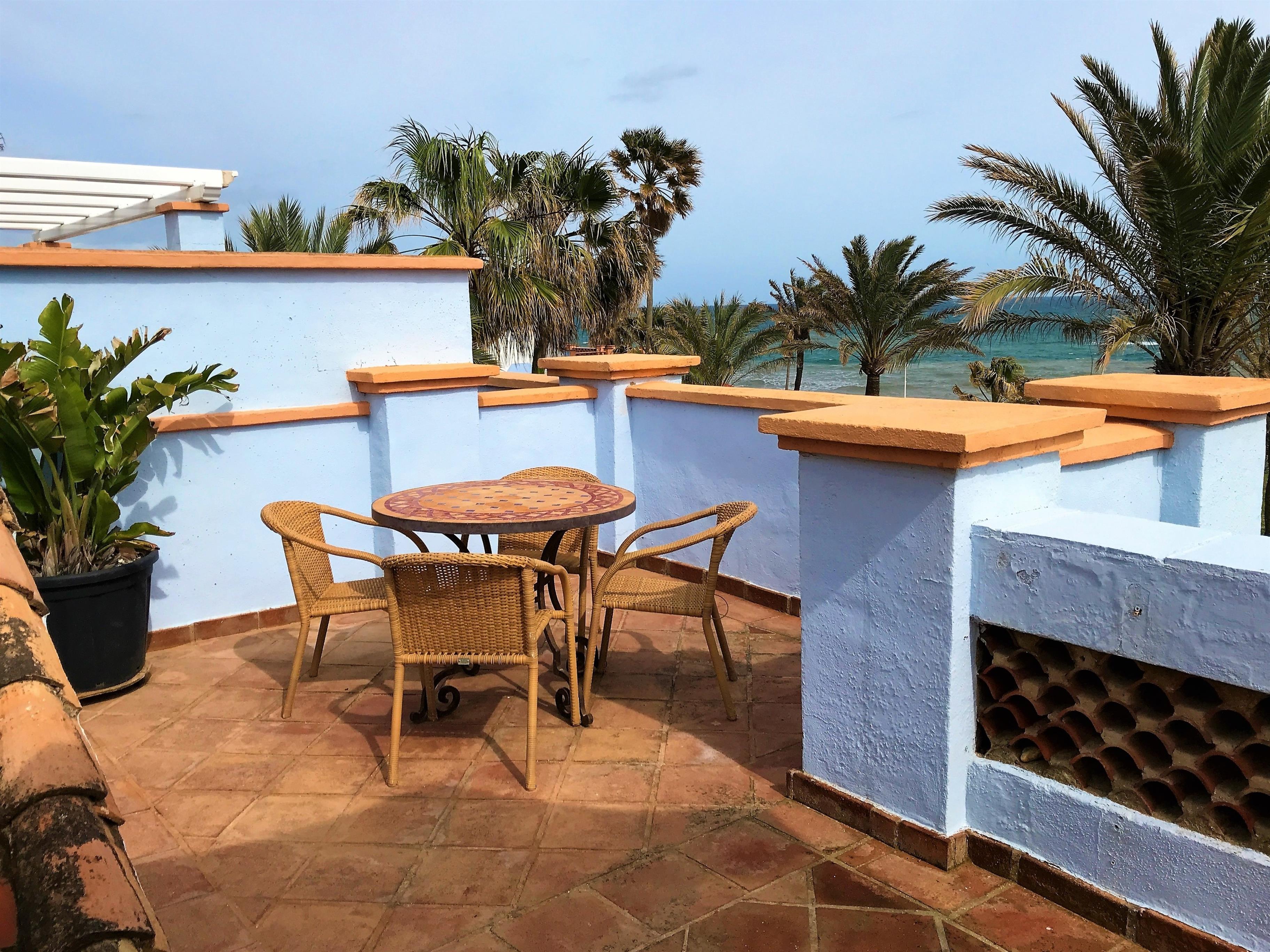Luxus 2-Schlafzimmer-Wohnung direkt am Strand! Erste Etage mit überdachte Terrasse und große Dachterrasse, WLAN Internet; NESPRESSO-Kaffemaschine; Garage; 4 Pools; 2 Badestrände; Klimaanlage warm/kalt; deutsches SAT-TV; 3 Restaurants nebenan; ruhige Anlage