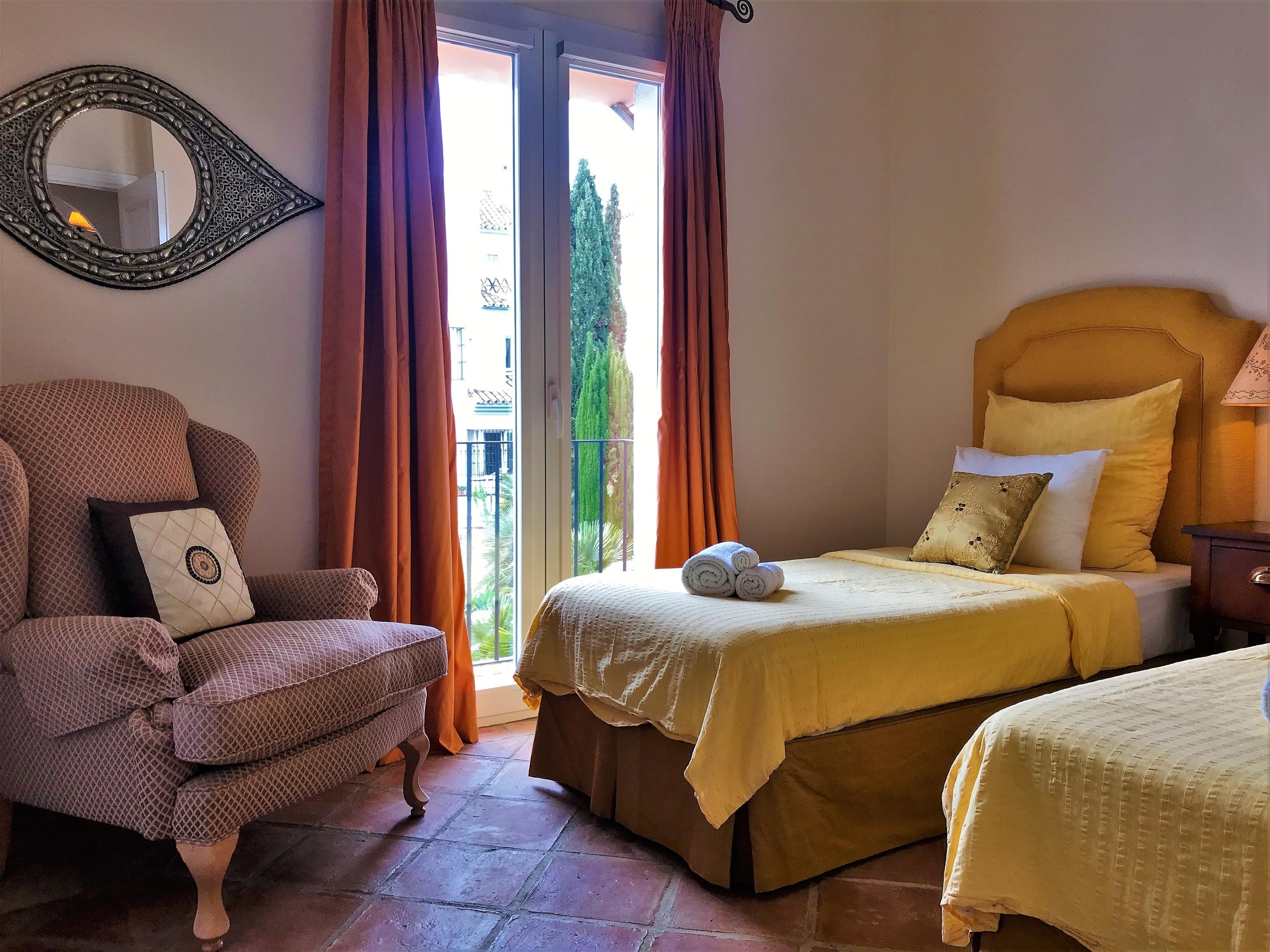 Beide Schlafzimmer sind sehr geräumig und verfügen beide über eingebaute Wandschränke und ein en-suite-Badezimmer mit Fenstern und Fussbodenheizung. Im Hauptschlafzimmer ist ein grosses Doppelbett mit 180X 200 cm. Hier geniessen Sie schöne Meersicht und direkten Zugang zur grossen Terrasse. Im zweiten Schlafzimmer sind 2 Einzelbetten mit je 90X190cm. Zwischen Wohnzimmer und Gästezimmer ist noch ein Gäste-WC.