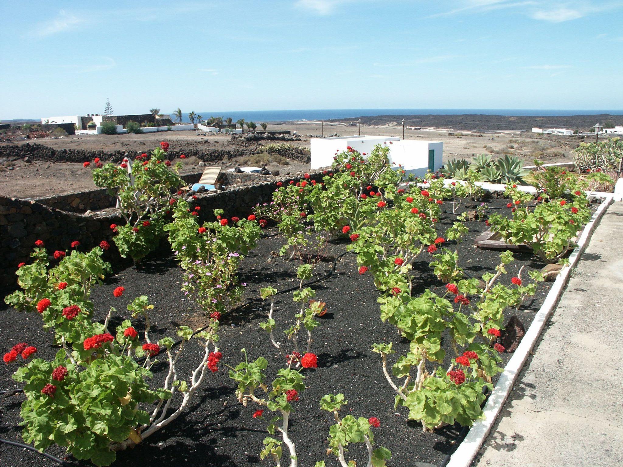 From the villa you also have a view up to the mysterious fire mountains, which are only some 1.000 m from the sea and the (black) beach of the Salinas de Janubio.