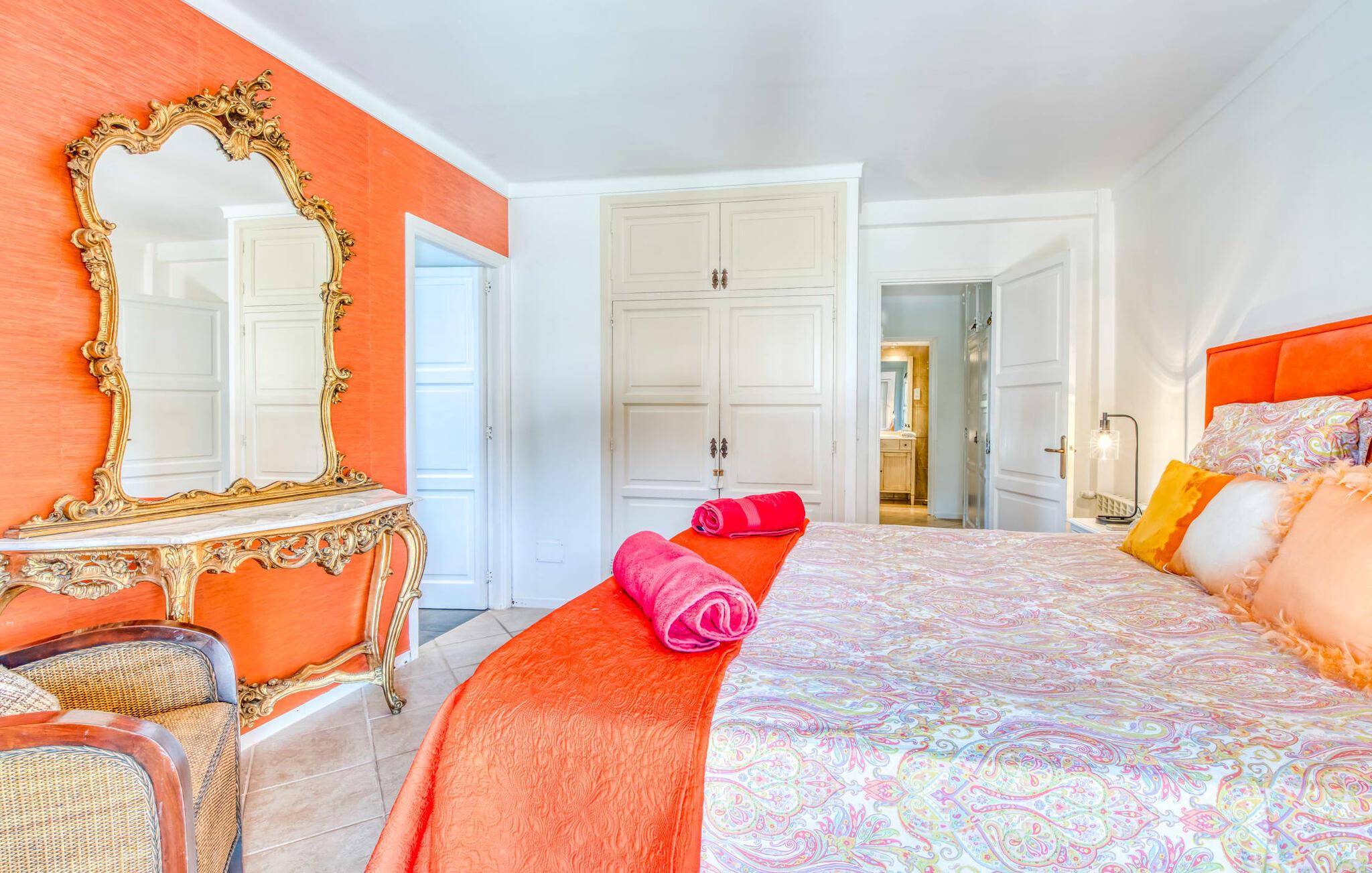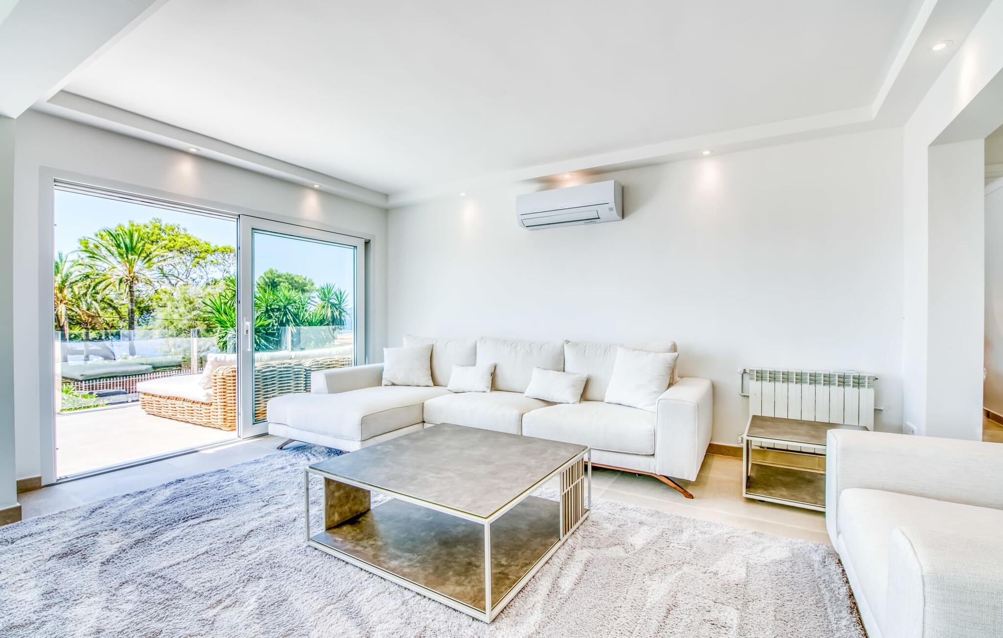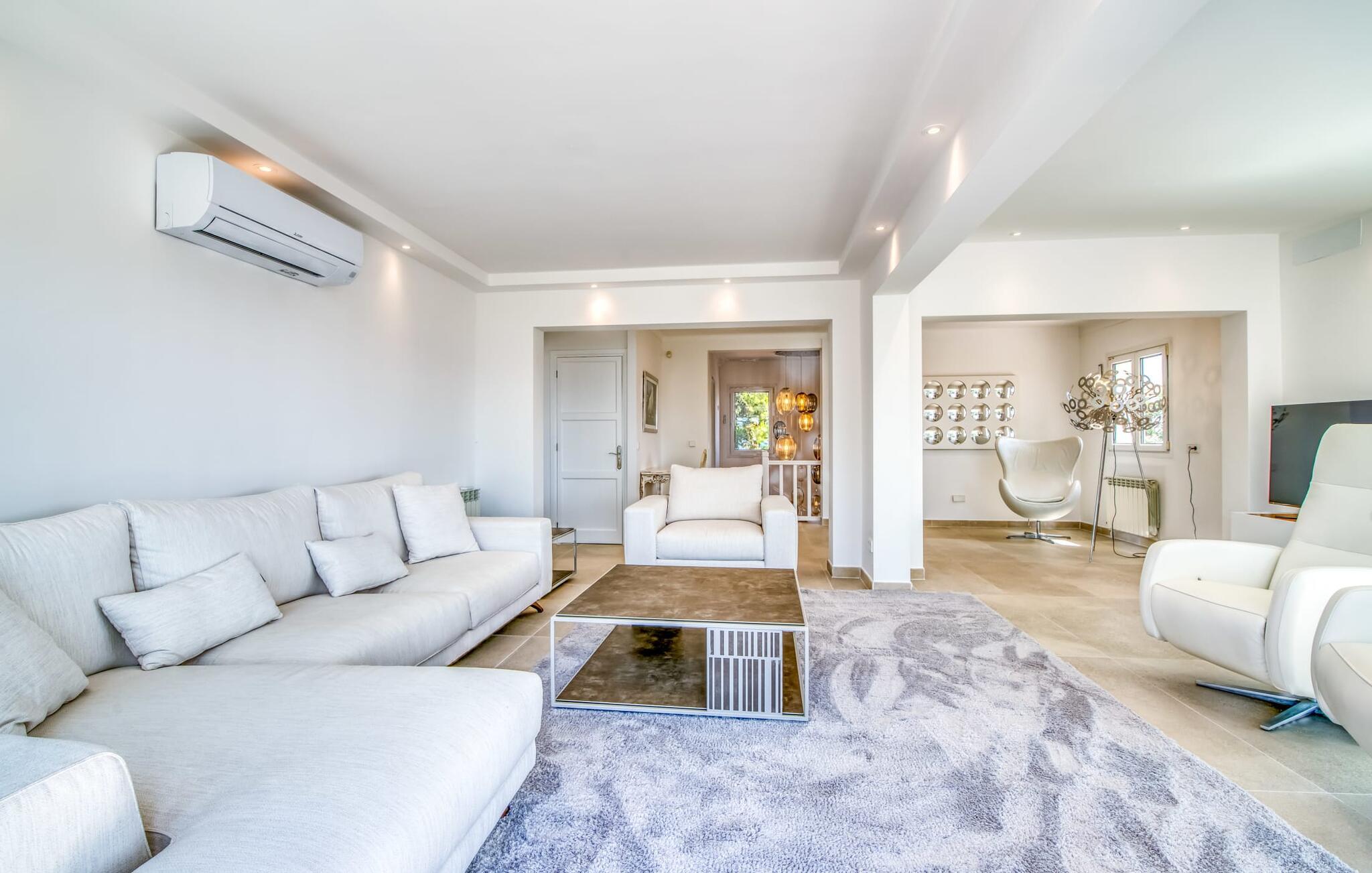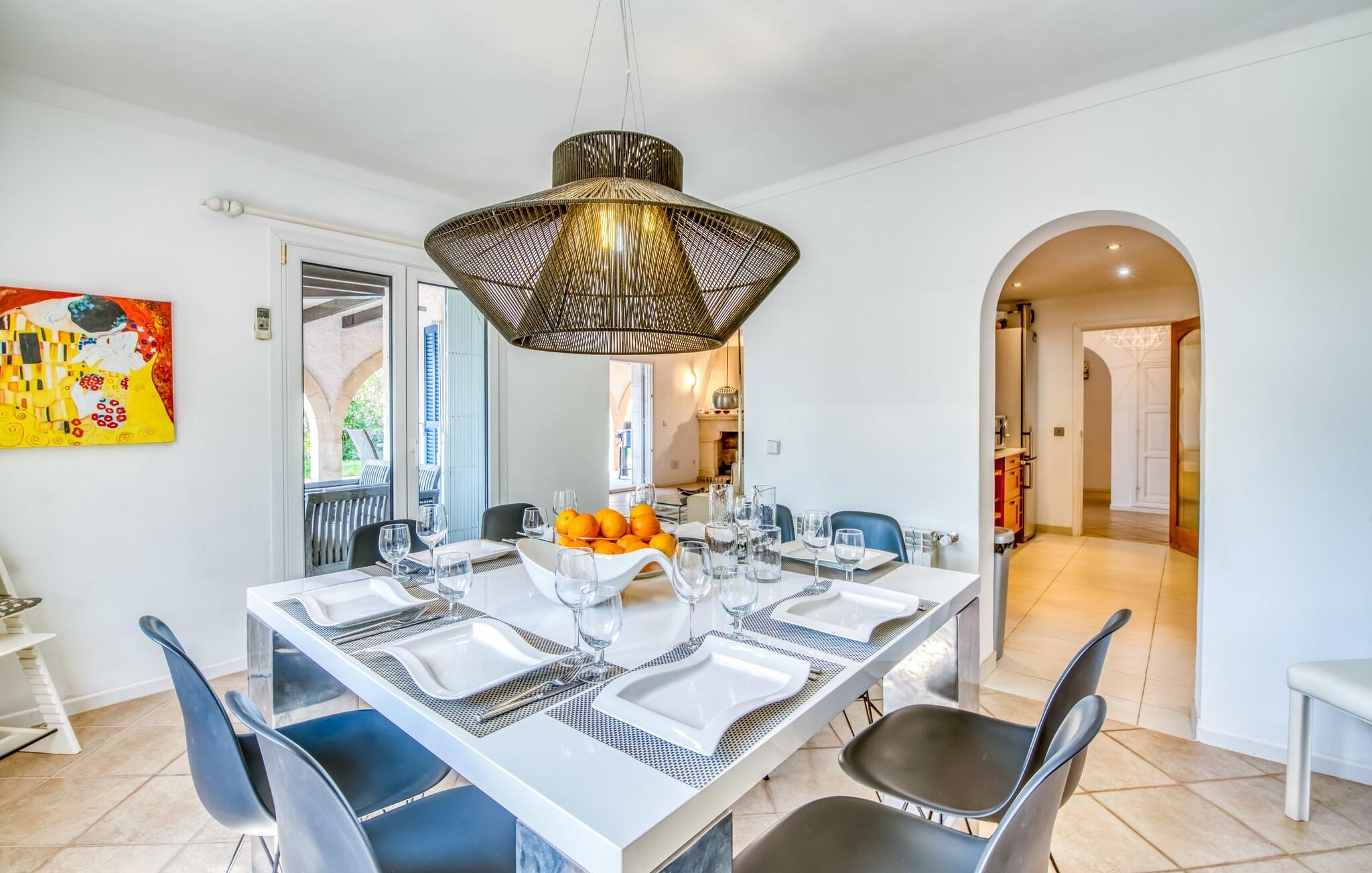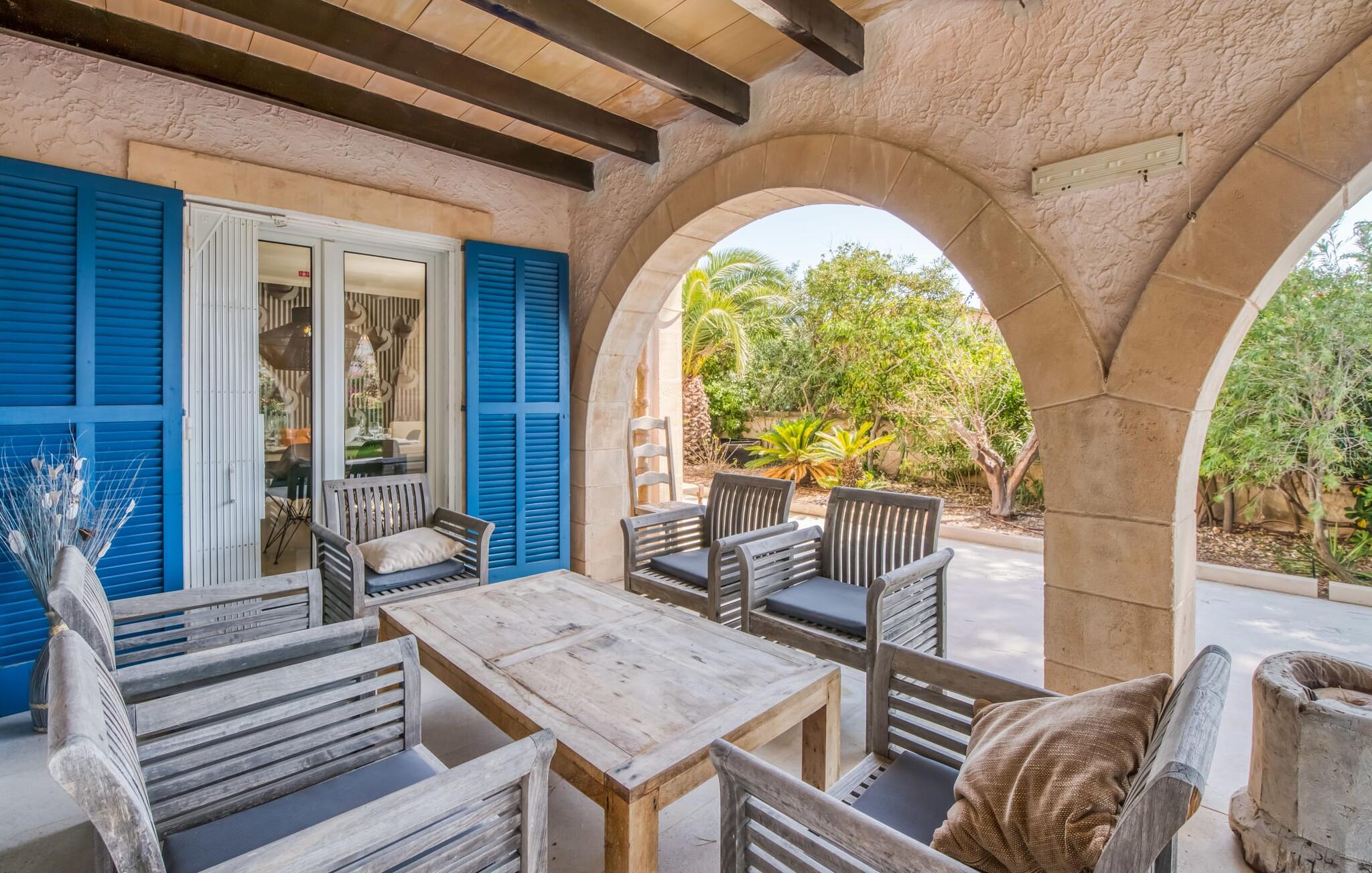 Oplev ferielykke i bebyggelsen "Cielo de Bonaire", kun få skridt fra havet. Denne charmerende villa med havudsigt har blå døre og skodder, der afspejler kystens skønhed. Ejendommen har en majestætisk have og en privat nyreformet pool omgivet af godt polstrede rattanmøbler til afslapning. Nyd den hyggelige udendørs lounge under et skyggefuldt tag og den betagende havudsigt fra terrasserne ovenpå. Villaens design omfatter indbydende buer, der skaber komfortable siddepladser perfekt til afslapning efter stranddage. En grillaften og en flaske vin venter jer til skønne sommeraftener. Mens parkering er tilgængelig på en stille gade, er garagen ikke inkluderet i lejeprisen. Indenfor byder "Casita de Nicolas" på en stilfuld blanding af indretning og et rummeligt opholds- og spiseområde, der er problemfrit forbundet med udendørsområdet. Det moderne køkken er veludstyret og de fire forskellige soveværelser, lige fra de livlige en-suite soveværelser med terrasseudgang til de to rolige ovenpå soveværelser med private terrasser og havudsigt, passer til enhver smag og lejlighed. Fra lufthavnen til jeres destination på en time: Den stilfulde villa "Casita de Nicolas" med sine indbydende buegange ligger ved foden af Pollença-bugten, kun få skridt fra vandet. Blot et par kilometer fra den gamle bydel i Alcúdia og det nærmeste store supermarked er det solidt forankret i det eksklusive feriested Bonaire - inklusive en overflod af topstrande og bugter. Mal Pas byder på en marina med barer og restauranter. Sejlads og bådture er organiseret fra lystbådehavnen.