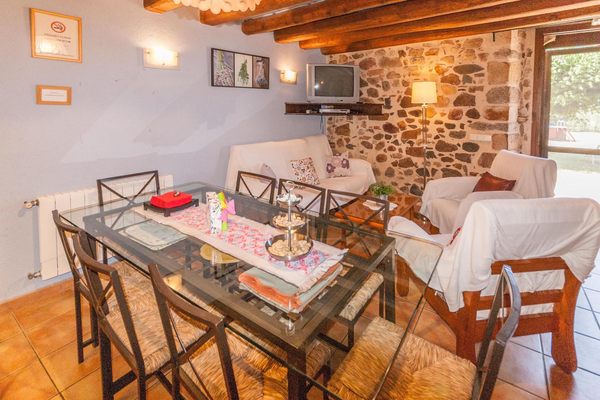 Afslappet familieretreat Dette rummelige feriehus ligger på den spanske kyst i Cassà de la Selva og byder velkommen til op til ni gæster fordelt på seks hyggelige soveværelser. Det er designet til sammenkomster og har en privat swimmingpool, en komfortabel lounge og en veranda, hvor morgenen begynder med frisk luft og aftenen slutter med afslappet udendørs spisning. Familier vil sætte pris på det åbne køkken, generøse spiseplads og det varme, indbydende interiør, der får længere ophold til at føles ubesværet. Natur og kyst charme Omgivet af skov kun få skridt fra ejendommen, tilbyder hjemmet øjeblikkelig adgang til vandrestier - perfekt til en rolig flugt eller en morgentur med dit kæledyr. Inden for 20-22 km finder du sandstrande som Sant Feliu de Guíxols og Platja d'Aro, ideelle til dagsture fyldt med sol og hav. Den nærliggende by Cassà de la Selva, kun 4 km væk, byder på supermarkeder, butikker og lokale bekvemmeligheder, mens Girona-Costa Brava Lufthavn er en kort 14 km kørsel, hvilket gør ankomster og afgange nemme. Spisning og kæledyrsvenlig sjov Costa Brava-regionen er kendt for sine middelhavssmag, og restauranter inden for en kort køretur serverer alt fra frisk fisk og skaldyr til rustikke catalanske retter. For gæster, der medbringer kæledyr, byder det omkringliggende område på hundevenlige vandreruter, skyggefulde skovstier og kystpromenader, hvor kæledyr i snor er velkomne. Tilbage i villaen gør den private have og grill det nemt at dele måltider udendørs, mens din firbenede ledsager nyder det åbne rum ved din side.