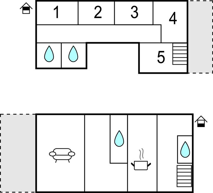 Badeværelse 6m2 (nr. 1) - WC. Varmt og koldt vand. Bruser