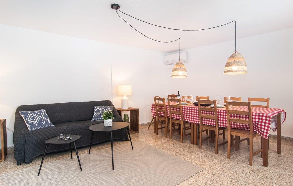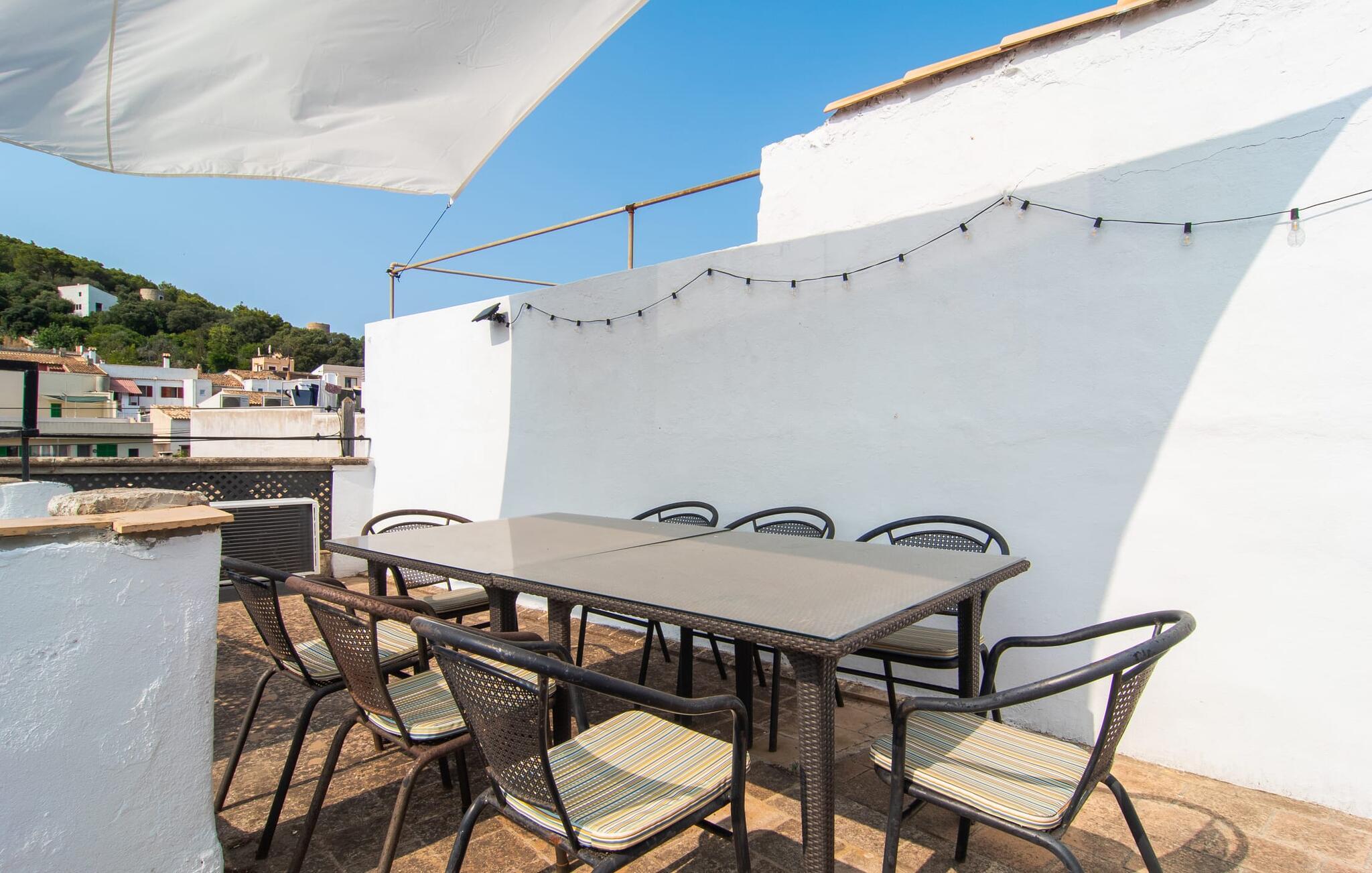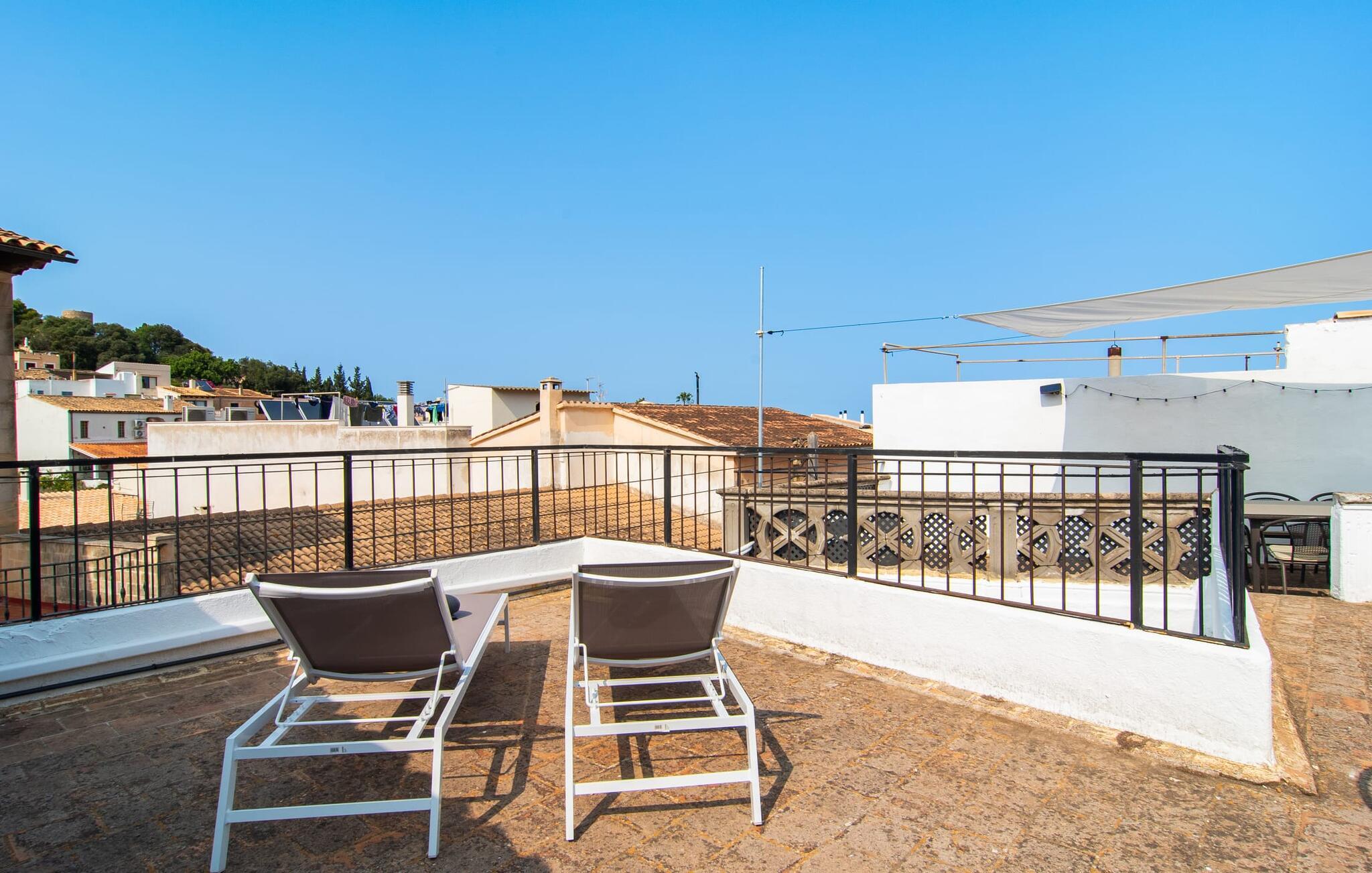 Det smagfuldt renoverede rækkehus "Cervantes 14" ligger i hjertet af Capdepera og byder på masser af plads til op til 9 personer. Herfra kan I nemt udforske den historiske gamle bydel og de mange smukke sandstrande på Mallorcas østkyst. I vil helt sikkert nyde at bruge den rummelige tagterrasse med hele gruppen. Den er ideel til hyggelige grillaftener og hyggelige sommeraftener, men også blot til at slappe af et par timer under stjernerne efter en lang dag på stranden. I stueetagen er der en lille gårdhave, hvor I finder et komplet badeværelse med bruser samt et vaskerum. Her kan I komfortabelt friske op umiddelbart efter hjemkomsten fra stranden. Herfra fører en udvendig trappe til opholdsstuen. I vil blive budt velkommen af omhyggeligt renoverede værelser. Gamle, velholdte klinkegulve, de originale trædøre og andre typiske mallorcanske elementer er blevet kombineret med moderne, smagfuld indretning. På 1. boligplan er der et venligt indgangsparti, en lys, indbydende stue og et hyggeligt soveværelse. Trappen fører til anden sal. Det huser en stor spisestue med en komfortabel sofa, et moderne, fuldt udstyret køkken, et badeværelse og endnu et soveværelse. En anden trappe fører til tredje sal med de resterende soveværelser. En af dem har en køjeseng. Der er stabilt WiFi i hele bygningen. Alle fire soveværelser er udstyret med varm-kold aircondition. Sørg for at tilbringe en afslappende ferie i et komfortabelt, autentisk feriehus på det østlige Mallorca. Rækkehuset ligger nedenfor den gamle bydel i hjertet af Capdepera. Supermarkeder er inden for gåafstand. De smukke strande på østkysten som Cala Ratjada og Cala Mesquida kan nås på mindre end 10 minutter i bil.