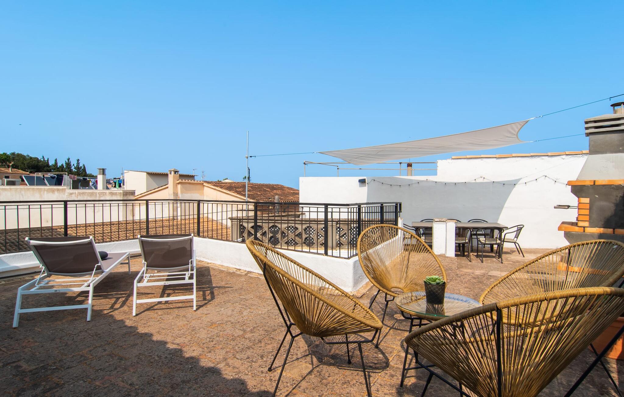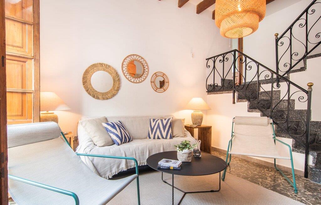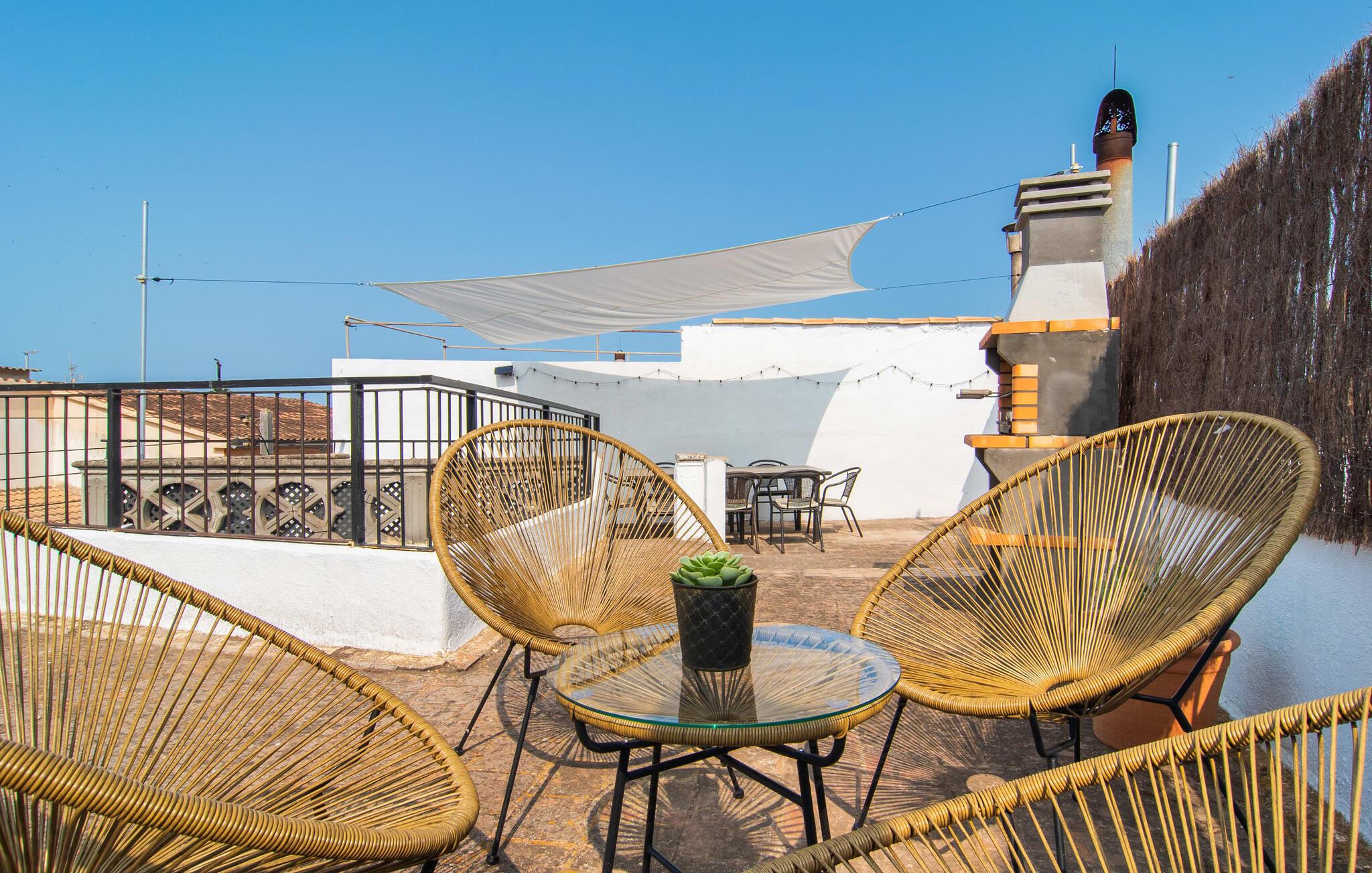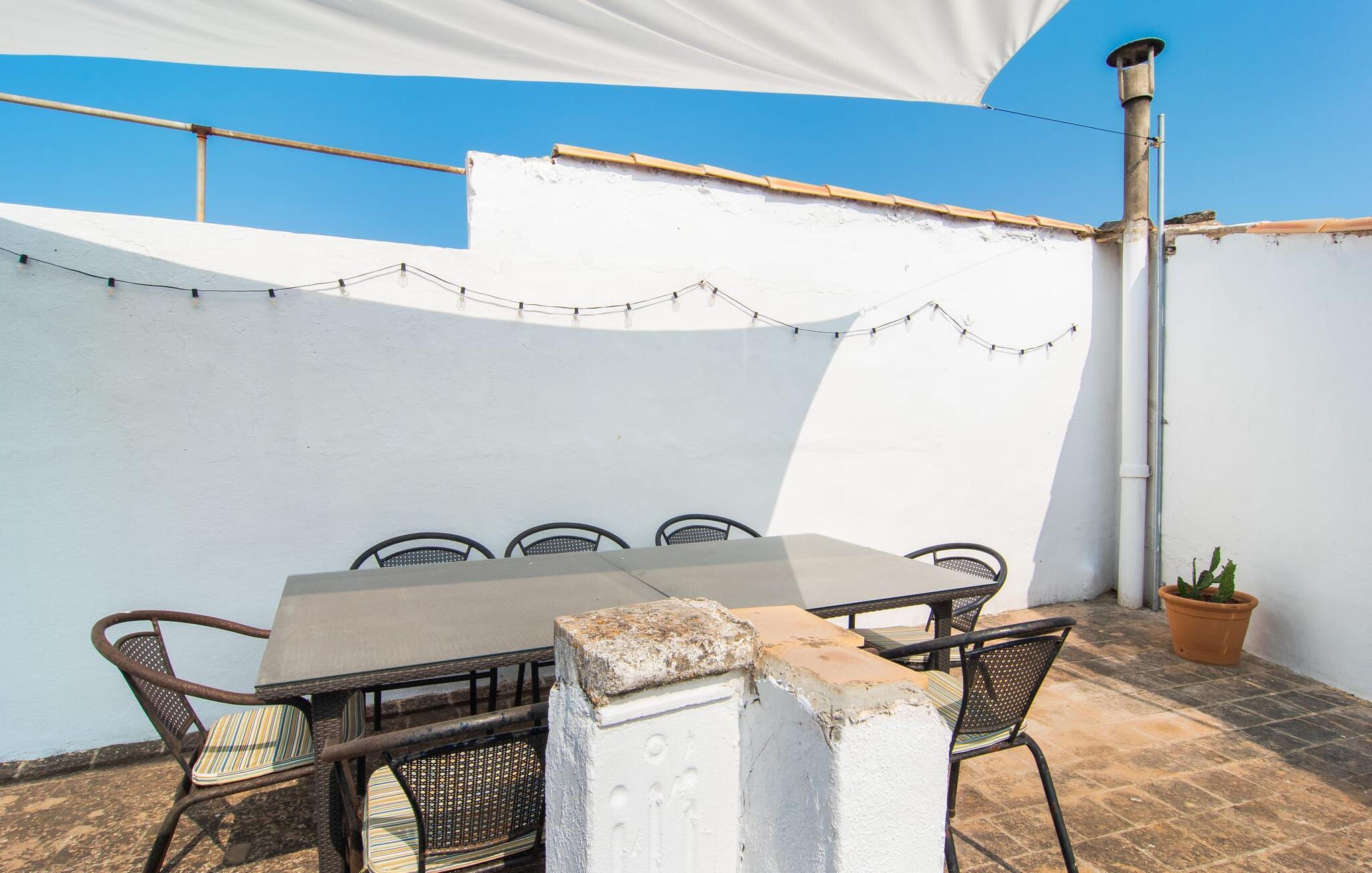 Det smagfuldt renoverede rækkehus "Cervantes 14" ligger i hjertet af Capdepera og byder på masser af plads til op til 9 personer. Herfra kan I nemt udforske den historiske gamle bydel og de mange smukke sandstrande på Mallorcas østkyst. I vil helt sikkert nyde at bruge den rummelige tagterrasse med hele gruppen. Den er ideel til hyggelige grillaftener og hyggelige sommeraftener, men også blot til at slappe af et par timer under stjernerne efter en lang dag på stranden. I stueetagen er der en lille gårdhave, hvor I finder et komplet badeværelse med bruser samt et vaskerum. Her kan I komfortabelt friske op umiddelbart efter hjemkomsten fra stranden. Herfra fører en udvendig trappe til opholdsstuen. I vil blive budt velkommen af omhyggeligt renoverede værelser. Gamle, velholdte klinkegulve, de originale trædøre og andre typiske mallorcanske elementer er blevet kombineret med moderne, smagfuld indretning. På 1. boligplan er der et venligt indgangsparti, en lys, indbydende stue og et hyggeligt soveværelse. Trappen fører til anden sal. Det huser en stor spisestue med en komfortabel sofa, et moderne, fuldt udstyret køkken, et badeværelse og endnu et soveværelse. En anden trappe fører til tredje sal med de resterende soveværelser. En af dem har en køjeseng. Der er stabilt WiFi i hele bygningen. Alle fire soveværelser er udstyret med varm-kold aircondition. Sørg for at tilbringe en afslappende ferie i et komfortabelt, autentisk feriehus på det østlige Mallorca. Rækkehuset ligger nedenfor den gamle bydel i hjertet af Capdepera. Supermarkeder er inden for gåafstand. De smukke strande på østkysten som Cala Ratjada og Cala Mesquida kan nås på mindre end 10 minutter i bil.
