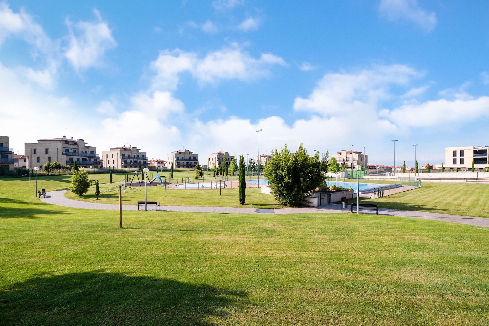 Denne charmerende lejlighed i Cirueña tilbyder et indbydende sted for familier eller grupper, der er ivrige efter at udforske La Rioja. Træd ind på den private terrasse, omkring 8 m², og nyd udsigten over landskabet og pulserende solnedgange. Den fælles have er perfekt til en morgentur eller en aftenslapning. Inden for komplekset finder du to udendørs pools, en indendørs opvarmet pool og en tennisbane - ideel til at holde dig aktiv under dit ophold. En social klub med en restaurant på stedet sikrer nem adgang til regionale delikatesser uden at forlade lokalerne. Cirueña er omgivet af verdenskendte vinmarker og vingårde, hvilket gør det til et fristed for vinentusiaster. Tag på korte køreture til nærliggende byer - Santo Domingo de la Calzada (7 km), Santurde de Rioja (13 km) eller de historiske byer Nájera og Haro (20 km). Undervejs stopper du ved berømte vingårde som Bodegas Muga, Ramón Bilbao og Martínez Lacuesta for at smage exceptionelle Rioja-vine. Regionen er også vært for sæsonbestemte festivaler, hyggelige lokale markeder og naturskønne landskaber perfekt til fotografering og afslappede gåture. Indvendigt er lejligheden omhyggeligt udstyret med et fuldt funktionelt køkken, vaskemaskine og gratis WiFi. To soveværelser rummer gæster komfortabelt. De fælles anlagte haver og garage øger bekvemmeligheden, mens nærheden til golfbanen (600 m) og restauranter (100 m) sikrer et problemfrit ophold. Logroño-Agoncillo Lufthavn ligger 57 km derfra, hvilket gør ankomsten let for besøgende.