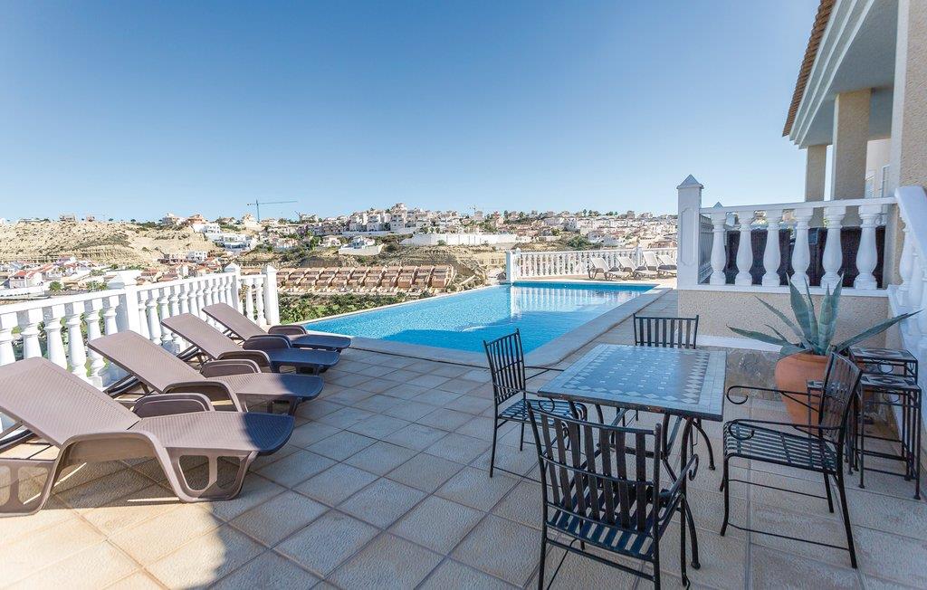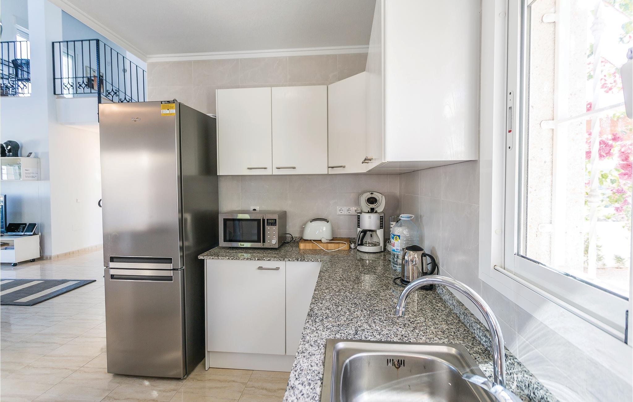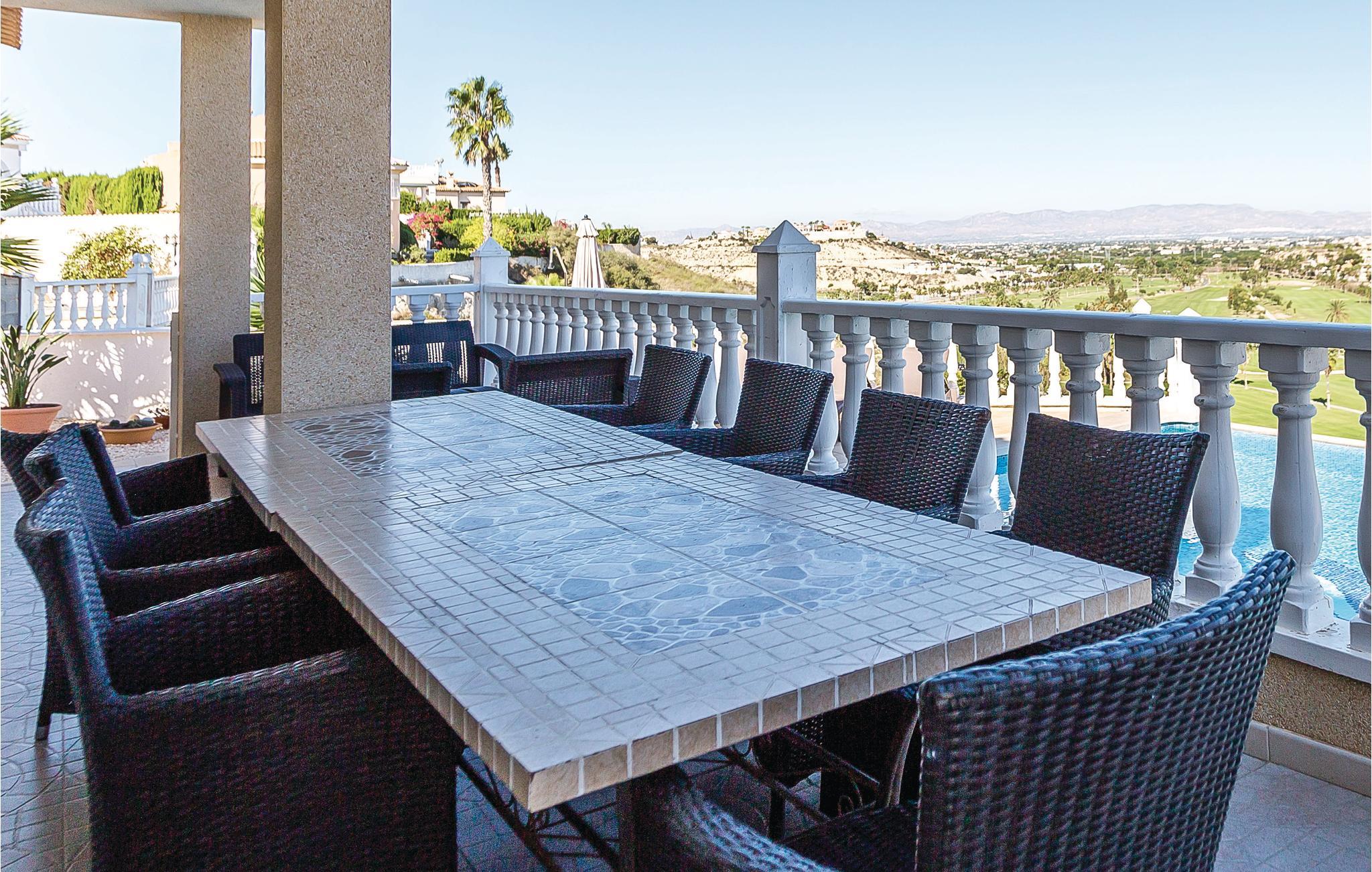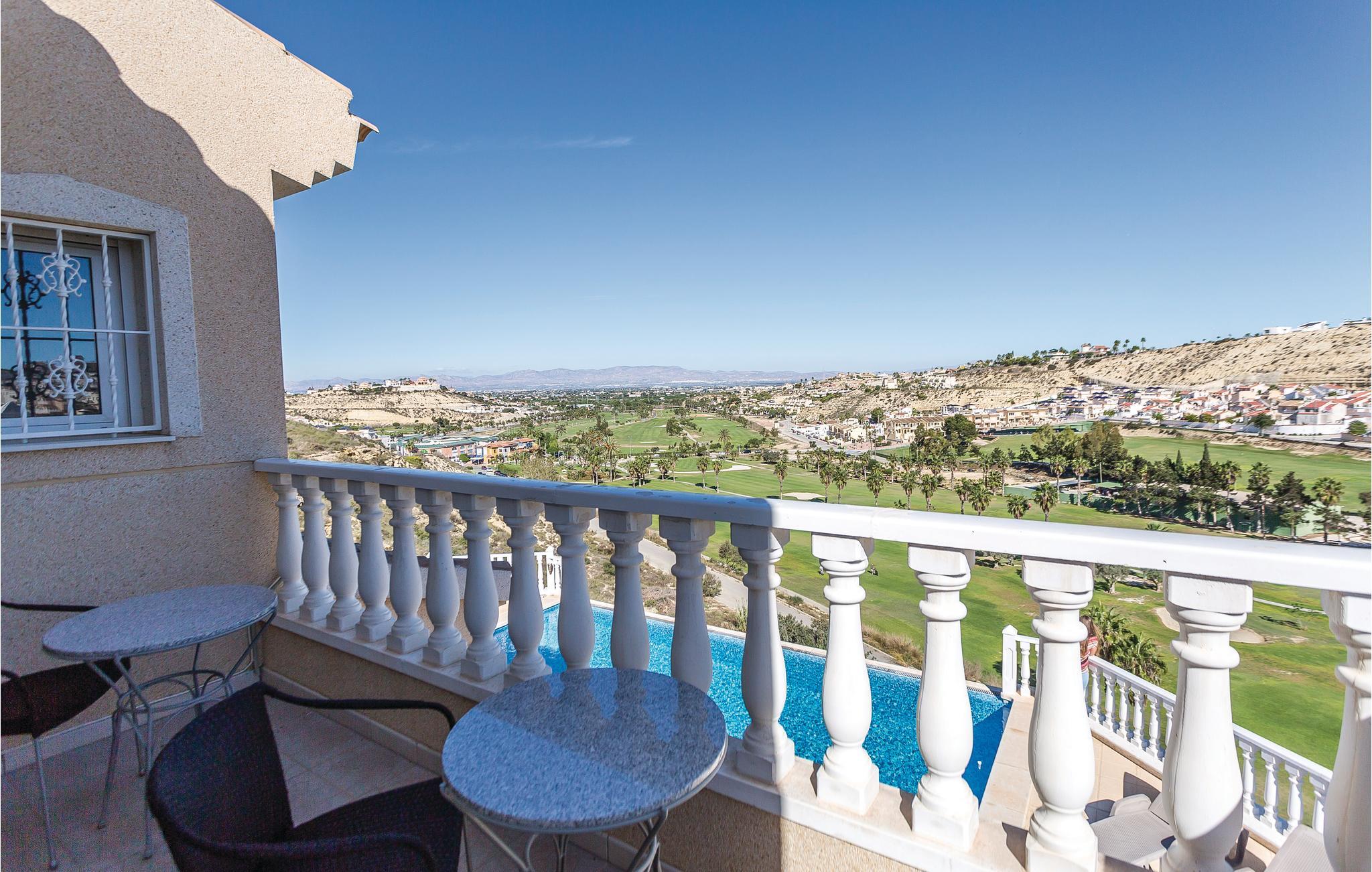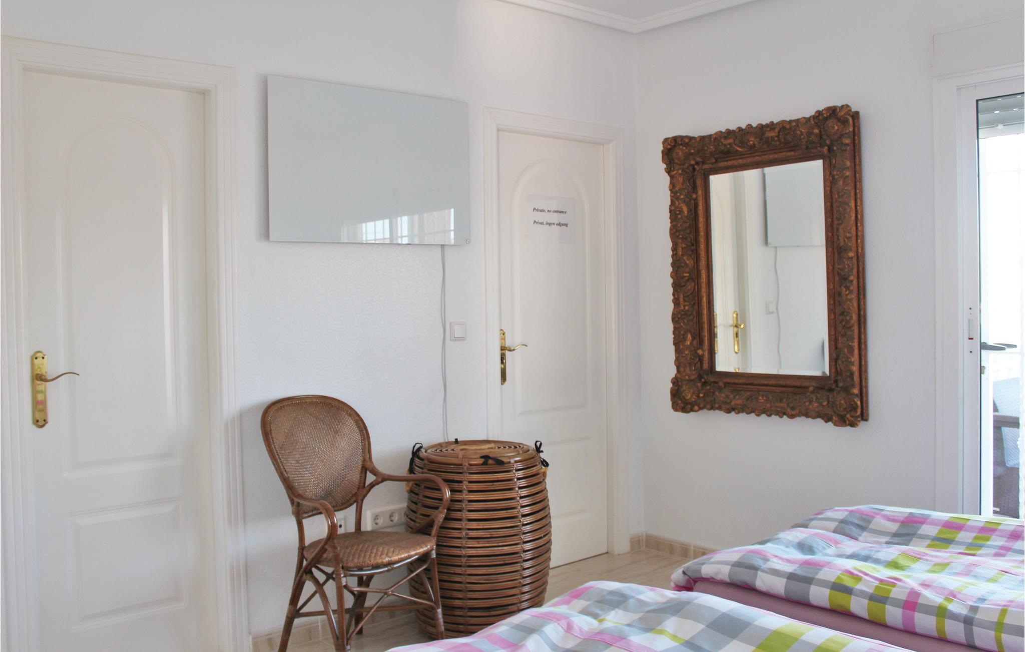 Foran den overdækkede terrasse, der hører til dette hus, har I en drømmeudsigt ud over golfbanen Marquesa. Snup en forfriskende svømmetur i swimmingpoolen og lad blikket vandre, mens I nyder den fabelagtige udsigt. Trods den skønne pool, skal I også forkæle jer selv med et besøg på de herlige strande med klitter ved Guadamar - de er bestemt et besøg værd! Også golfelskere vil elske dette sted. Klubhuset, restauranterne og butikkerne kommer I let til til fods. Dem, der holder ferie her, længes efter fred og ro, skøn udsigt til bjergene og at kunne nyde det smukke lyshav i dalen om aftenen. Ikke langt fra huset ligger der et fredet naturområde med to saltsøer, hvor I kan betragte eksotiske fugle. Regionen byder på talrige markeder, hvor I bl.a. kan finde eksotiske frugter og grøntsager til favorable priser - gå ikke glip af en oplevelsesrig ferie her. Blandt feriehusets særlige udstyr er en mobil gasgrill, en børnehøjstol, og en babyseng. sengelinned til denne er mod betaling.