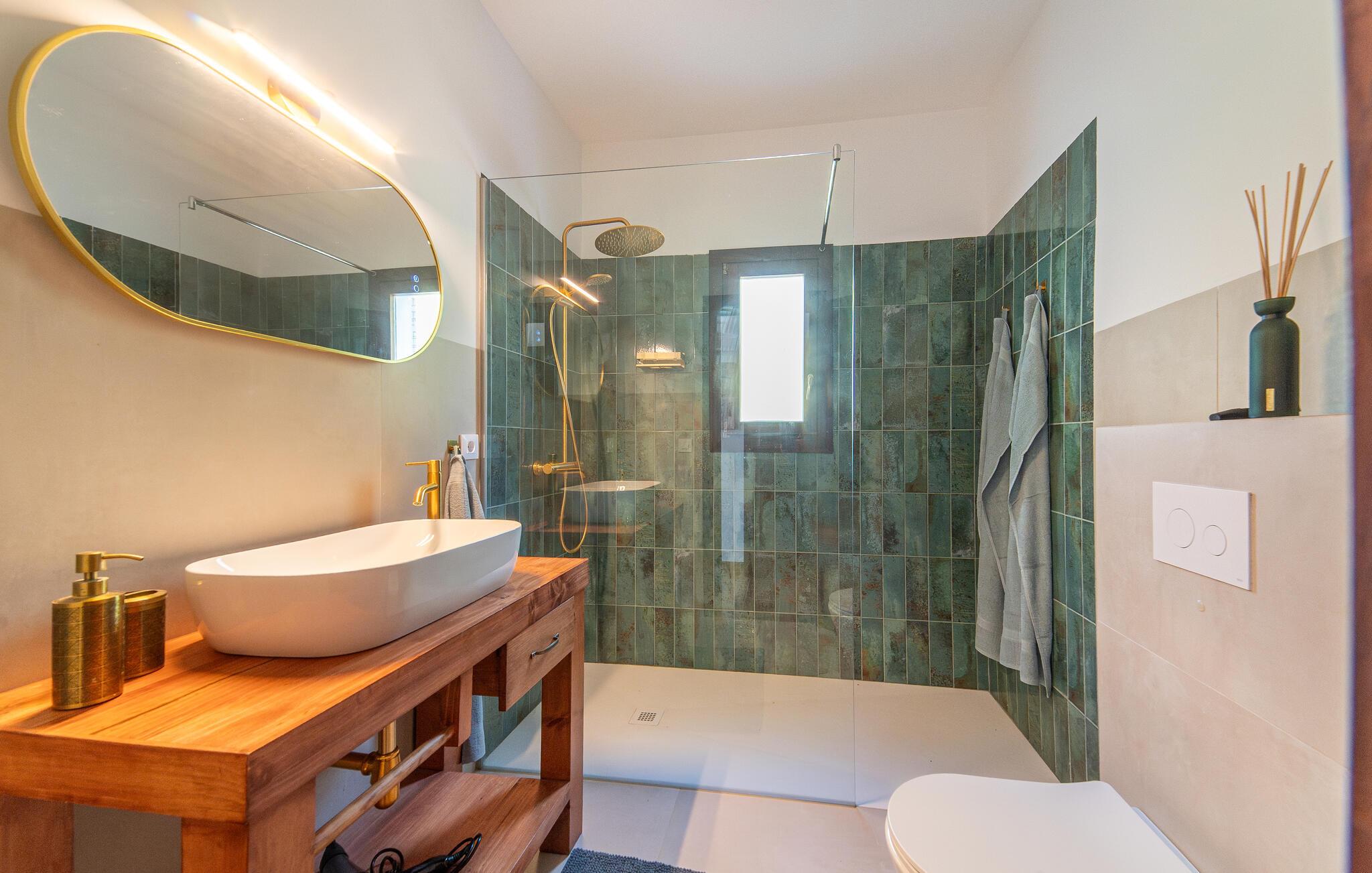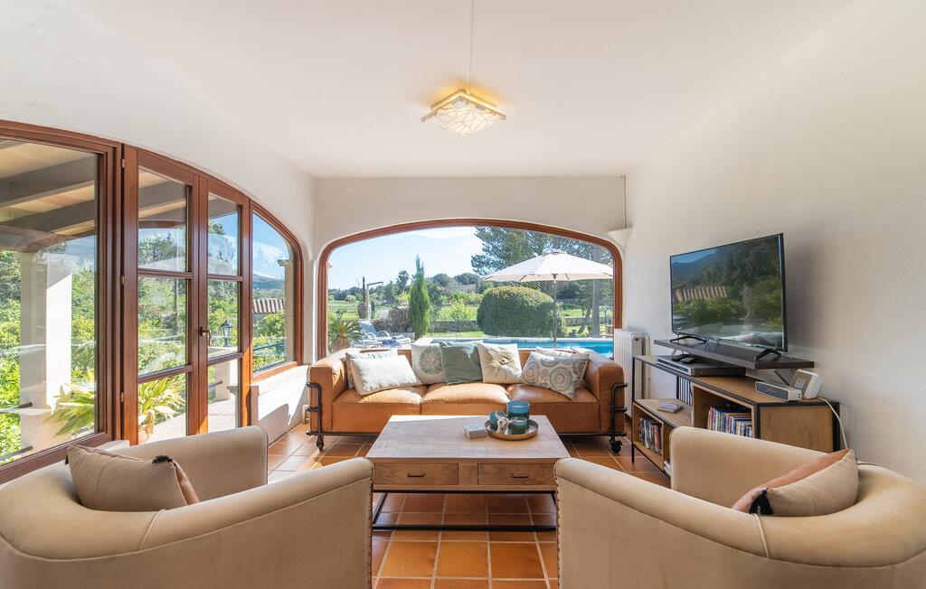 Det landlige feriehus "Clot Fillol" på den østlige del af Mallorca ligger i et betagende landskab nær Artá. Denne charmerende villa er omgivet af en have fuld af middelhavsplanter og tilbyder et fredeligt tilflugtssted. Fra den rummelige poolterrasse og den overdækkede terrasse med udendørs spiseplads kan I nyde en vidunderlig udsigt over haven og det frodige grønne område. Hele dagen vil I finde behagelige skyggefulde pletter på de forskellige terrasser, perfekt til morgenmad, en siesta eller nyde en god vin. En gasgrill af høj kvalitet er tilgængelig til lækre sommeraftener og kan rumme op til 6 gæster. Boligarealet er gennemtænkt fordelt over to plan og har en smagfuld indretning og masser af naturligt dagslys. I stueetagen er der en indbydende stue, en spiseplads og et veludstyret køkken. To store buede vinduer giver jer en fantastisk udsigt over haven og poolområdet. Der er to soveværelser, hvoraf det ene har eget badeværelse. Der er også et separat badeværelse på dette niveau. På øverste etage er der yderligere to sovepladser med hver sit badeværelse og udgang til en skøn terrasse med vid udsigt over landskabet. Alle fire soveværelser er udstyret med aircondition, og huset har oliefyr for at sikre jeres komfort selv i de køligere måneder. Oplev Mallorcas skønhed og ro i "Clot Fillol". Feriehuset ligger ca. 3,5 km sydøst for Artà. Her er gode indkøbsmuligheder, restauranter og caféer. Østkysten med smukke sandstrande, herunder Cala Ratjada og Font de Sa Cala, er omkring 10 km væk. Capdepera Golfbane ligger 4 km derfra.