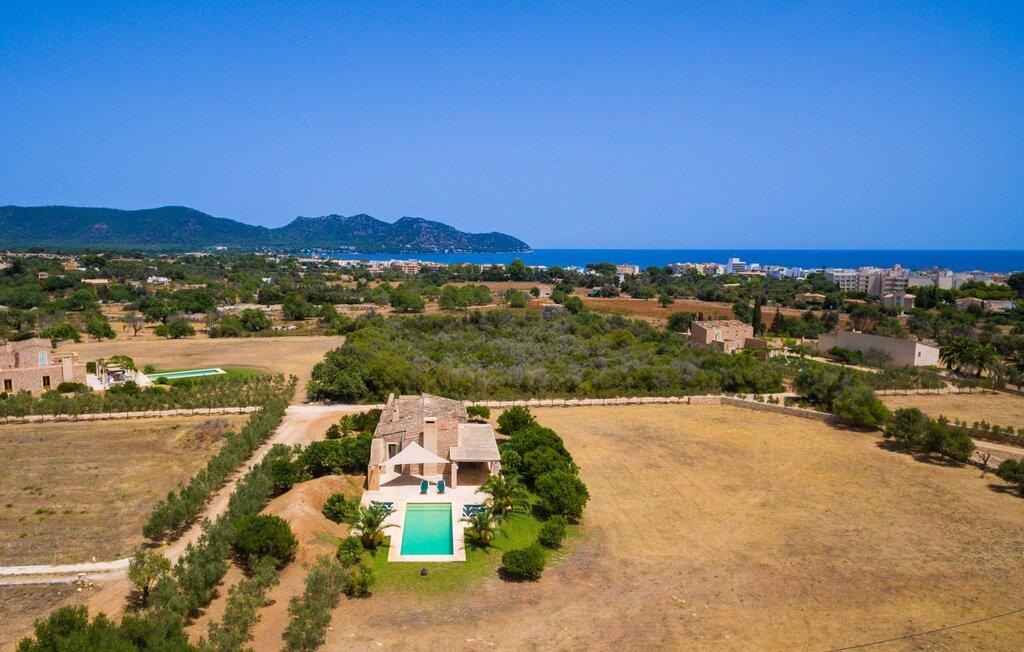 Den moderne villa "Clovetes" er et lille ferieparadis, som vi især anbefaler til alle strandglade feriegæster. Vores luftfotos viser naturhavens oaseagtige karakter med græsplæner omkring terrassearealerne. Talrige palmer, citrustræer og andre middelhavstræer ligger langs poolen og det smukke hus med fortryllende mallorcanske natursten. I kan næsten lugte havet, men I kan helt sikkert mærke den behagelige brise, der gør en privat pool endnu smukkere. Den behageligt proportionerede og malakitfarvede mosaikpool tilbyder en bred trappeindgang og en behagelig dybde for børn. Efter en forfriskende svømmetur kan I slappe af på en af liggestolene på den omkringliggende solterrasse. Der er integreret grillplads på siden med ekstra opbevaringsplads og praktisk vask. Et fortelt strækker sig fra det lille udekøkken til den overdækkede terrasse, hvilket understreger ejendommens maritime karakter. På verandaen, der støder helt op til opholds- og spiseafdelingen, er der altid behagelig skygge med bord og kurvestole, hvor man kan fejre sine grillritualer sammen med venner og familie. Selvom det ydre er i tråd med den klassiske mallorcanske tradition, er husets indre mere gennemsyret af en oplysende følelse af "less is more". Gennem de talrige panoramavinduer vil I opleve et dejligt lyst hus, der er absolut puristisk og moderne. Den varme terracotta-tone på de gipsteksturerede vægge understreger de enkle og klare former. Rummets moderne design harmonerer også med funktionelle områder til ophold, spisning og madlavning. Stuemøblerne er desuden indrettet i bløde jordfarver og giver mulighed for at slappe af foran pejsen, hvilket også sørger for hygge i spisepladsen. Træbordet og -stolene i et landhusdesign står foran køkkenområdet, adskilt af en disk. Den har ikke en designer indbygningsovn, men I finder køkkenskabe i sten med trælåger. Det indeholder dog de teknologiske faciliteter, I vil have, hvis I vælger en ferie med selvforplejning. De hyggelige soveværelser, hvor en god nats søvn ikke bare er et ønske, er indrettet i samme stil og er trods deres lidt industrielle charme stadig behageligt hyggelige takket være brugen af naturligt træ til døre og vinduer. Det store soveværelse har en dobbeltseng og de to andre soveværelser har hver to separate sovepladser. To trendy badeværelser - et med bruser og et med badekar - sikrer en behagelig "ferie", uanset hvilken konfiguration I vælger at tilbringe jeres ferie på Mallorca i. Den indbydende "Clovetes" kombinerer helt klart charmen ved en landlig villa med den attraktive kystlinje, da stranden i Cala Bona kun ligger 1500 m væk og kan nås til fods. Stranden er særlig familievenlig, da den tilbyder en lavvandet indgang til havet. Byen har en lille sportshavn, en promenade med talrige butikker og attraktive spisemuligheder. Det er derfor, folk kan lide at tage dertil om aftenen for at få en drink og nyde udsigten over havet. Generelt er dette område godt til vandreture, men vandsport som dykning og fiskeri er også populært her. Andre kystbyer som Cala Millor, Cala Ratjada eller Portocristo mod syd kan også nås hurtigt. Det gælder også de andre små byer på øen, Son Servera eller middelalderkunsten Artà, for blot at nævne nogle få. Der er mere end nok til variation og afslapning i jeres private perle "Clovetes". Villaen "Clovetes" i minimalistisk, puristisk design ligger i landlige omgivelser på en ejendom med talrige palmer og andre middelhavstræer. På trods af den rolige beliggenhed er det kun 5 minutter væk fra Cala Bona og Cala Millor. Der er en boulevard under palmer med et par restauranter, cocktailbarer og butikker, der inviterer jer til at slentre uden stress. Cala Bona-stranden blev endda tildelt det blå flag for sin fremragende vandkvalitet.