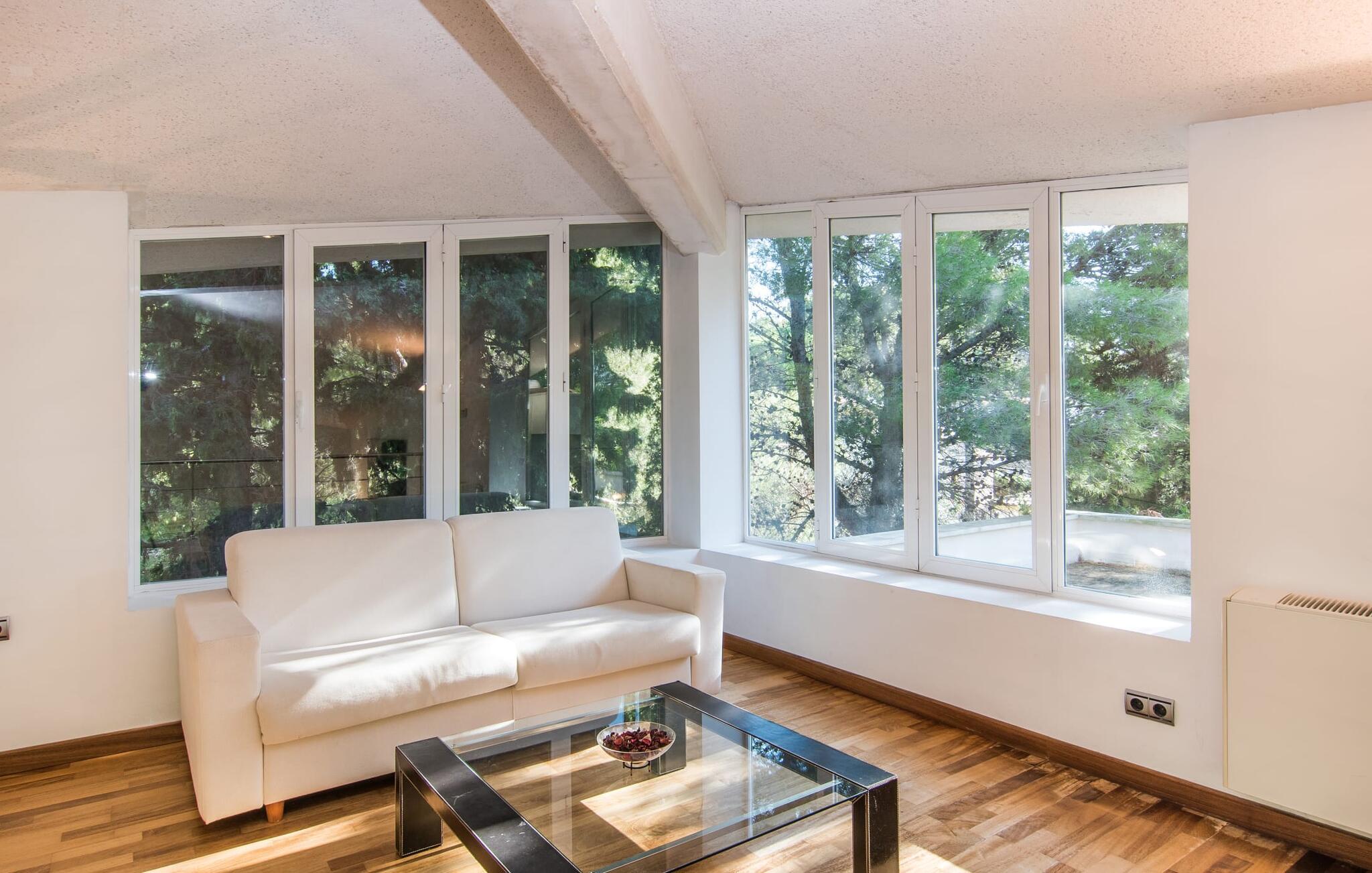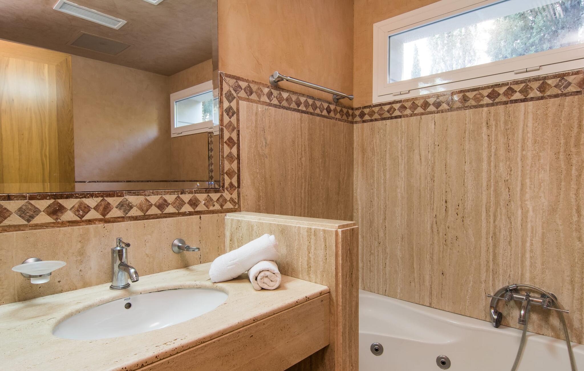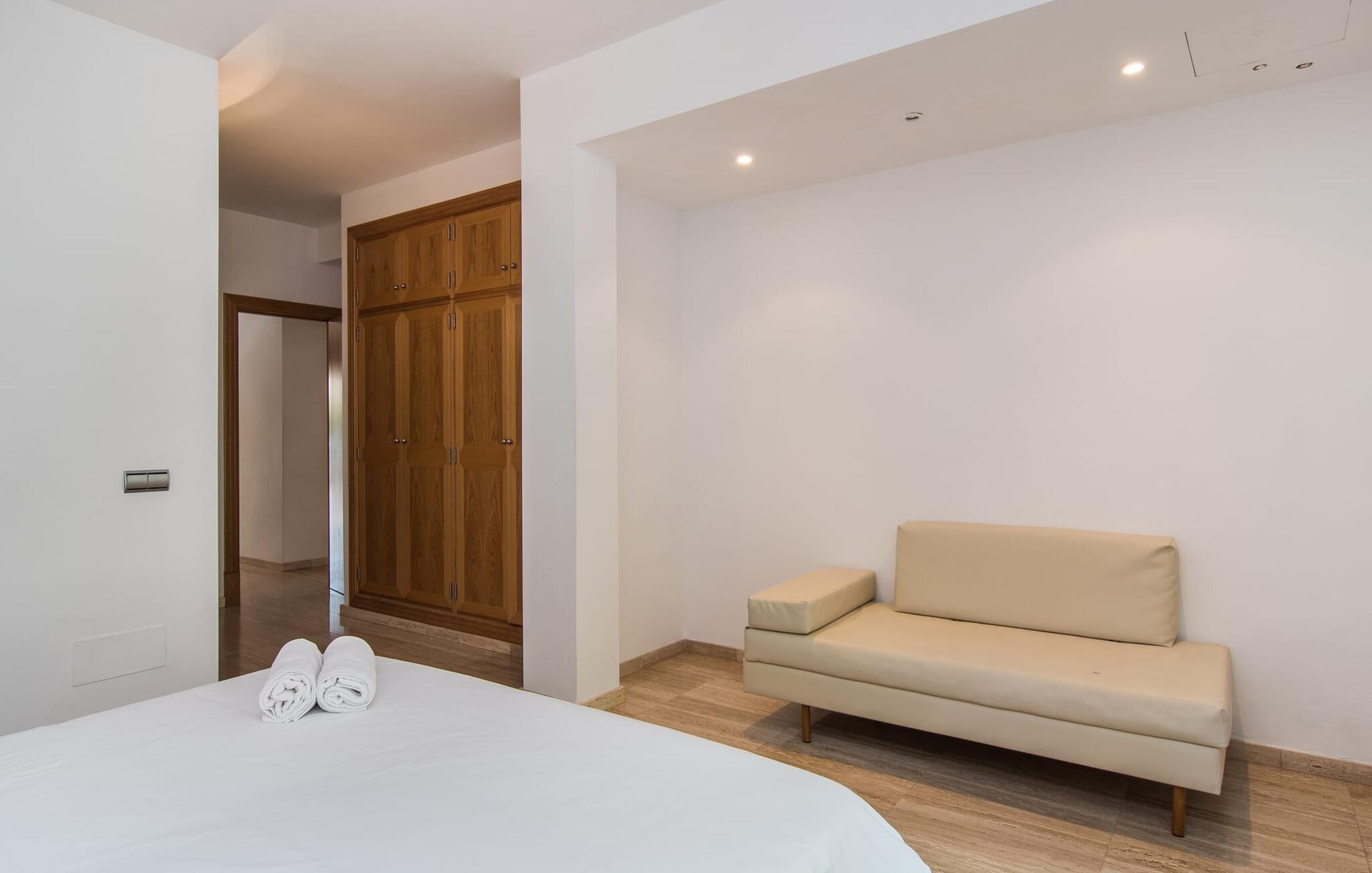 Villa "Cododrilo" tilbyder en privat oase i den rolige landsby Cielo de Bonaire, nær Alcúdia. Haven er omgivet af træer og tilbyder et fremragende niveau af privatliv, så I kan slappe helt af. Poolområdet har komfortable liggestole til at nyde middelhavssolen, mens terracotta-fliser og blå pool-accenter skaber en indbydende atmosfære. Nyd jeres måltider på den hævede terrasse, få jeres D-vitamin, eller forkæl jer selv med en middag med levende lys efter at have grillet på grillen. Indenfor fortsætter villaen med at imponere. Det rummelige køkken med sin elegante, valnøddefarvede bord er perfekt til at tilberede måltider med udstyr af høj kvalitet. Nyd jeres kreationer ved spisebordet ved siden af et stort panoramavindue med udsigt over landskabet. Vindeltrappen fører til en hyggelig altan og et ekstra køkken og badeværelse på øverste etage. De fire soveværelser i stueetagen omfatter tre dobbeltværelser, et med eget bad og et med tvilling. Med tre badeværelser, to af dem med badekar, tilbyder Villa "Cododrilo" den perfekte blanding af komfort og charme til en afslappende ferie. Kun 300 meter adskiller jer fra det turkise hav, og stenstranden S'Illot ligger kun 100 meter væk. Ud over det hvide sand venter det rolige ø-liv på jer her i havnebyen Alcúdia, kun 3,5 km væk. Naturelskere er heldige, fordi Parc Natural de S'Albufera de Mallorca kun ligger 9 km væk. I feriebyen Can Picafort, kun 15 km væk, finder I et udsøgt udvalg af fremragende restauranter, hvor I kan opdage hemmelighederne bag det mallorcanske køkken. Alcanada Golf Club, kun 7 km væk, er perfekt for sportsentusiaster.