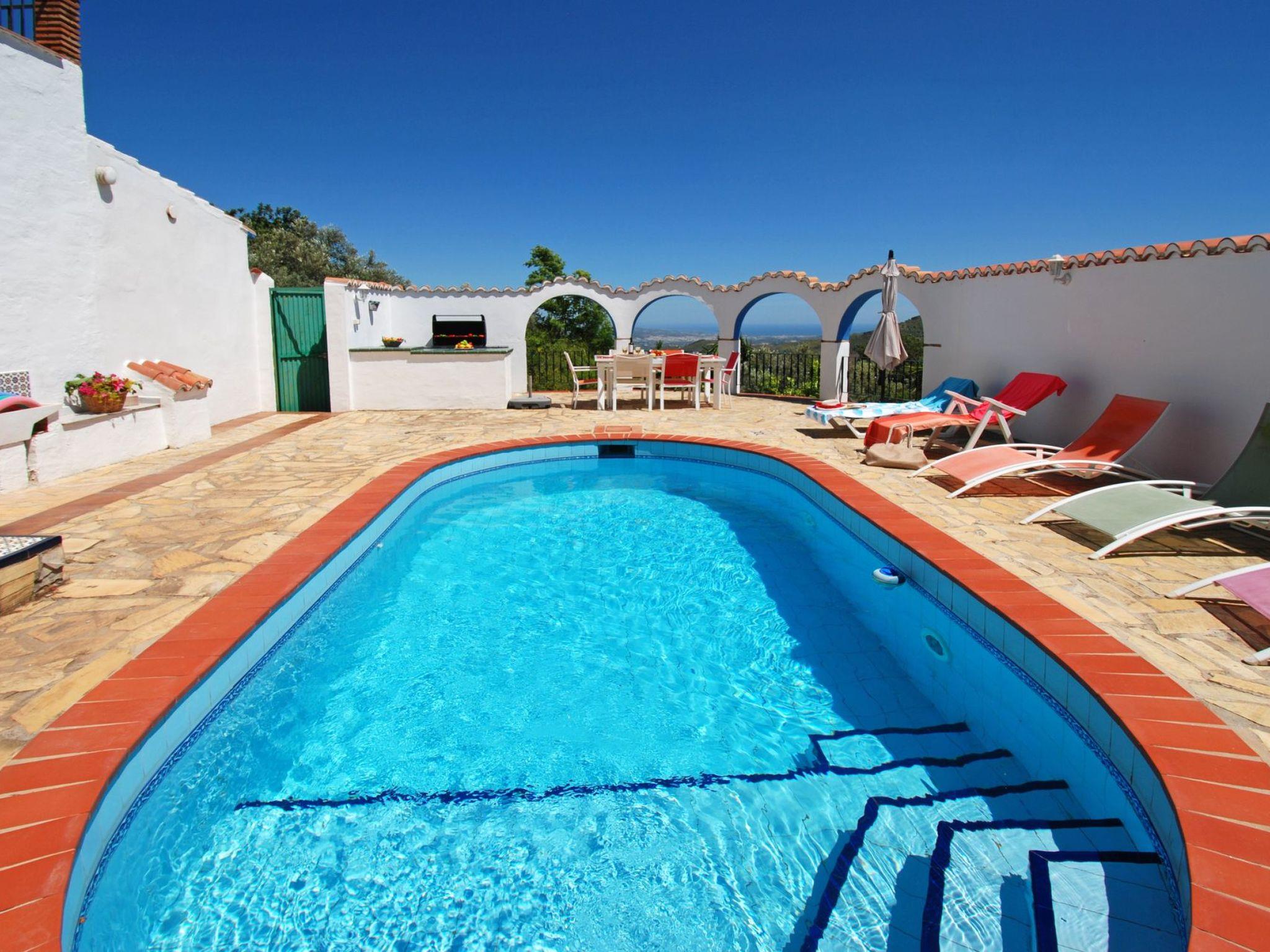 The Andalusian patio is a charming spot to enjoy an aperitif, with a table, chairs, and a sunshade for added comfort. This area also provides access to the pool and the second bathroom, making it a perfect place to unwind after a day of exploring. The pool area itself is a private oasis, complete with a shower, sunbeds, a garden table with chairs, parasols, a pool bar, and a gas barbecue. From the pool terrace, you can enjoy marvelous views of the surrounding mountains, creating a serene environment for swimming, dining, and relaxation. The entire property is fenced, making it ideal for guests who wish to bring their pets (subject to approval and additional costs).