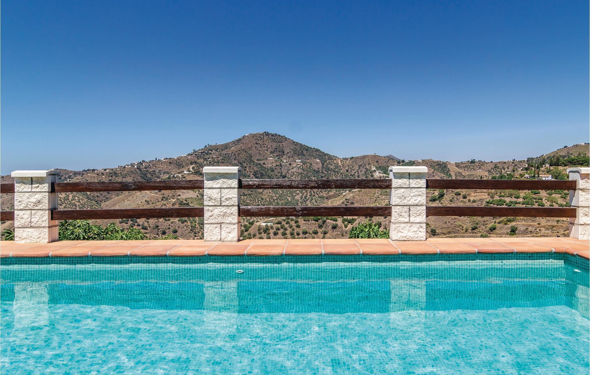 Hold ferie i dette storslåede feriehus som er optimalt beliggende med spektakulær udsigt til det omgivende landskab - på en grund på 4.000 m² med meget privatsfære. Den smagfulde indretning med møbler af høj kvalitet og især det godt udstyrede køkken med farvestrålende fliser vil begejstre jer. Tag bad i husets egen pool og læg jer i solen bagefter på poolterrassen, mens I nyder udsigten over de herlige omgivelser med havet i baggrunden. Her er I tæt på de smukkeste, hvide landsbyer i Axarquia og nationalparken Sierra Almijara-Tejeda (ca. 20 minutters kørsel), der alle sammen er med til at gøre denne region til et eftetragtet feriemål. Da ejendommen ligger i bjergene, er opkørslen via snoede veje.