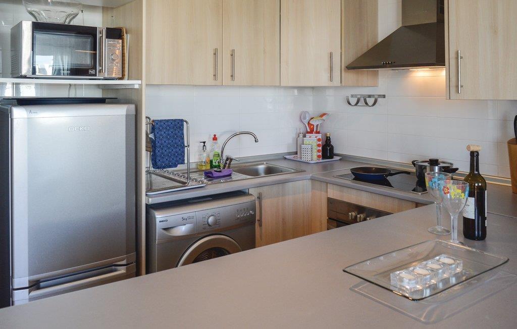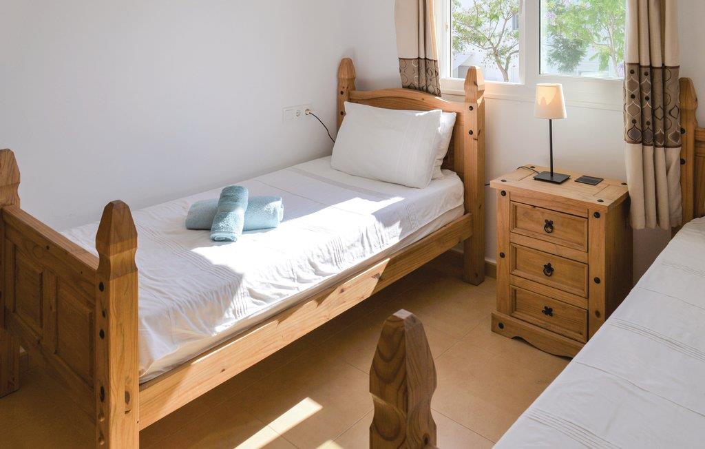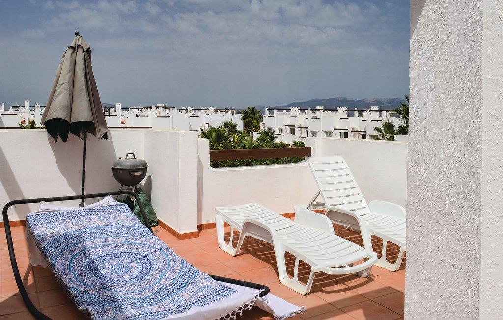 Lejligheden har plads til 4 personer og der accepteres 1 kæledyr. Der er 2 soveværelser og 1 badeværelse. På øverste etage er der en stor terrasse med borde og stole, der inviterer jer til at slappe af og grille, mens der tilbydes udsigt over bjergene. Derudover har dette kompleks flere fælles swimmingspools.