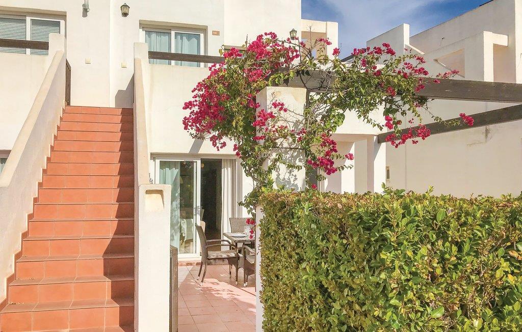 Denne velholdte og dejlige ferielejlighed i stueetagen er udstyret med klimaanlæg. Her er plads til seks personer fordelt på tre soveværelser samt et badeværelse. Til lejligheden hører en god terrasse, der afskæmes af en hæk. I har kun få skridt til én af de 22 fælles swimmingpools der findes i resortet. I resortet ligger Alhama Signature Golf, designet af Jack Nicklaus, har udfordrende golfbaner i alle sværhedsgrader. Centret i resortet - Al Kasar har både barer, restauranter, et supermarked, et bageri og en skønhedssalon.