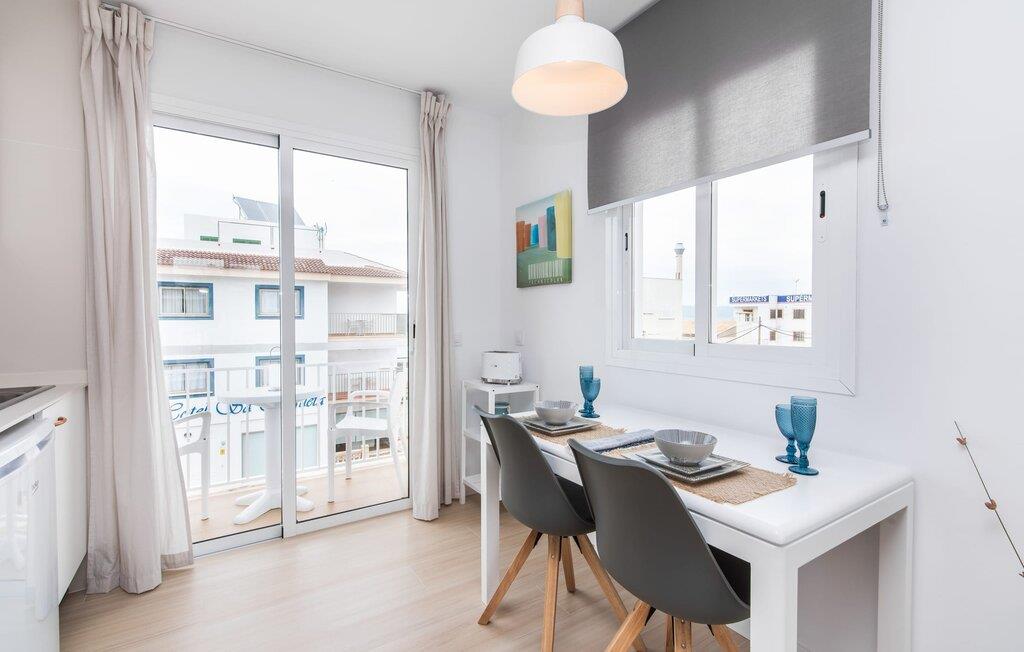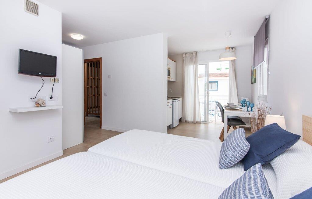 To venner eller et par, der ønsker at være tæt på stranden og have alle bekvemmeligheder inden for gåafstand, vil finde en behagelig flugt i denne smukke ferielejlighed på Mallorca. Fra den lille østvendte altan, hvor I kan få en skøn morgenmad for to ved solopgang, har I udsigt til stranden kun få skridt væk, det turkise hav og Victoria-halvøen i baggrunden. Havsiden er næsten lige ved jeres fødder. Takket være et sofistikeret rumkoncept byder ferielejligheden "Confluentia Playa 11" på en hyggelig opholdsstue med masser af naturligt lys. Det er i åbent plan og består af et velholdt sove- og spiseområde udstyret med tysk og engelsk satellit-tv og integreret køkken med direkte udgang til altan. Dette er et fantastisk sted at tilbringe tid sammen indendørs og ideelt til selvforplejning. Masser af hvidt og nogle farverige accenter skaber en frisk, sommerlig flair. Tilstedeværelsen af varme og aircondition sikrer perfekte indendørstemperaturer til enhver tid. Et smart, moderne badeværelse med brusekabine fuldender den indbydende boligkomfort i denne ferielejlighed for to på Mallorca. Den moderne ferielejlighed "Confluentia Playa 11" er beliggende nær centrum af Can Picafort på den nordlige del af Mallorca. I den mangfoldige by finder I restauranter, barer, diskoteker og talrige indkøbsmuligheder. Sandstranden ligger inden for gåafstand, og Alcúdia-bugten ligger kun få meter væk. Området omkring Can Picafort er også ideelt til cykling.