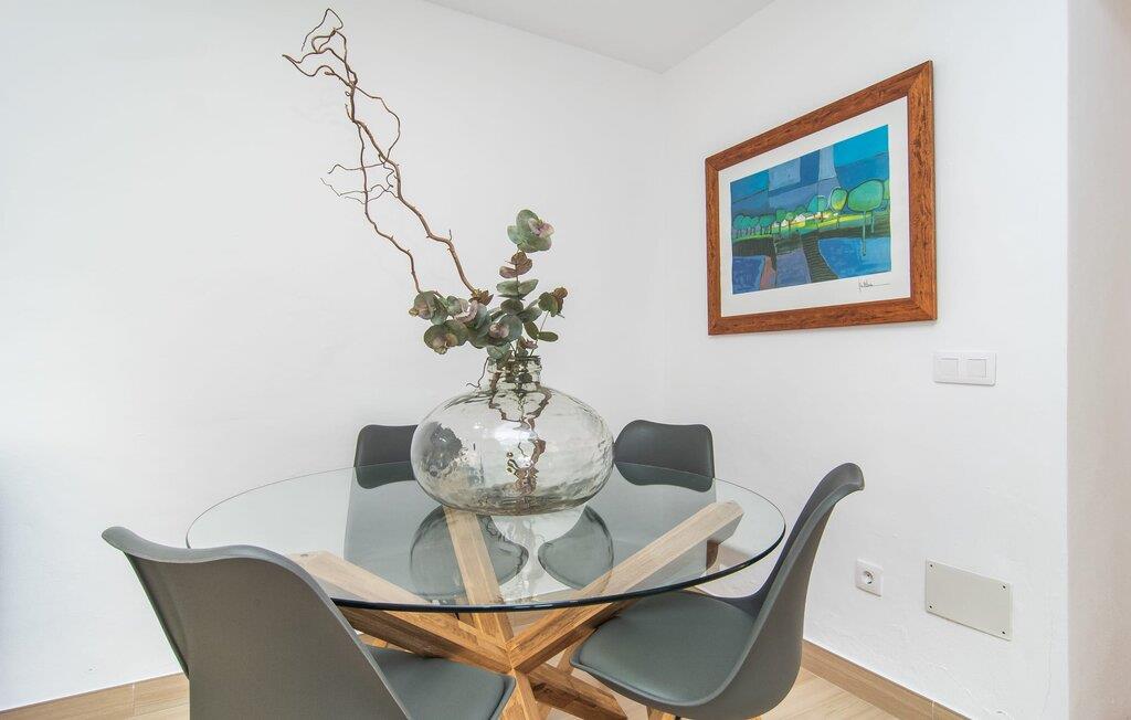 Fire feriegæster, der foretrækker nærhed til stranden og alle faciliteter inden for gåafstand, vil finde et behageligt tilflugtssted i dette smukke feriehus. Det velholdte udeareal har to terrasser, hvoraf den ene er overdækket. Afhængigt af solens position og jeres præferencer er disse ideelle til fælles måltider eller blot til afslapning. Derudover giver de tilgængelige liggestole mulighed for at nyde middelhavslyset på en særlig afslappet måde. Det smart designede interiør i "Confluentia Playa 2" er trendy og moderne. Den åbne stue og spisestue med integreret køkken indbyder til at tilbringe tid indendørs sammen og er også velegnet til selvforplejning. Masser af hvidt og nogle farverige accenter skaber en hyggelig og munter atmosfære. Tilstedeværelsen af varme og aircondition (i stuen og i et soveværelse) sikrer individuelle behagelige temperaturer på alle tidspunkter. To soveværelser - hvoraf det ene har direkte udgang til den åbne terrasse - byder på hyggelige retreater. Et moderne badeværelse med brusekabine fuldender den indbydende boligkomfort i denne ferielejlighed på Mallorca. Den moderne ferielejlighed "Confluentia Playa 2" er beliggende nær centrum af Can Picafort på den nordlige del af Mallorca. I denne smukke landsby finder I restauranter, barer, diskoteker og en række indkøbsmuligheder. Sandstranden ligger inden for gåafstand, og Alcúdia-bugten ligger kun få meter væk. Området omkring Can Picafort er også ideelt til cykling.