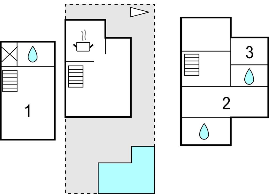 Badeværelse 3m2 (nr. 1) - WC. Varmt og koldt vand. Bruser