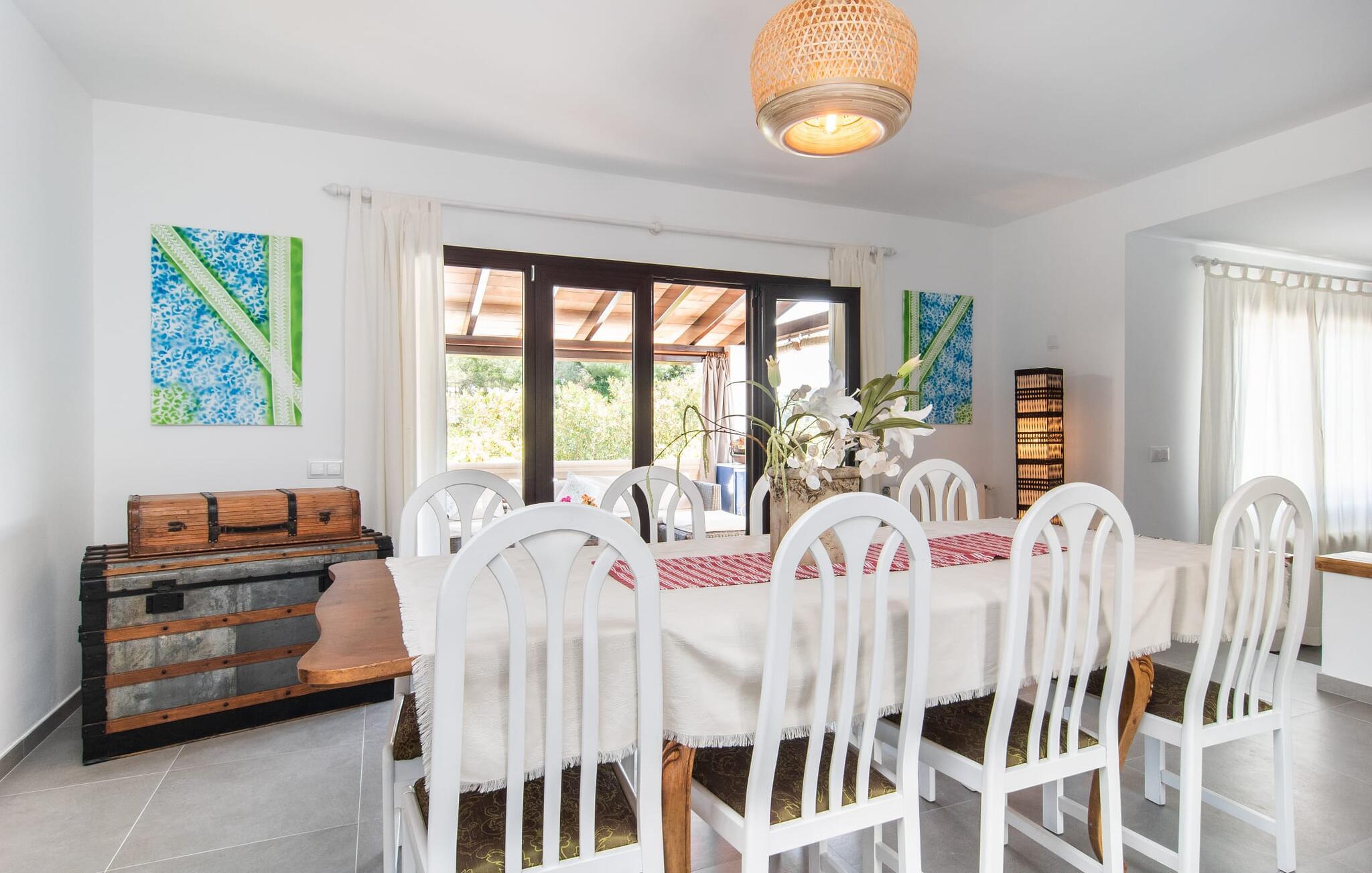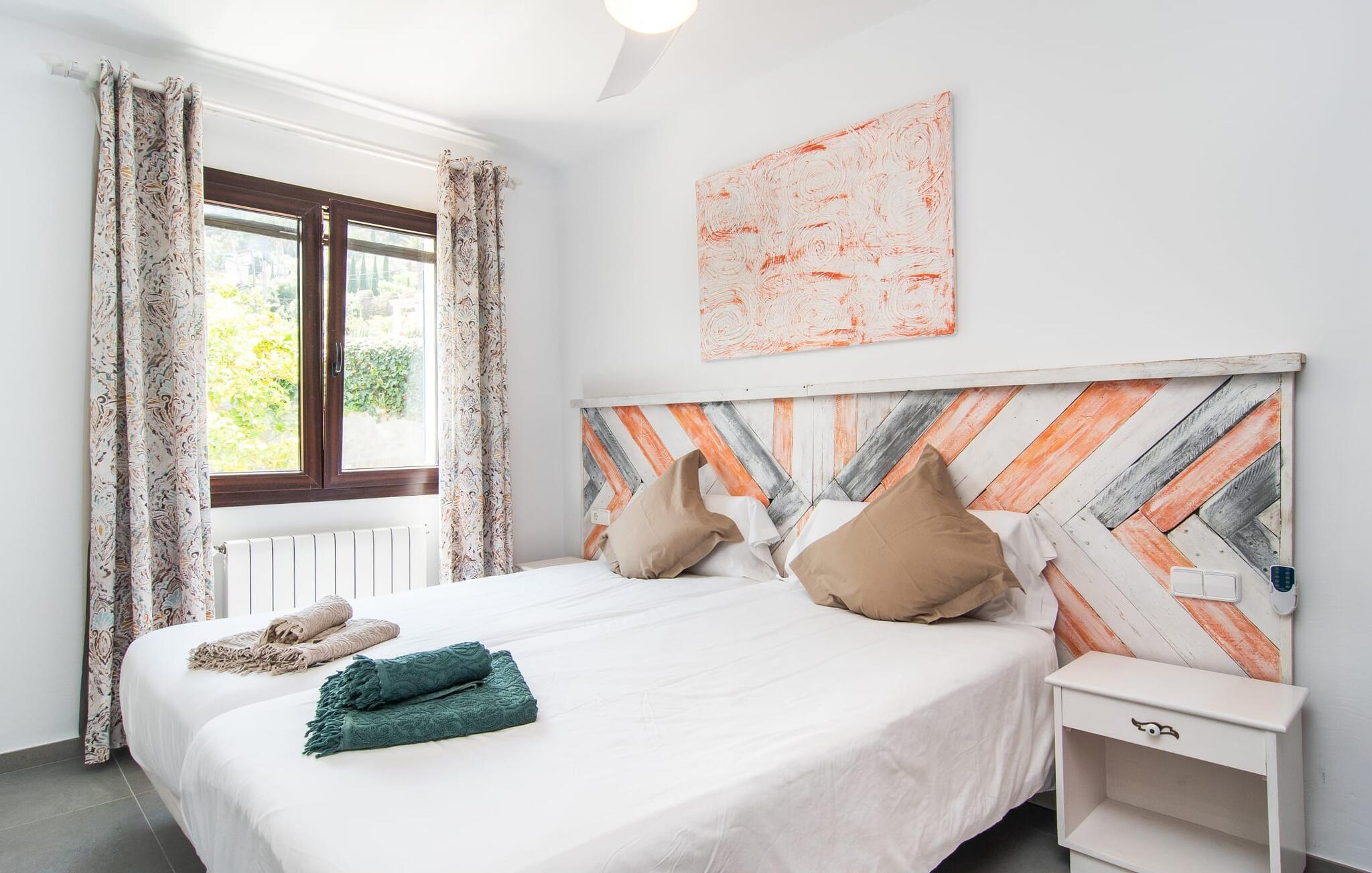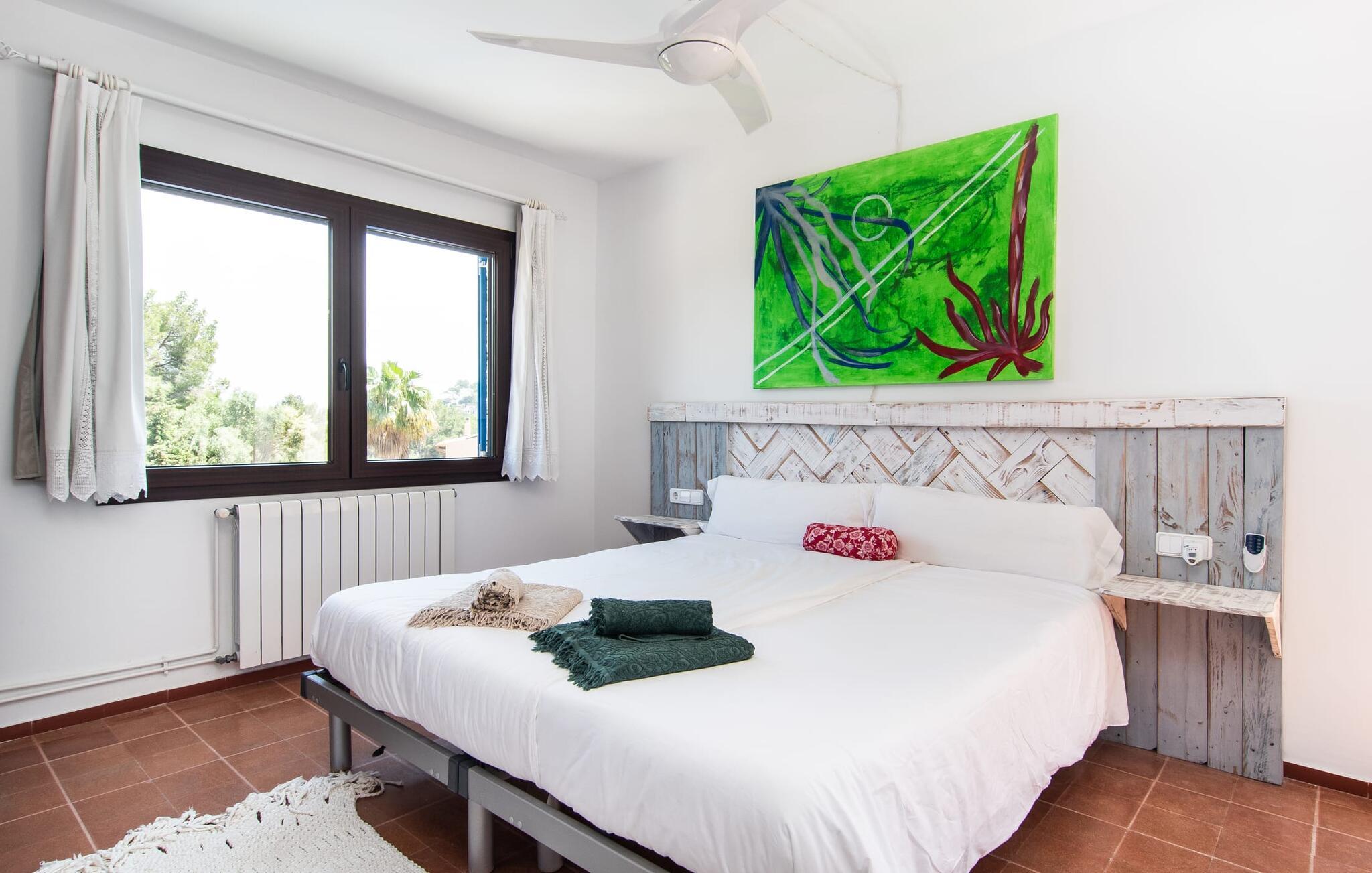 Blot få meter fra havet tilbyder "Corazon" en meget privat, grøn oase med hjerte, i et bakket og roligt villaområde, kun 2 km fra byens centrum og playaen. Problemfri gadeparkering. Den buede pool er omgivet af store terrasser i flere niveauer. Tagene på nabohuse forsvinder som ved et trylleslag bag træernes og buskenes løv. Hyggelige loungestole, hvide kurvemøbler, en moderne gasgrill og den komfortable udendørs bruser med varmt vand gør det nederste niveau til et sted under solen og et sandt alternativ til stranden. Der er endda masser af appelsintræer. En trappe forvandler morgenmadspavillonen og den overdækkede lounge til lysfyldte telte, der garanterer milde, vindbeskyttede nætter i det fri. Buddha's Realm inkluderer en stor tagterrasse, der er ideel til træning og meditation. Men måske vil hans overnattende gæster være villige til at dele generøst... Indenfor byder denne hjertevilla også på rustikke, hyggelige og nænsomt indrettede hyggeområder. I kan samles i hyggeligt selskab omkring pejsen og fjernsynet eller drømme i en af de tre gæstehytter ved havoverfladen. Farveaccenter og shabby chic trægulve giver hver seng sit særlige behagelig touch. Et fælles badeværelse med bruseniche, et gæstetoilet, det rummelige flisekøkken med vaskemaskine, opvaskemaskine og direkte udgang til altan terrasse fuldender stueetagen. I modsætning hertil har det fjerde, Buddha-inspirerede ensuite soveværelse en hel etage og en enorm væg af skabe helt for sig selv. Her forbliver beboerne uforstyrrede, selvom arbejdet indimellem kræver, at de åbner deres bærbare computere. Og som om der bogstaveligt talt var mere plads højere oppe, er tagterrassen også inkluderet i pakken. I vil virkelig "WOW", når I ser plantegningen! Feriestedet med det honningfarvede navn har også en sporty side: Canyamels spektakulære 18-hullers golfbane lige ved havet. En afmærket vandresti fører til den 150 m høje Cap Vermell med sin hulelabyrint nedenfor og Torre Nova ovenover. Som belønning for at klatre til Sant Salvador Sanctuary vil I på den ene side nyde den storslåede udsigt og på den anden side den søde udsigt til en kaffepause i Artàs gader. Fra Playa de Canyamel kan vandrere udforske den omkringliggende skov. Om sommeren giver en lille leje shgop jer mulighed for at begive jer i, under og på vandet. Og I bør genopfylde jeres energireserver mindst én gang, med en stilfuld årgang 1934, hummer og champagne... Hvid villa med hjerte og på det rigtige sted: Ferieoasen "Corazon" ligger kun få skridt fra det blå hav i et roligt område af den lille kystby Canyamel. Den beskyttede strand med barer og et lille Bip Bip-supermarked ligger 20 minutter derfra, mens en god restaurant ligger 5 minutters gang væk. Mellem Cala Millor og Cala Ratjada er der andre smukke badebugter og den berømte Cuevas de Artà. Byen af samme navn med hyggelige caféer ligger 10 km længere til spontane besøg.