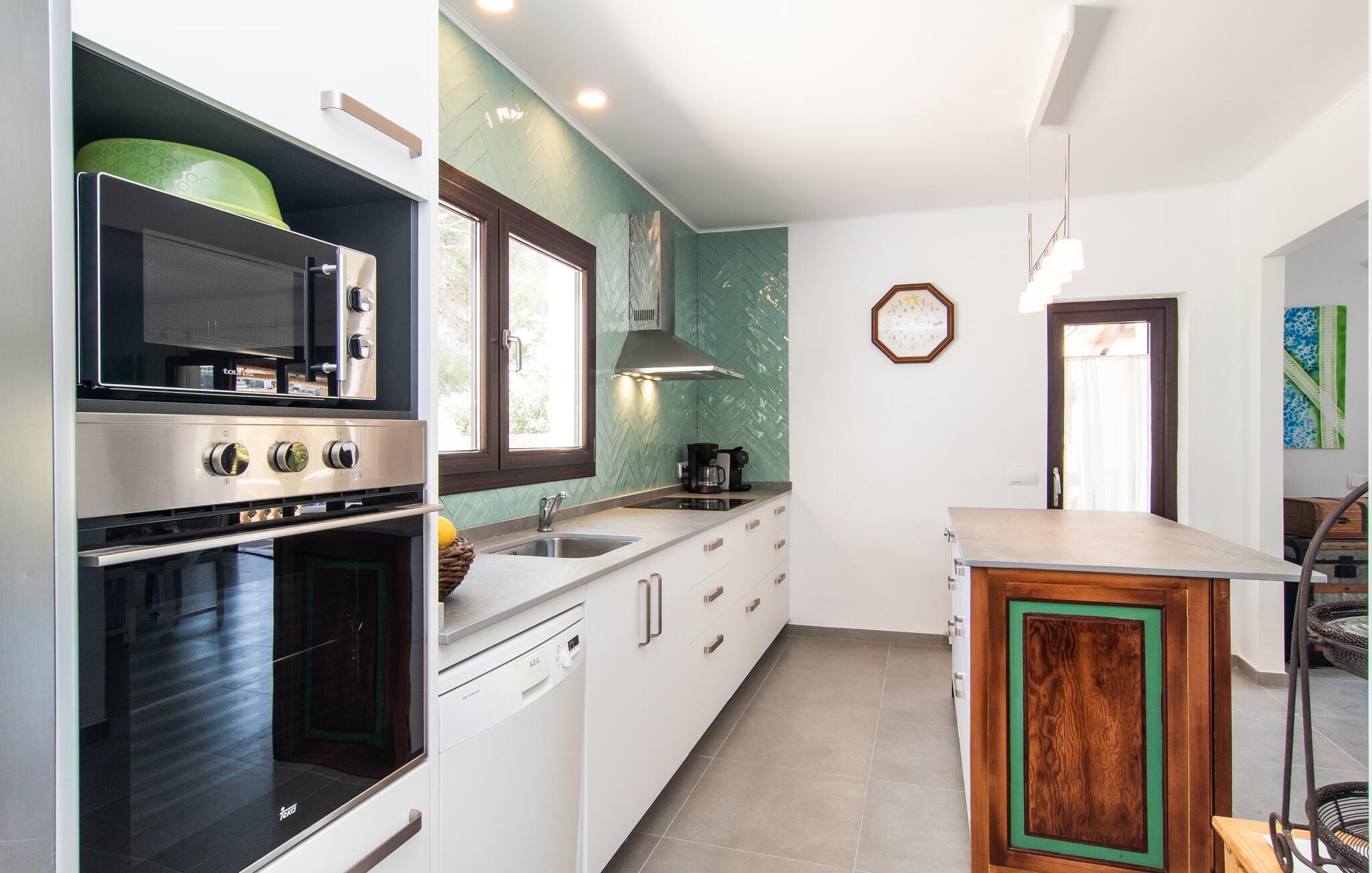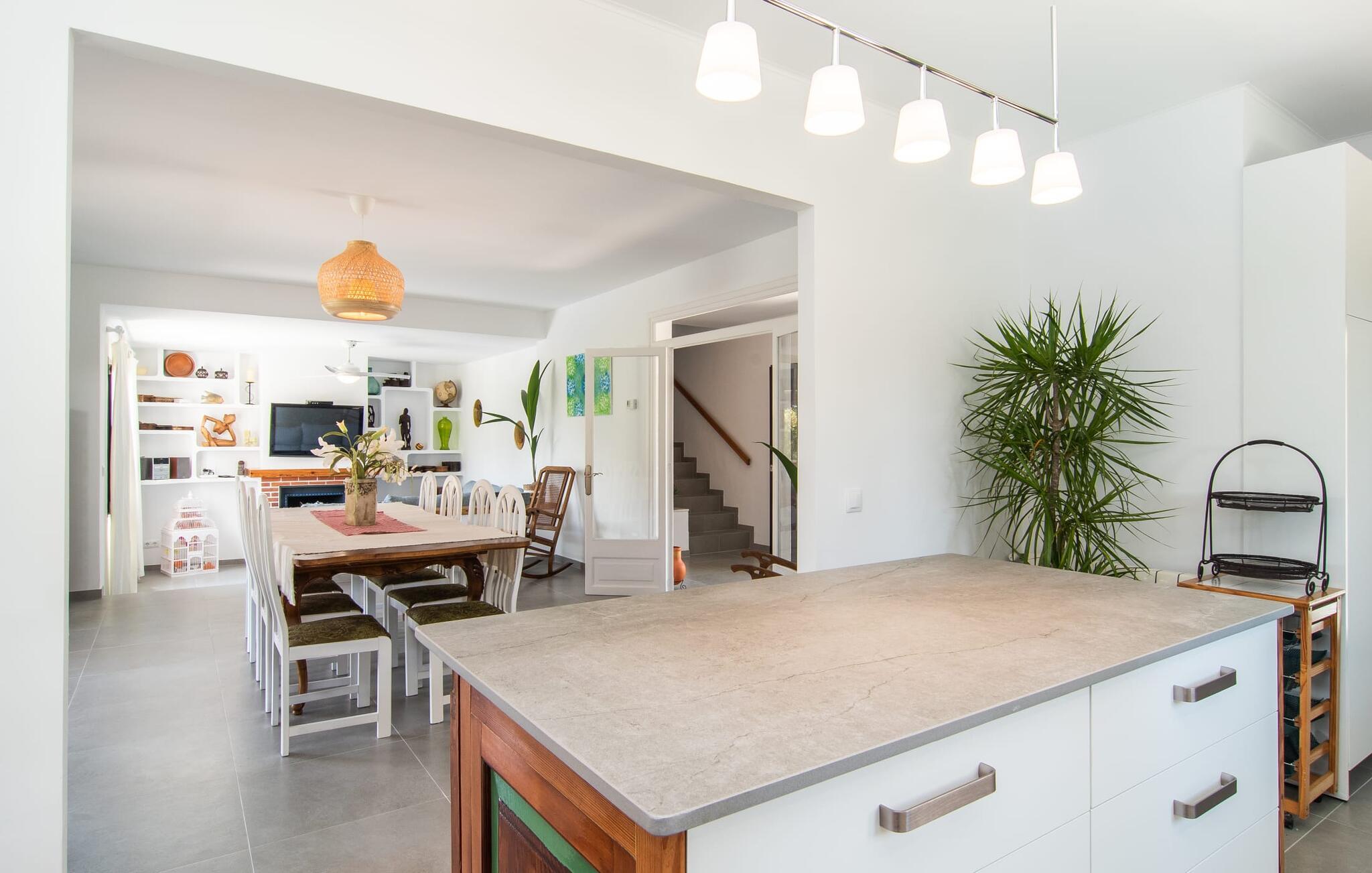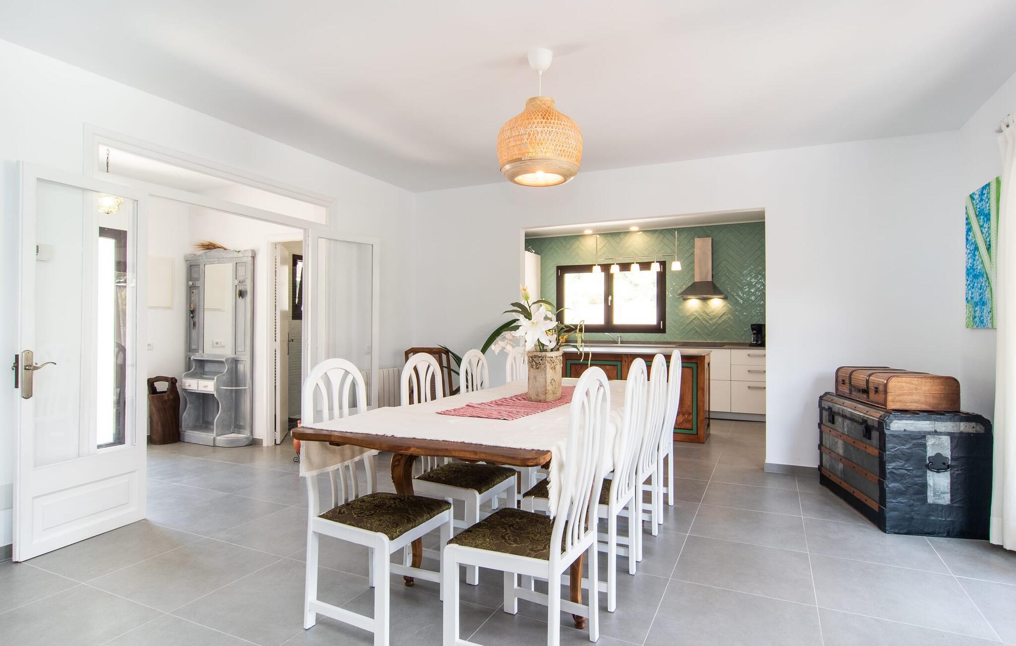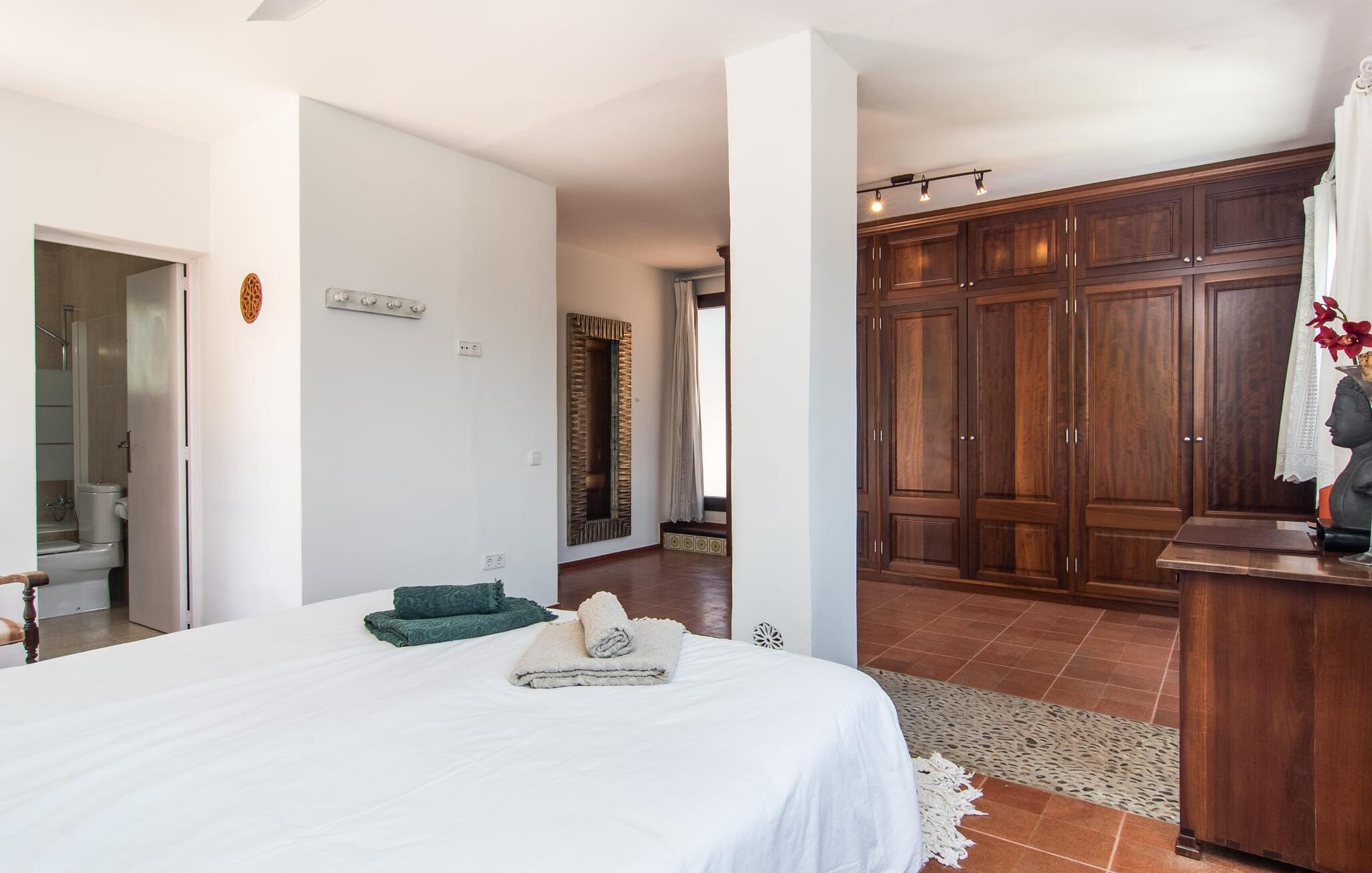 Blot få meter fra havet tilbyder "Corazon" en meget privat, grøn oase med hjerte, i et bakket og roligt villaområde, kun 2 km fra byens centrum og playaen. Problemfri gadeparkering. Den buede pool er omgivet af store terrasser i flere niveauer. Tagene på nabohuse forsvinder som ved et trylleslag bag træernes og buskenes løv. Hyggelige loungestole, hvide kurvemøbler, en moderne gasgrill og den komfortable udendørs bruser med varmt vand gør det nederste niveau til et sted under solen og et sandt alternativ til stranden. Der er endda masser af appelsintræer. En trappe forvandler morgenmadspavillonen og den overdækkede lounge til lysfyldte telte, der garanterer milde, vindbeskyttede nætter i det fri. Buddha's Realm inkluderer en stor tagterrasse, der er ideel til træning og meditation. Men måske vil hans overnattende gæster være villige til at dele generøst... Indenfor byder denne hjertevilla også på rustikke, hyggelige og nænsomt indrettede hyggeområder. I kan samles i hyggeligt selskab omkring pejsen og fjernsynet eller drømme i en af de tre gæstehytter ved havoverfladen. Farveaccenter og shabby chic trægulve giver hver seng sit særlige behagelig touch. Et fælles badeværelse med bruseniche, et gæstetoilet, det rummelige flisekøkken med vaskemaskine, opvaskemaskine og direkte udgang til altan terrasse fuldender stueetagen. I modsætning hertil har det fjerde, Buddha-inspirerede ensuite soveværelse en hel etage og en enorm væg af skabe helt for sig selv. Her forbliver beboerne uforstyrrede, selvom arbejdet indimellem kræver, at de åbner deres bærbare computere. Og som om der bogstaveligt talt var mere plads højere oppe, er tagterrassen også inkluderet i pakken. I vil virkelig "WOW", når I ser plantegningen! Feriestedet med det honningfarvede navn har også en sporty side: Canyamels spektakulære 18-hullers golfbane lige ved havet. En afmærket vandresti fører til den 150 m høje Cap Vermell med sin hulelabyrint nedenfor og Torre Nova ovenover. Som belønning for at klatre til Sant Salvador Sanctuary vil I på den ene side nyde den storslåede udsigt og på den anden side den søde udsigt til en kaffepause i Artàs gader. Fra Playa de Canyamel kan vandrere udforske den omkringliggende skov. Om sommeren giver en lille leje shgop jer mulighed for at begive jer i, under og på vandet. Og I bør genopfylde jeres energireserver mindst én gang, med en stilfuld årgang 1934, hummer og champagne... Hvid villa med hjerte og på det rigtige sted: Ferieoasen "Corazon" ligger kun få skridt fra det blå hav i et roligt område af den lille kystby Canyamel. Den beskyttede strand med barer og et lille Bip Bip-supermarked ligger 20 minutter derfra, mens en god restaurant ligger 5 minutters gang væk. Mellem Cala Millor og Cala Ratjada er der andre smukke badebugter og den berømte Cuevas de Artà. Byen af samme navn med hyggelige caféer ligger 10 km længere til spontane besøg.