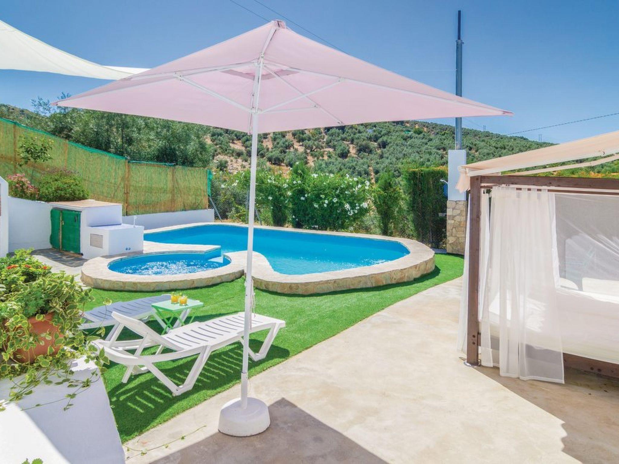 Comfortable farmhouse "El Viso". In a secluded, quiet, sunny position. Private: garden 300 m2 with lawn, swimming pool (4 x 7 m, depth 120 - 200 cm, seasonal availability: 01.Jan. - 31.Dec.). Outdoor shower, hot tub, terrace, garden furniture, barbecue, parking (for 3 cars) at the house. Shop 500 m, supermarket 7.5 km, restaurant 7.5 km, bar 7.5 km, café 7.5 km, bus stop "Zambra" 6 km, sandy beach 109 km. Nearby attractions: Antequera 62 km, Córdoba 80 km, Granada 118 km. Hiking paths: Sierras Subbéticas 17 km, Laguna de Fuente de Piedra 70 km. Groups of teenagers on request only. The owner does not accept any groups.