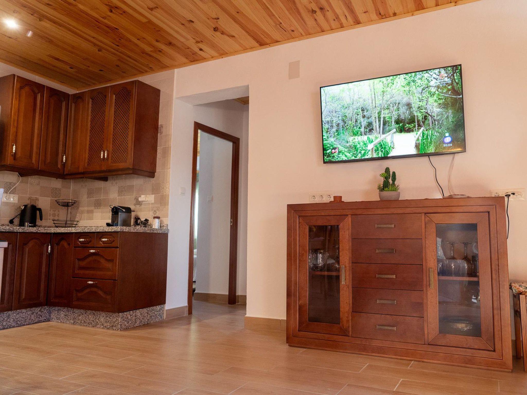 "La Pedriza", 3-room house 70 m2, on the ground floor. Practical and comfortable furnishings: living/dining room with dining table, digital TV, flat screen, air conditioning and forced-air heating. Exit to the terrace, to the swimming pool. 1 room with 1 french bed (150 cm, length 190 cm), air conditioning and forced-air heating. 1 double bedroom with 2 beds (90 cm, length 190 cm), air conditioning and forced-air heating. Open kitchen (oven, dishwasher, 4 ceramic glass hob hotplates, toaster, kettle, microwave, freezer, electric coffee machine, Capsules for coffee machine (Nespresso) free). Shower/WC. Terrace. Terrace furniture, barbecue. Beautiful view of the mountains. Facilities: washing machine, iron, children's high chair, baby cot for up to 2 year olds, hair dryer. Internet (WiFi, free). Parking at the house. Please note: suitable for families. Non-smoking house. Maximum 1 pet/ dog allowed. VTAR/CO/00520