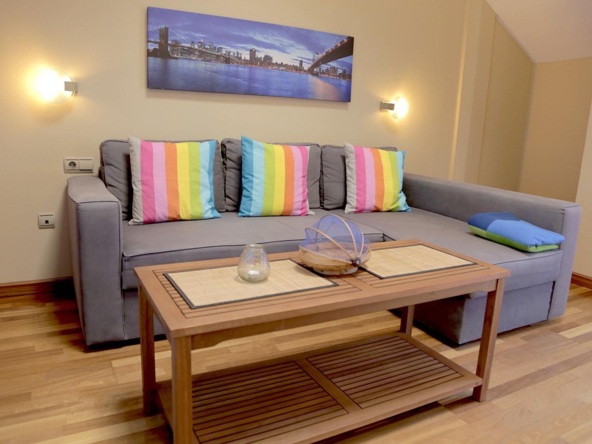 Inside, you will find a spacious interior that leaves nothing to be desired. There are two cosy bedrooms on the ground floor - one with a double bed and the other with two single beds. The sofa bed in the living room on the 1st floor offers an additional sleeping option, ideal for up to two children. Each floor has its own bathroom/WC, ensuring plenty of privacy. The open-plan kitchen and the attractive dining area with access to the terrace are located on the ground floor. There is also a practical laundry room with washing machine and iron/ironing board in the basement.