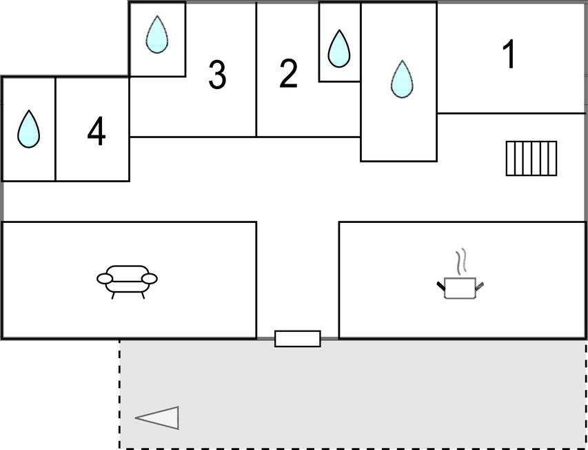 Soveværelse (nr. 1) - 2 Sovepladser. (Enkeltseng(e)).