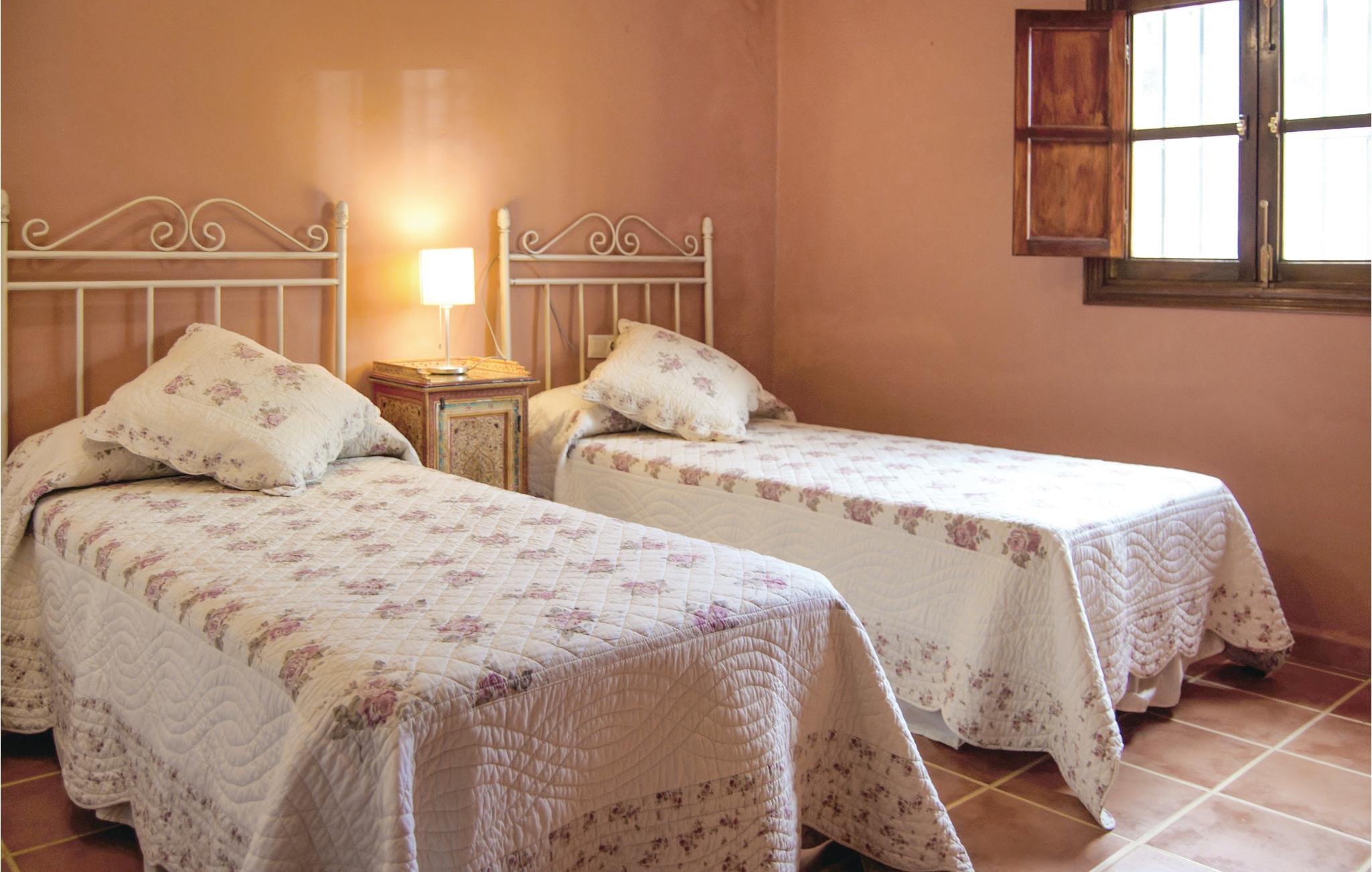 Rummeligt feriehus med pool, der ligger i Cortegana i Sierra de Aracena med plads til otte voksne. Her er der fire soveværelser, og huset er alt i alt på 190 m². De fire soveværelser ligger i stueplan, hvoraf de tre har integreret badeværelse og et med et badeværelse med adgang udefra.