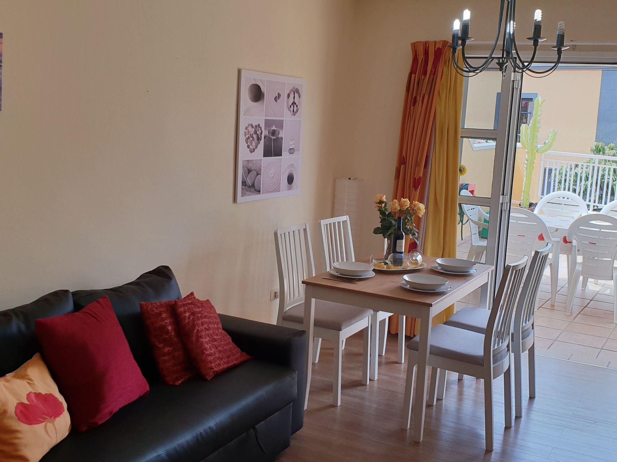 The apartment Benimar is located on the ground floor in the popular district "El Duque" not far from the beach. The distance to the sea is about 750 meters. The apartment has a fully equipped kitchen with dishwasher, oven, ceramic hob, fridge-freezer, microwave, electric kettle, toaster and coffee machine. The living room has a sofa bed that can be pulled out and provides a comfortable place to sleep for 2 more people. In the living room there is a flat screen TV with international TV programmes, Internet via Wifi, DVD player and a stereo system.